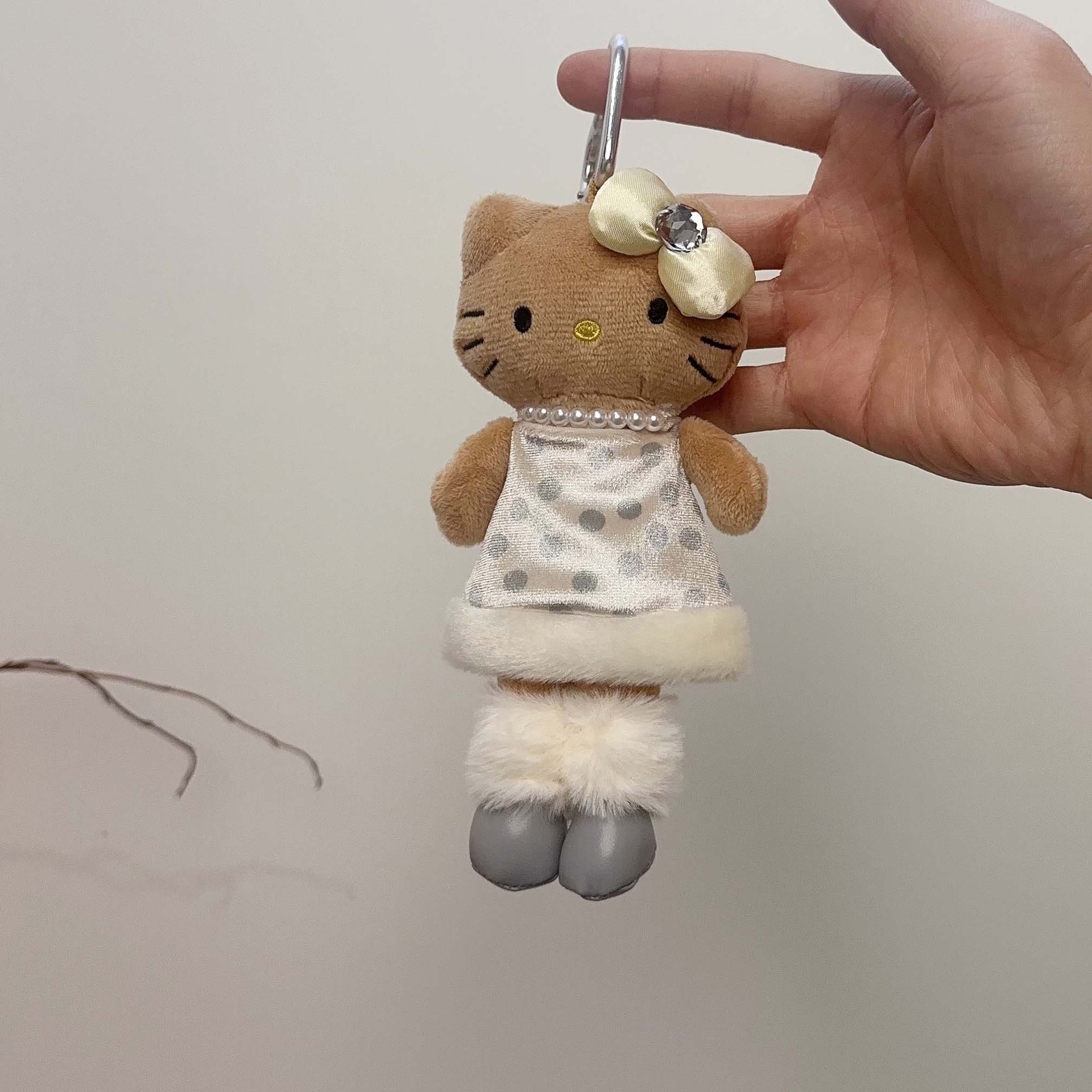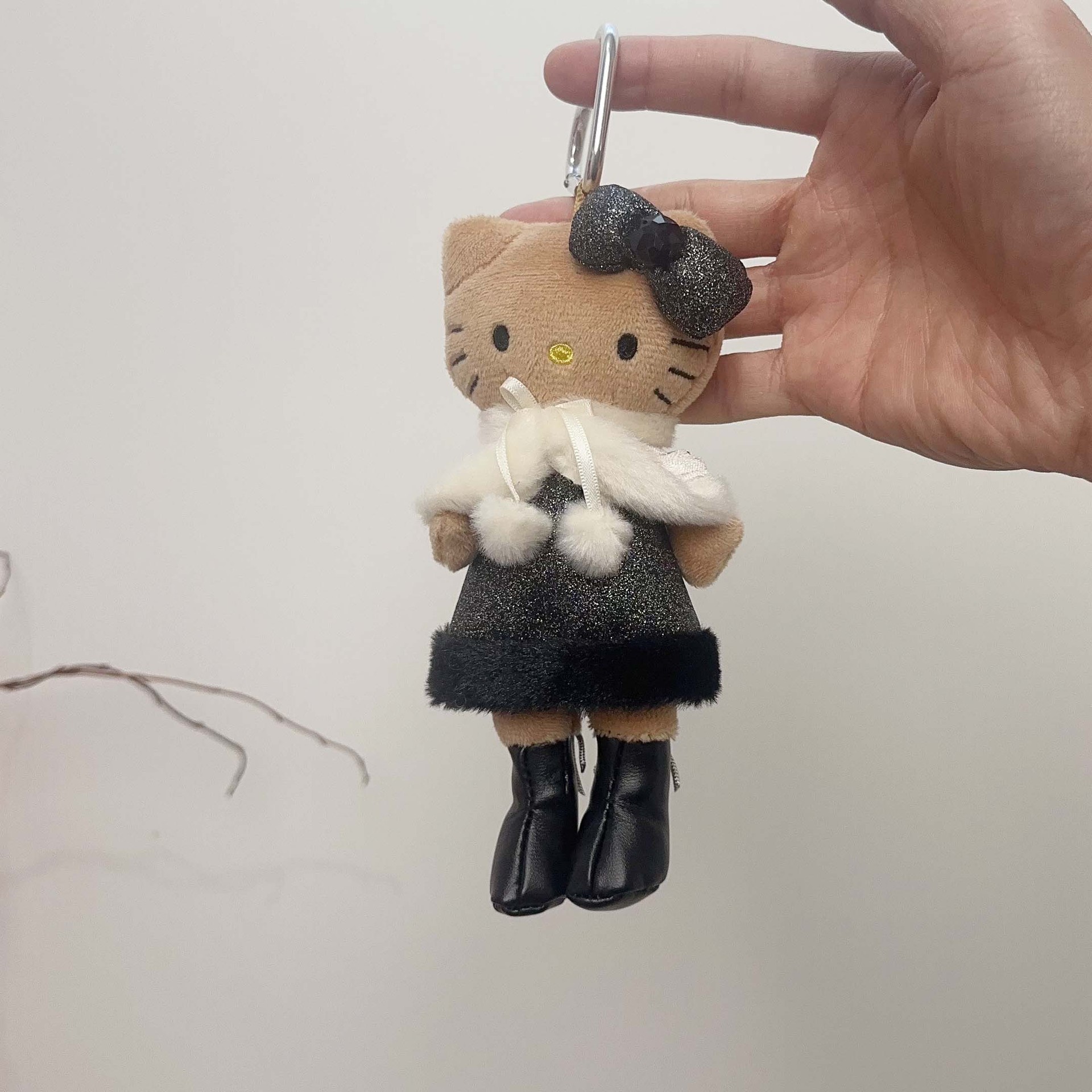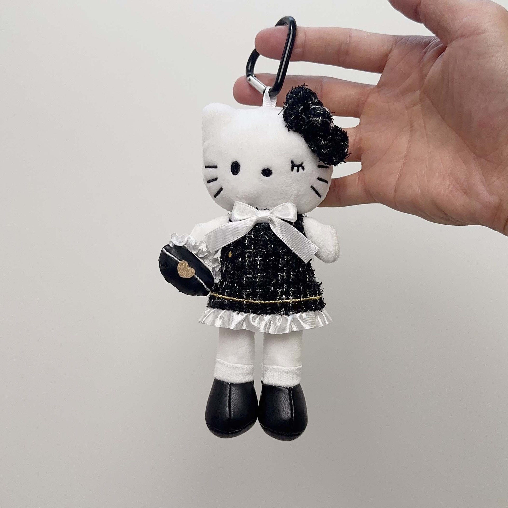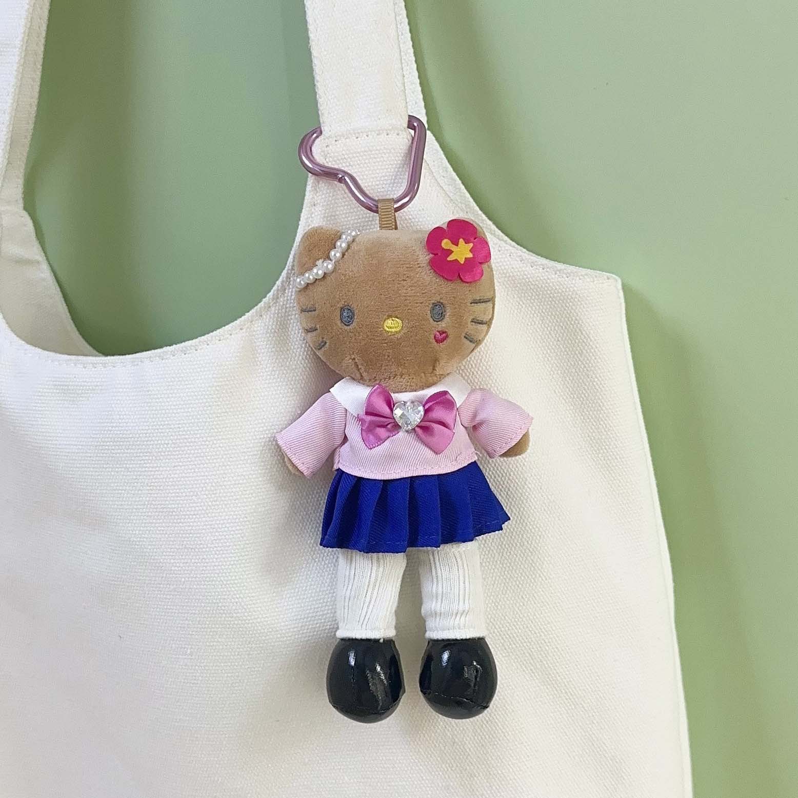 日系长脚Kitty 豹纹黑皮爱心扣毛绒玩具挂件公仔玩偶钥匙扣少女心