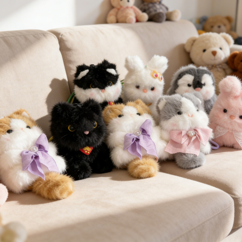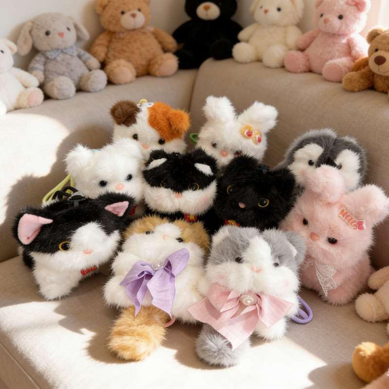 跨境香氛毛绒玩具钥匙扣挂件小猫玩偶儿童礼物背包挂饰娃娃机批发