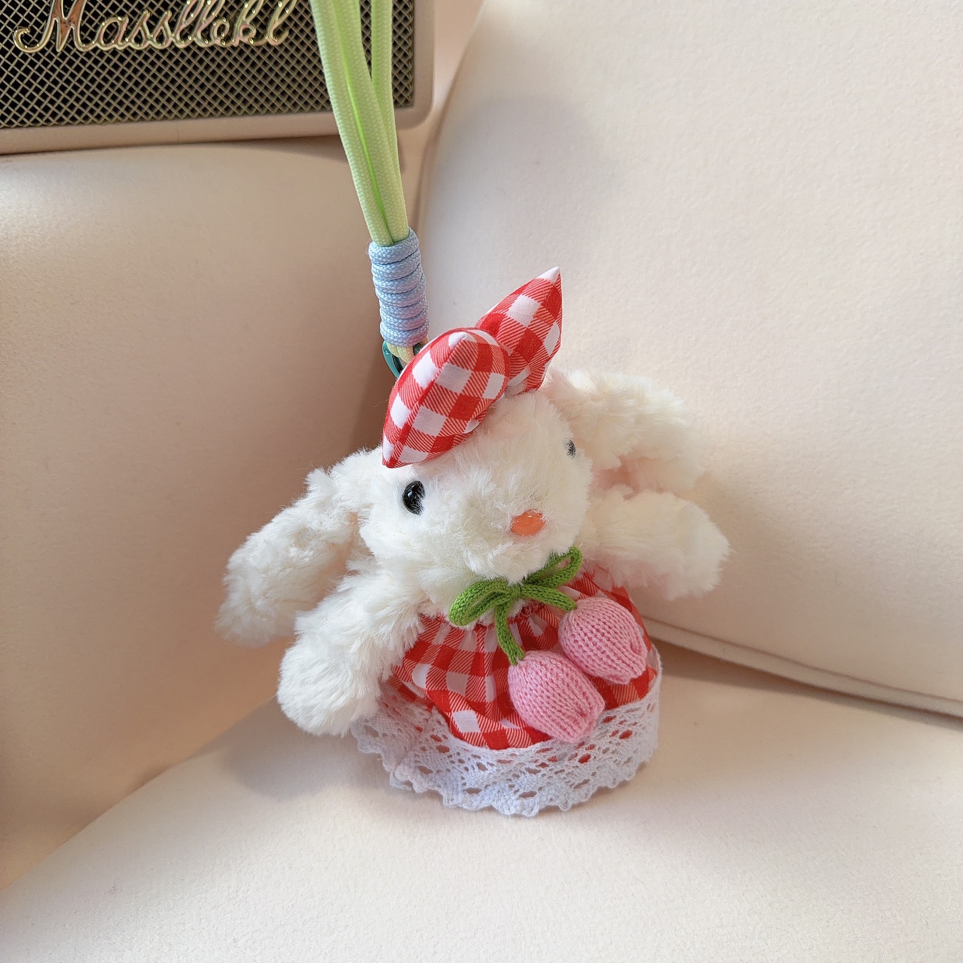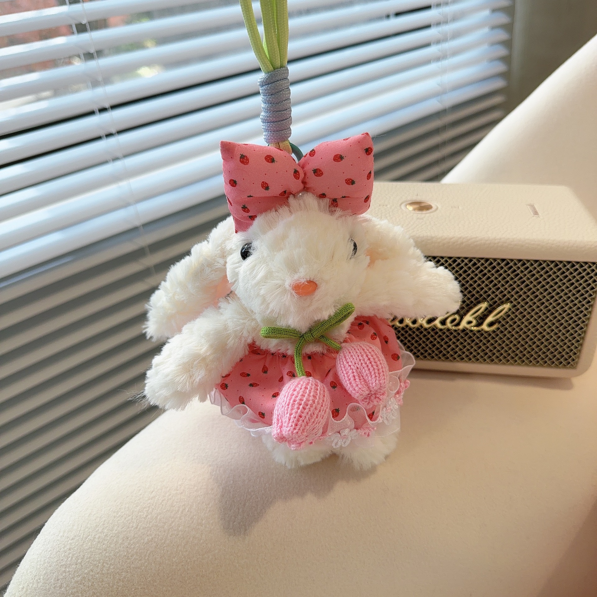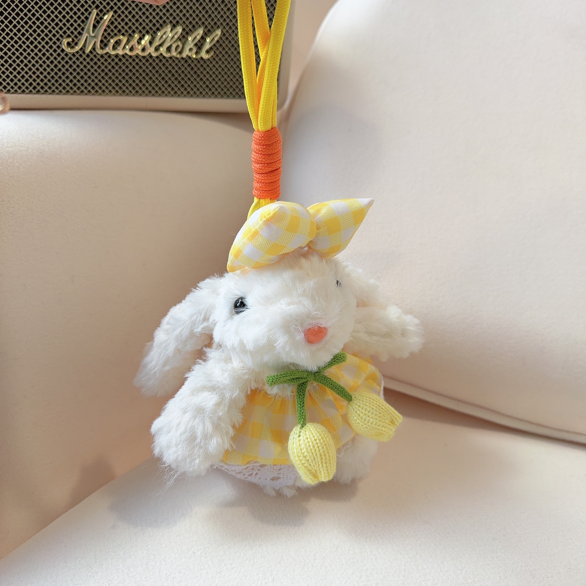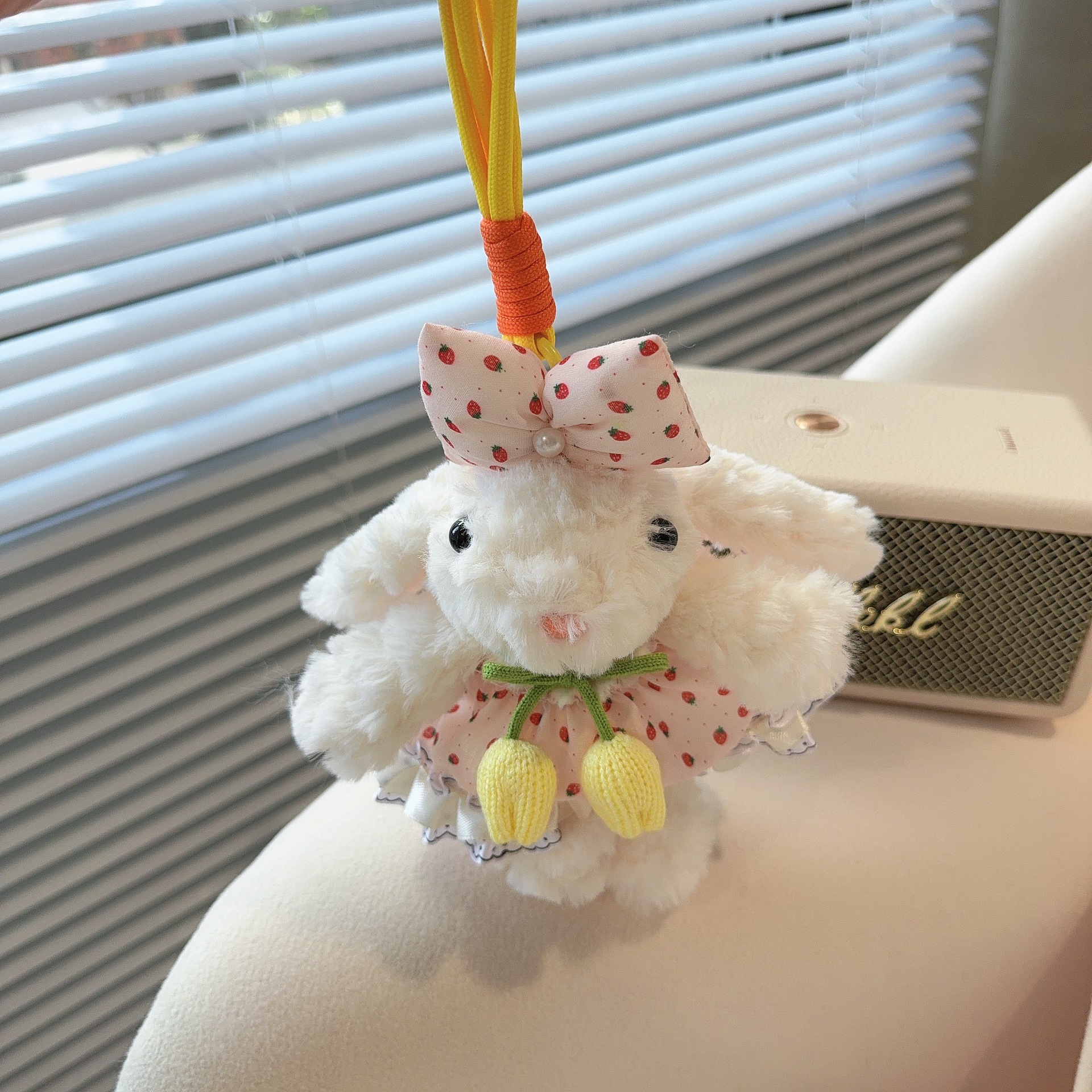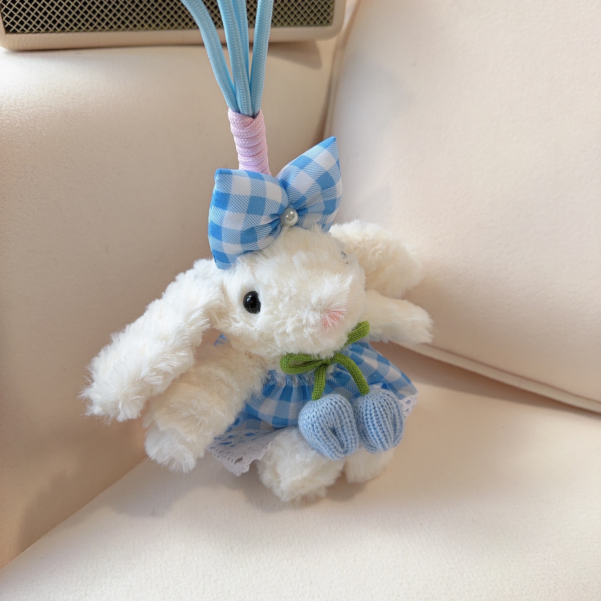 卡通垂耳兔子挂件郁金香波点格子裙蝴蝶结带香味钥匙扣时尚长耳兔