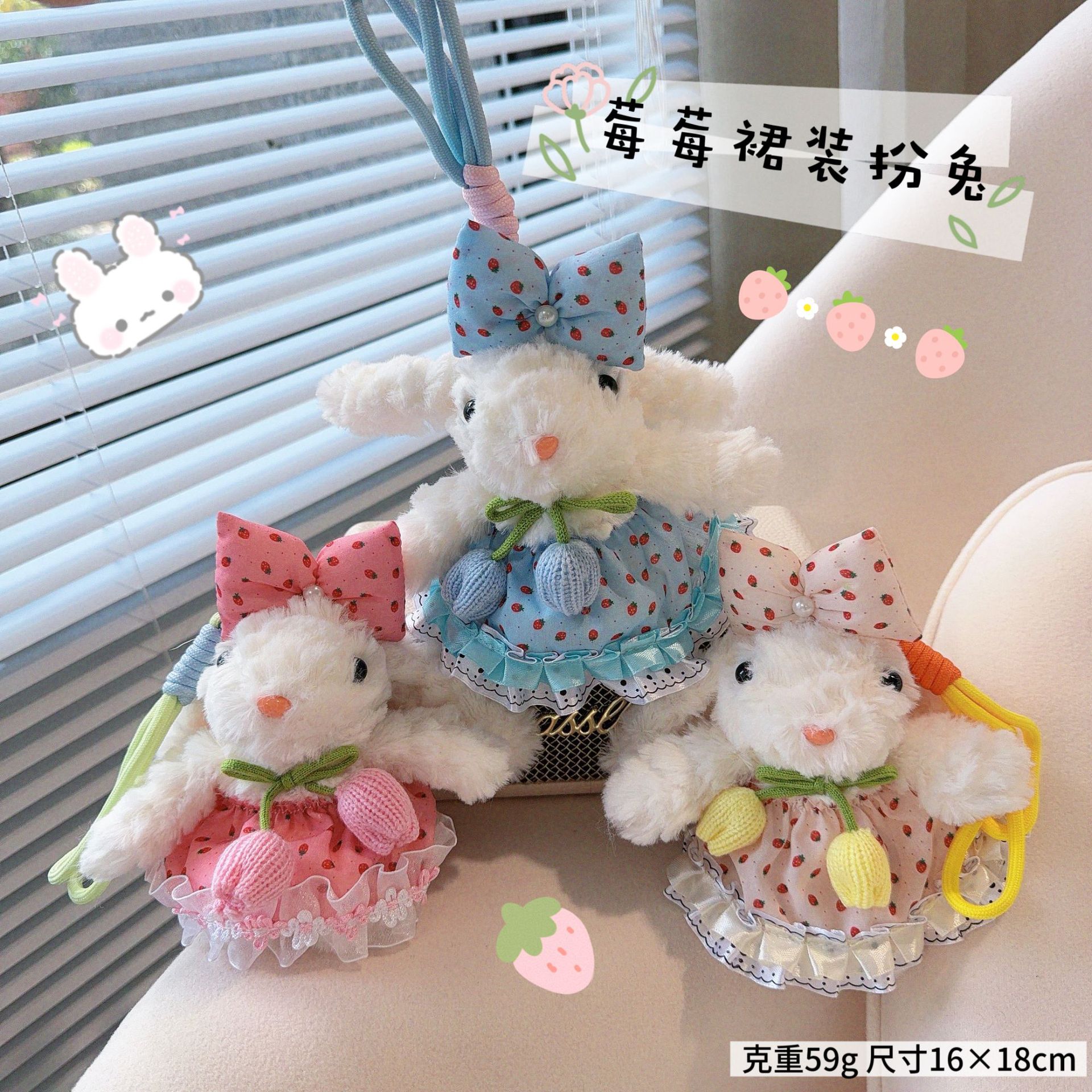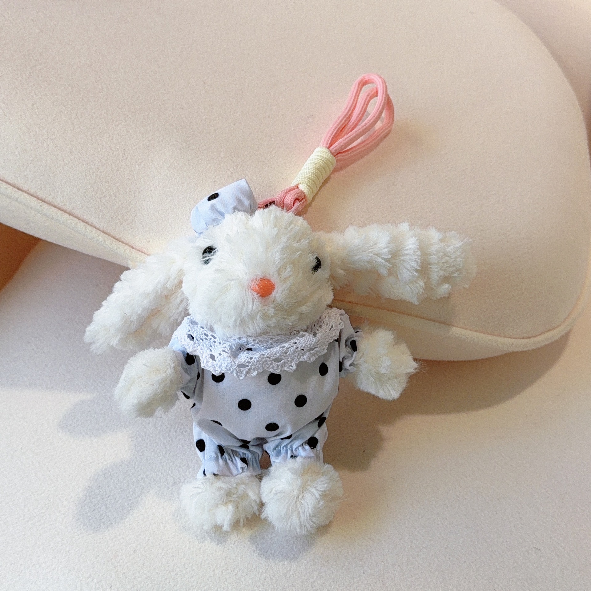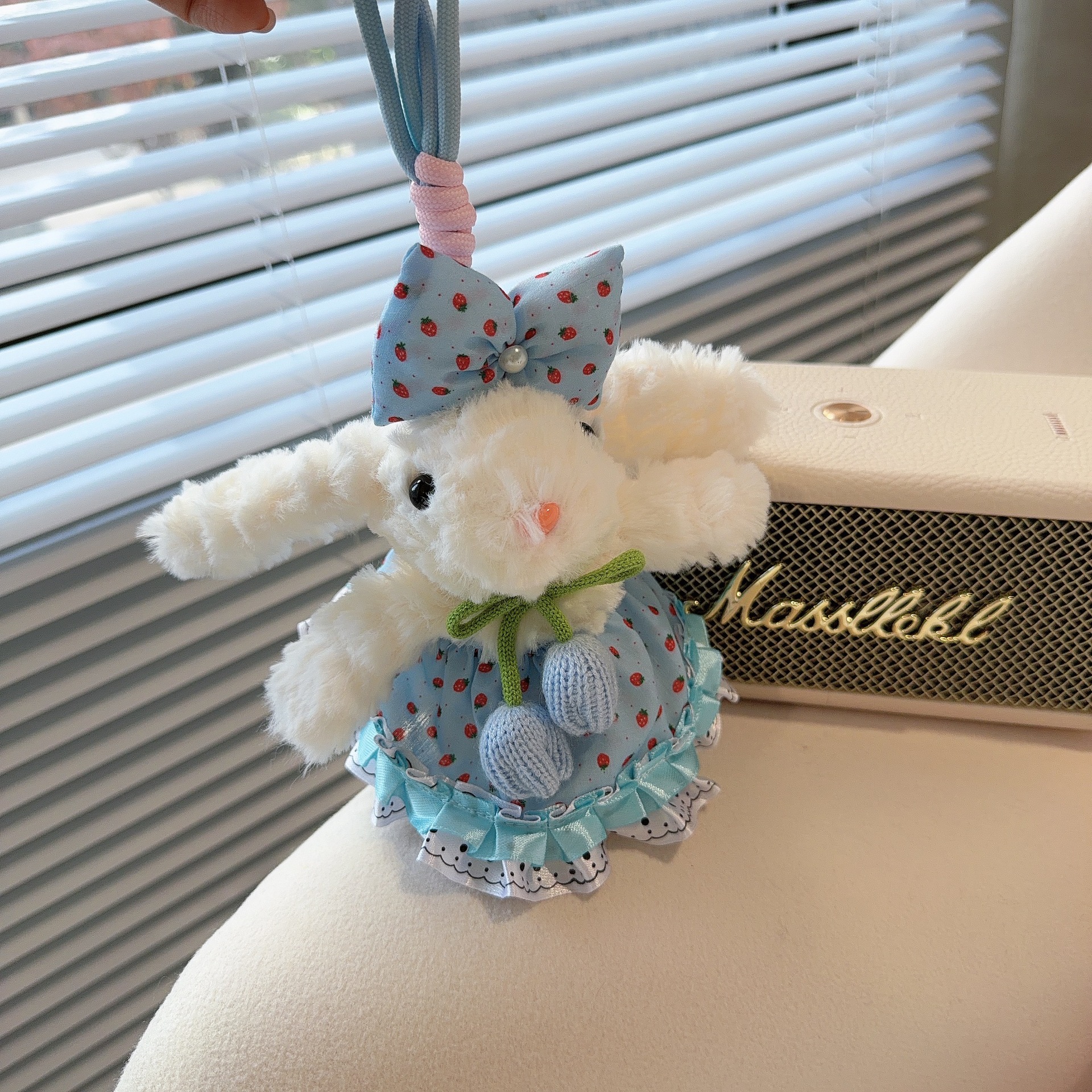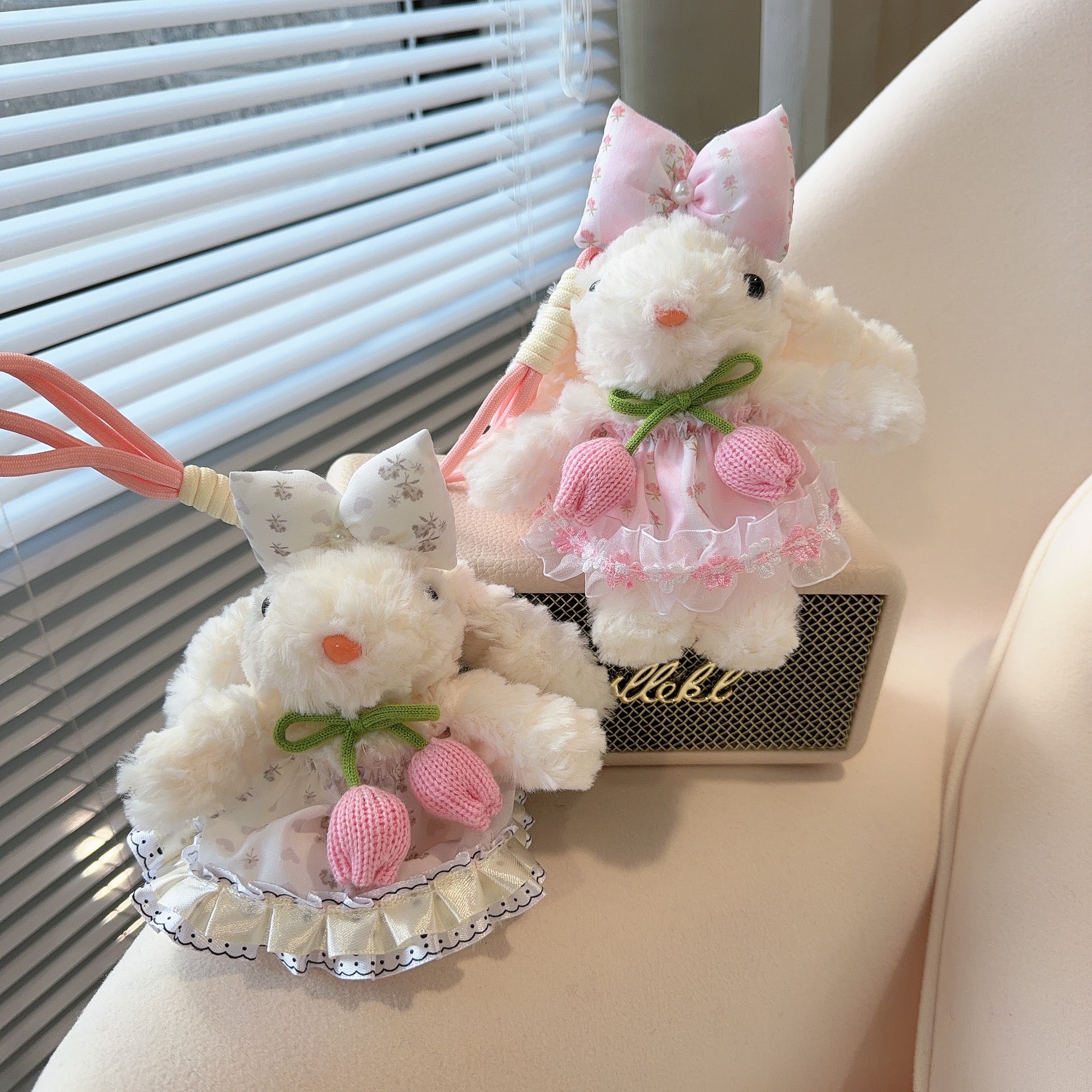 卡通垂耳兔子挂件郁金香波点格子裙蝴蝶结带香味钥匙扣时尚长耳兔