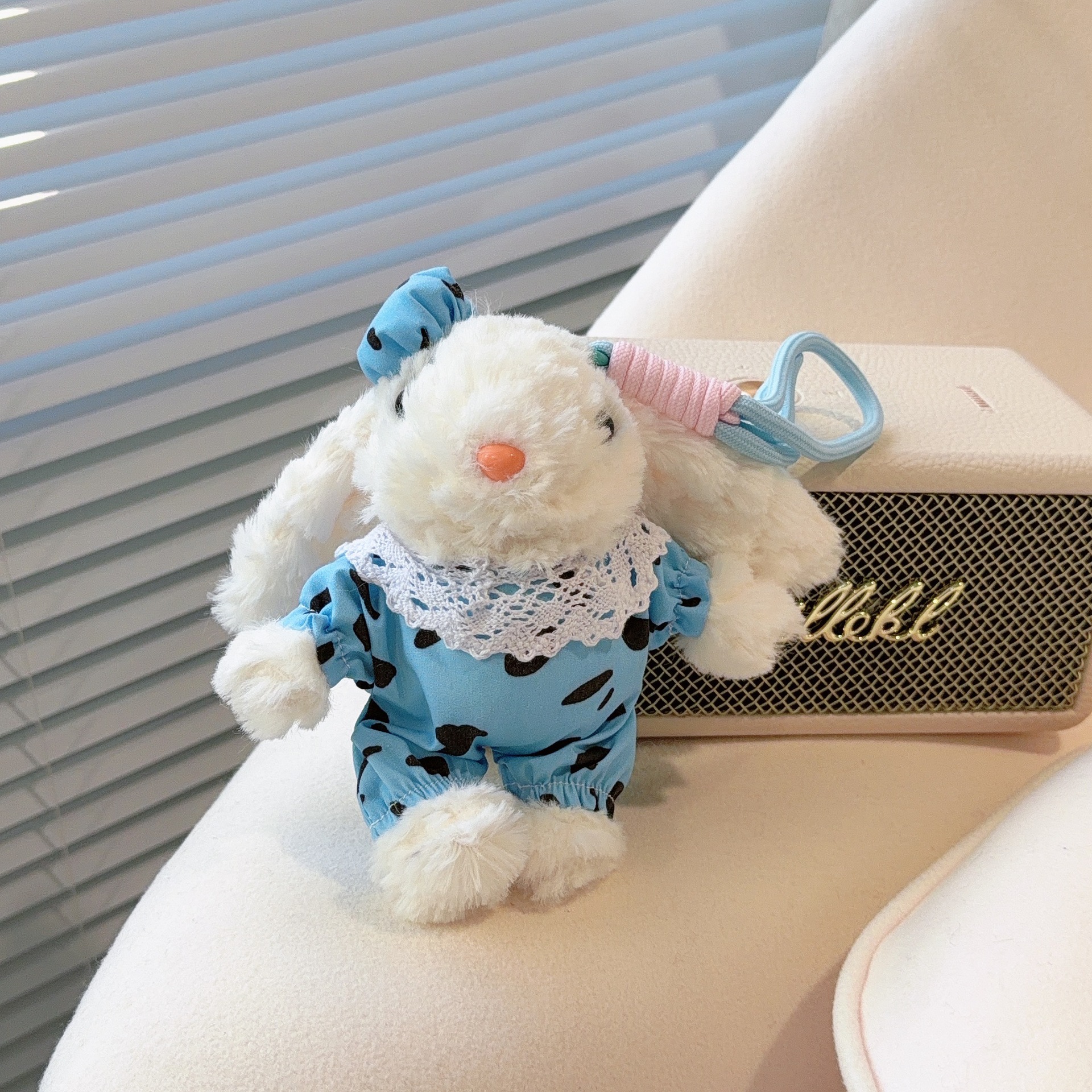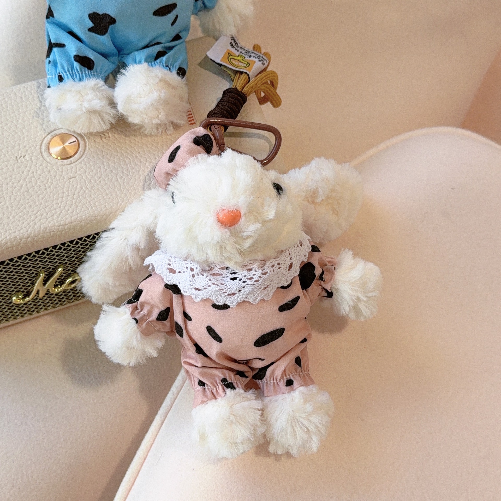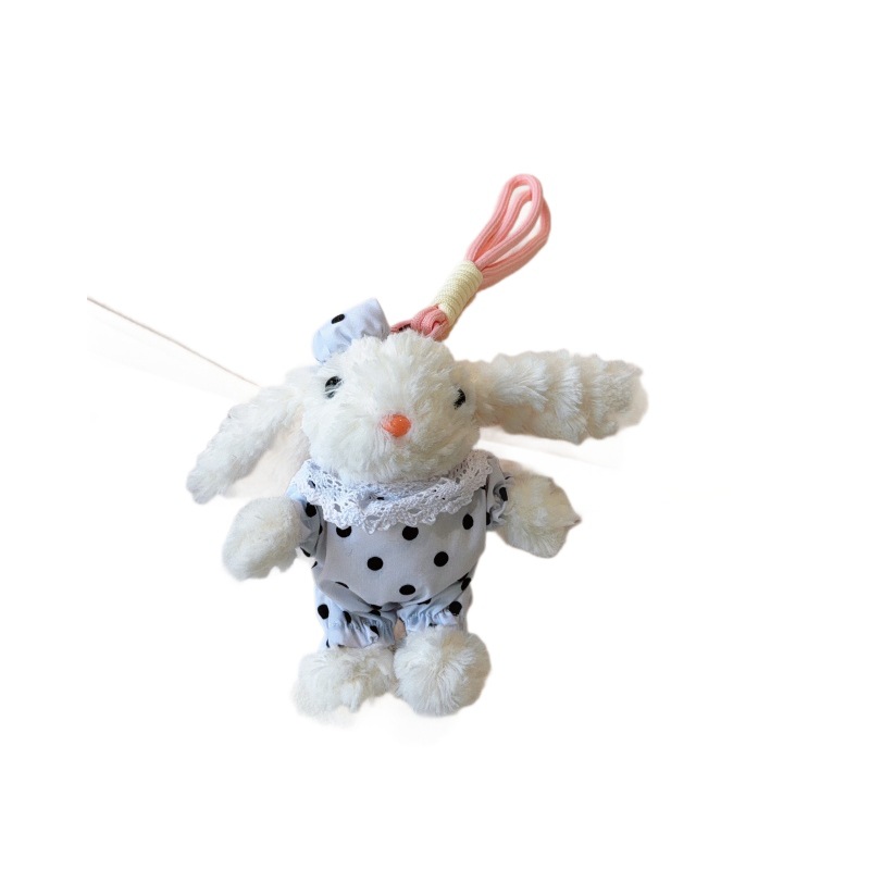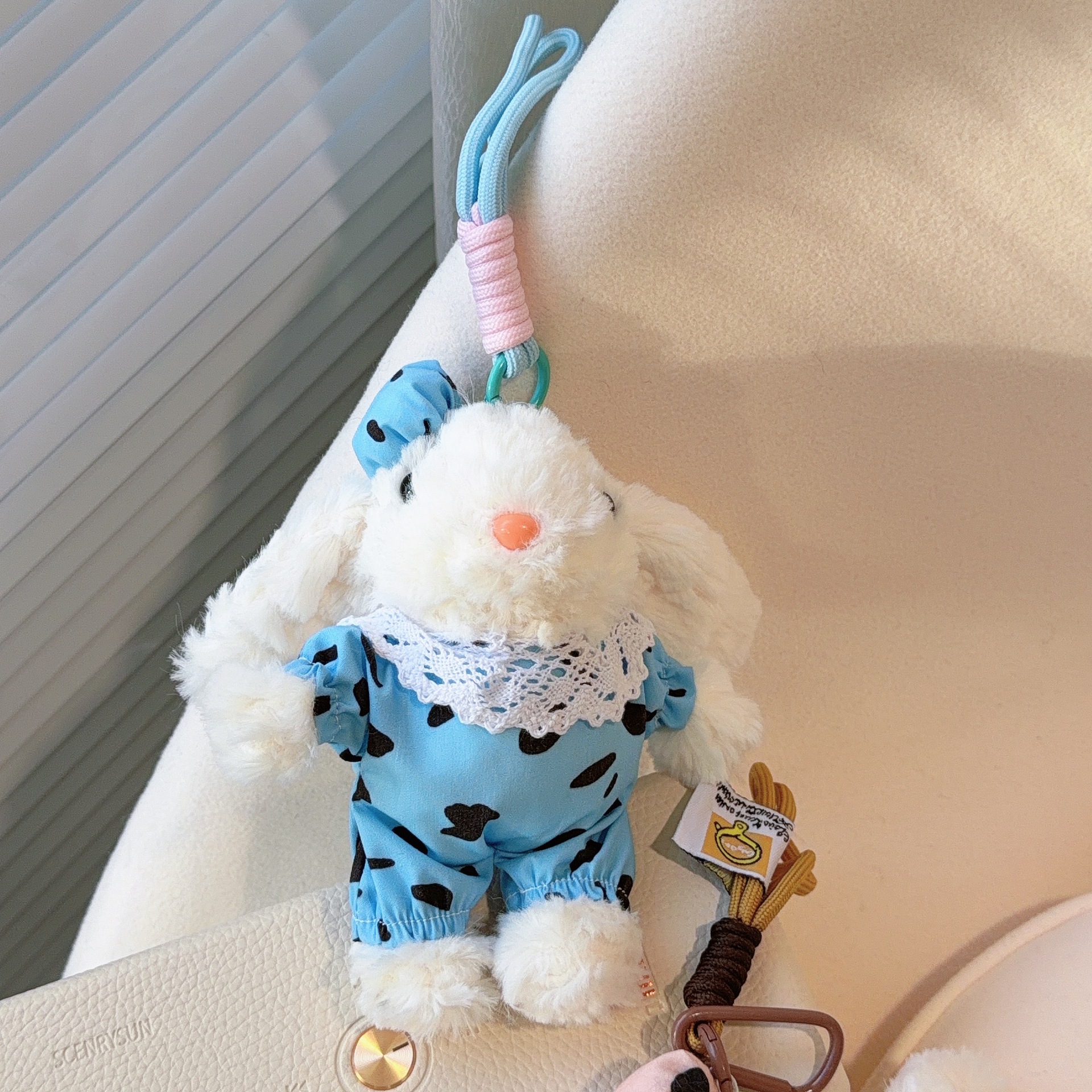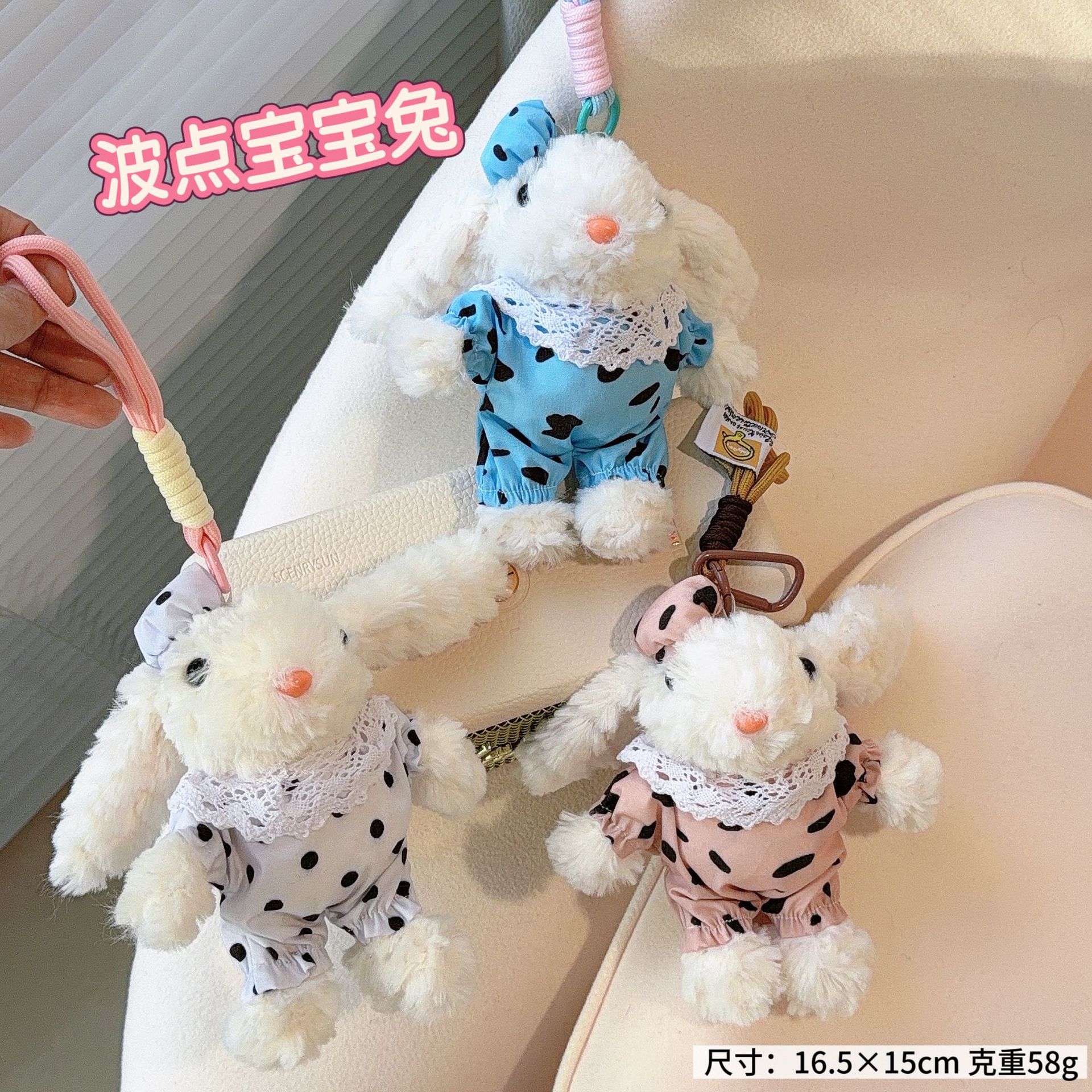 卡通垂耳兔子挂件郁金香波点格子裙蝴蝶结带香味钥匙扣时尚长耳兔