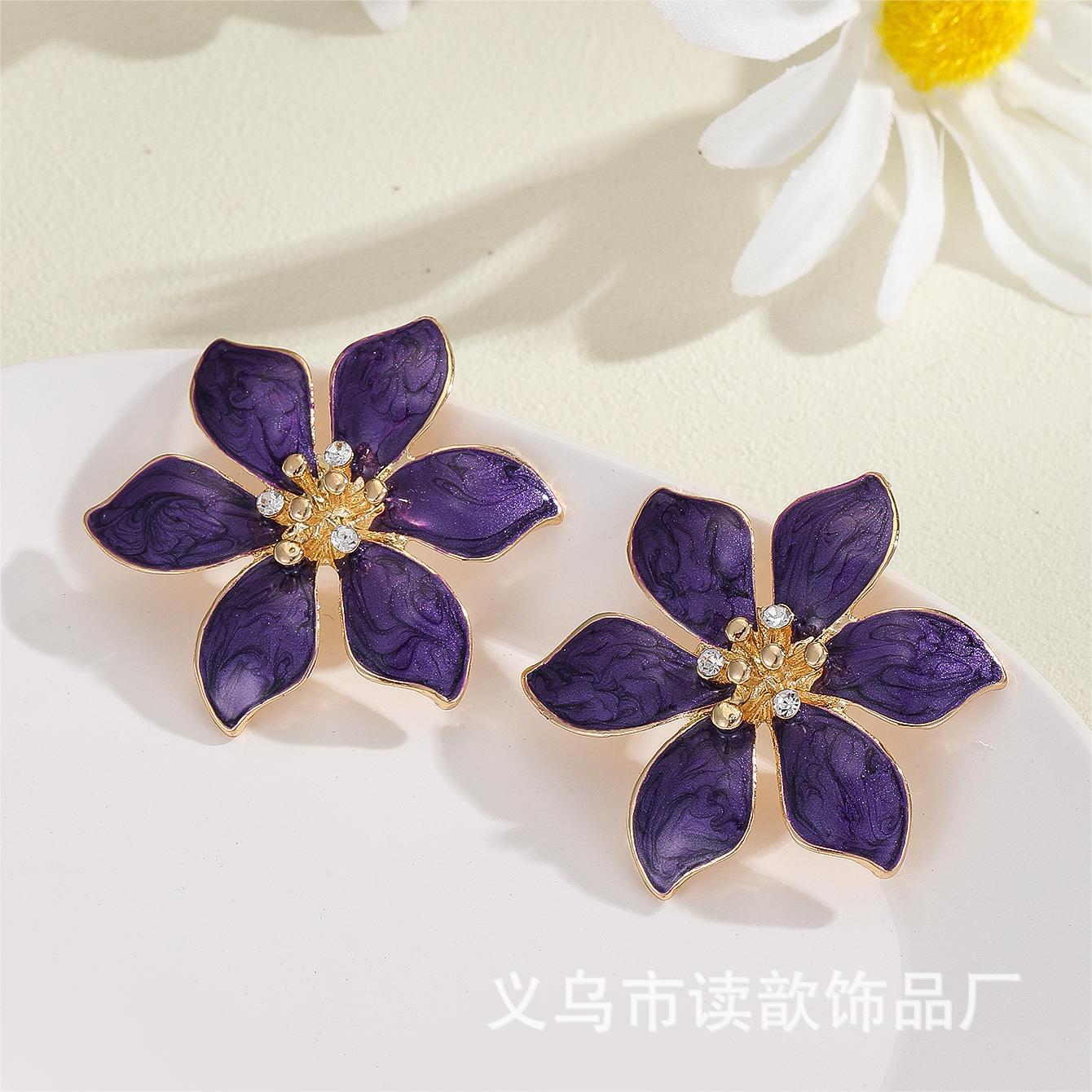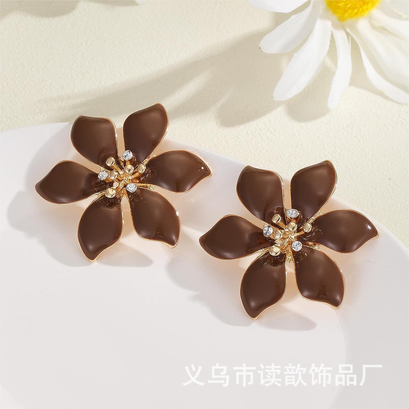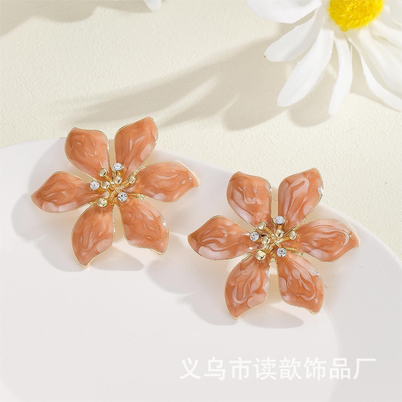 欧美爆款时尚滴油花朵耳钉女高级感气质简约个性潮流出游耳饰批发