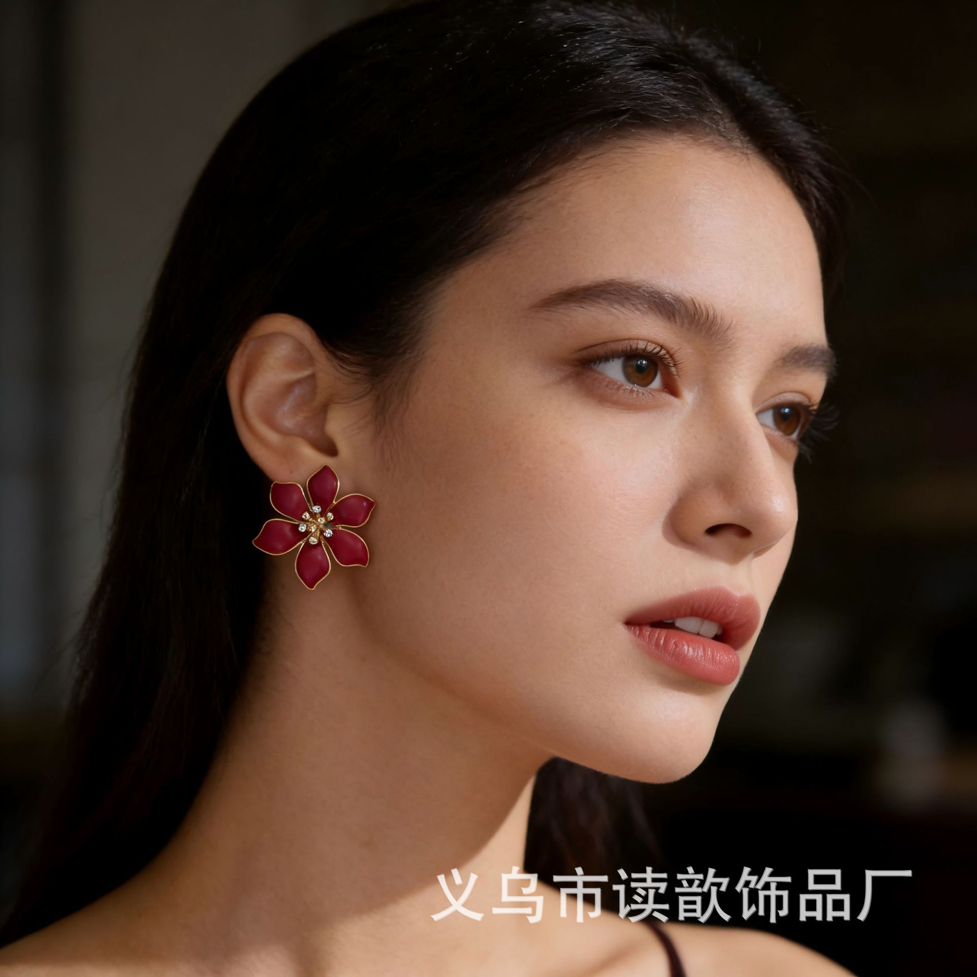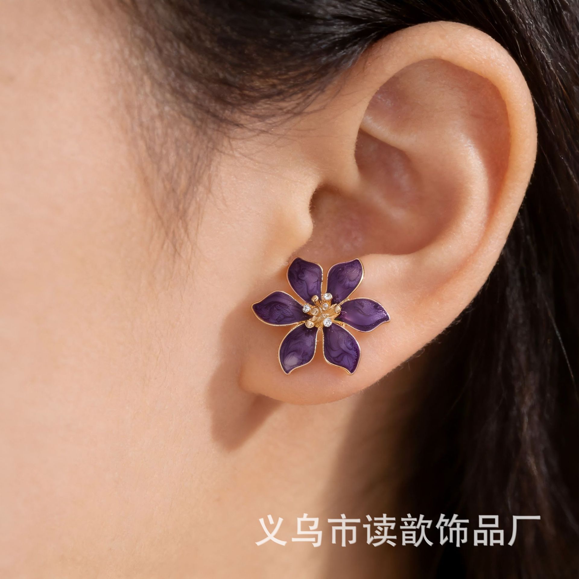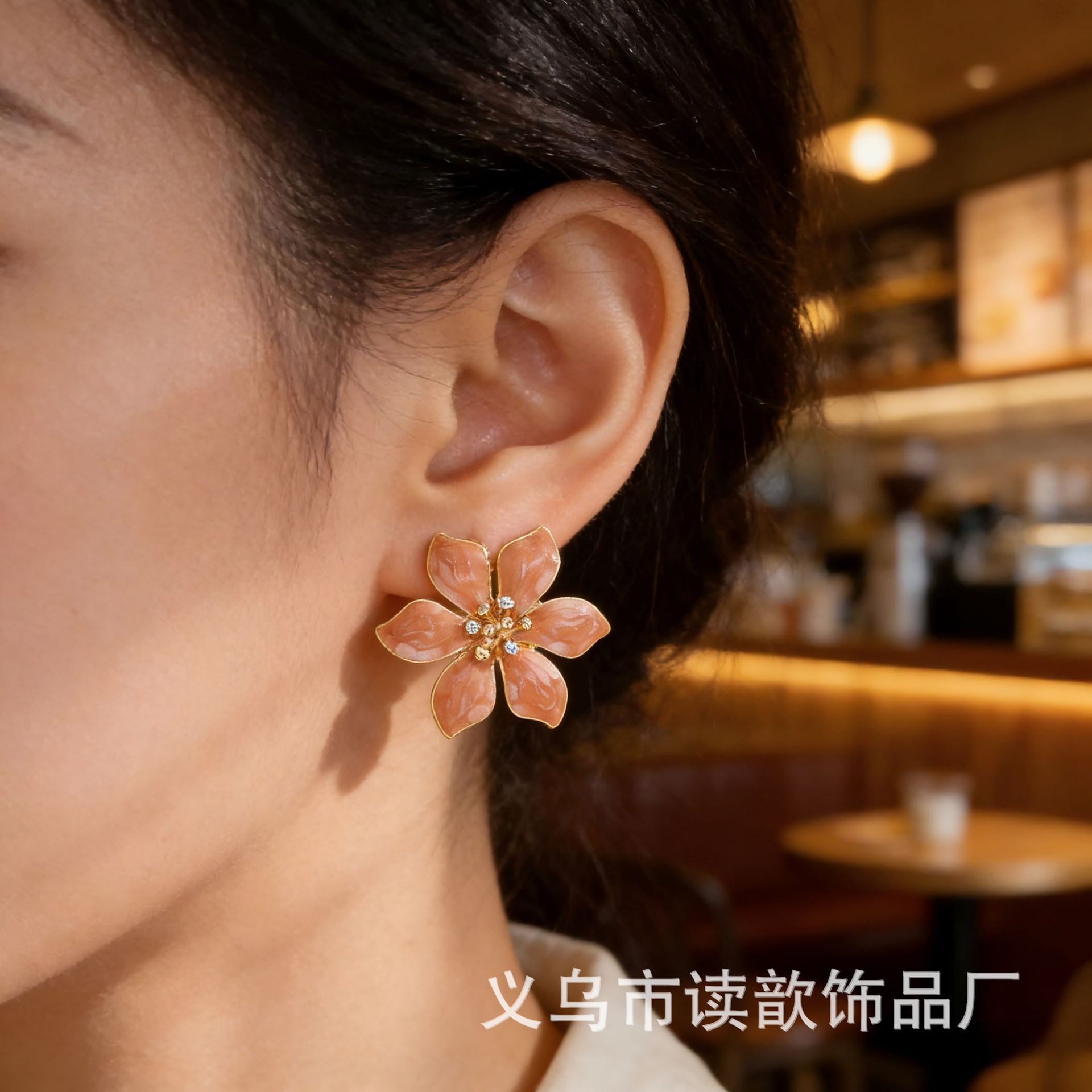 欧美爆款时尚滴油花朵耳钉女高级感气质简约个性潮流出游耳饰批发