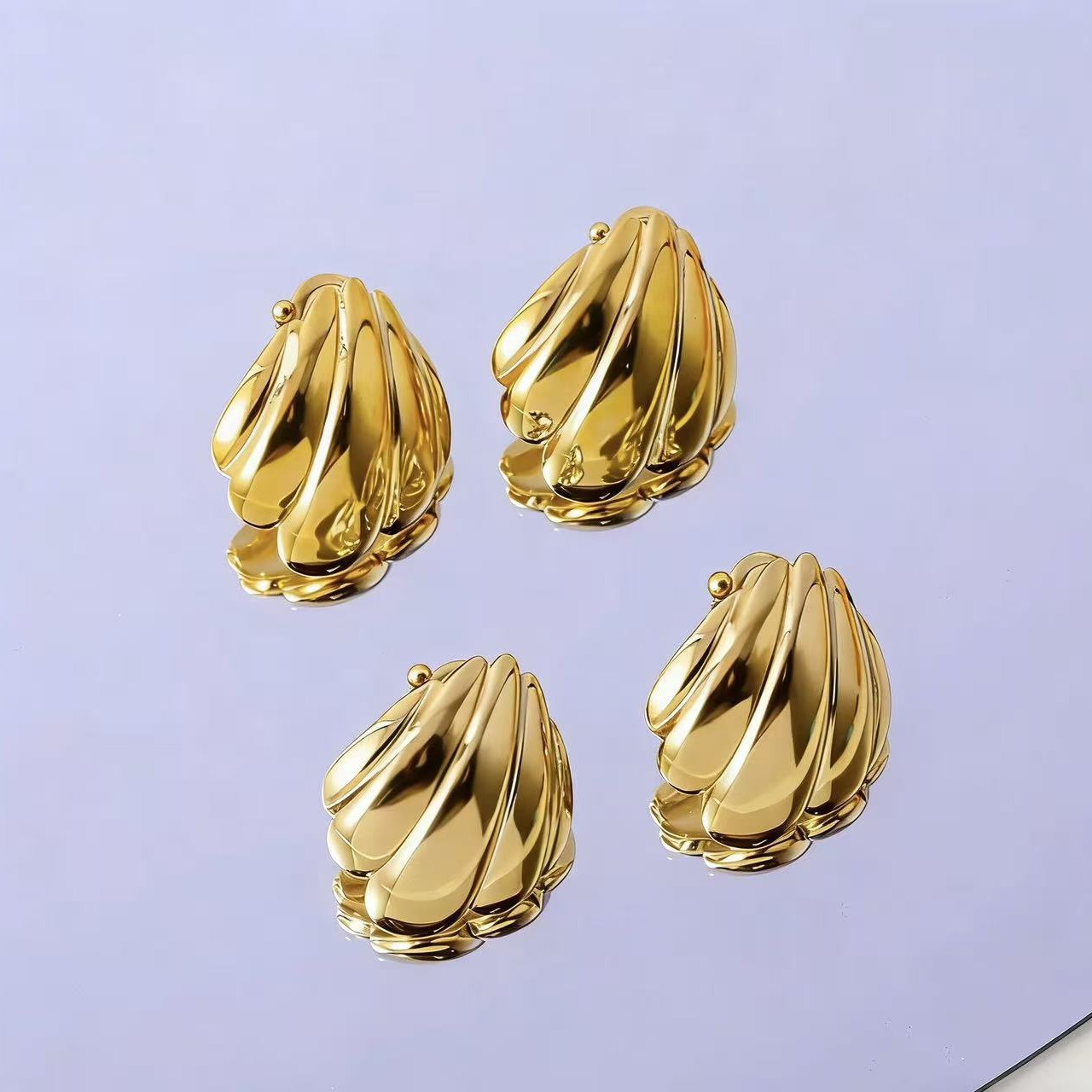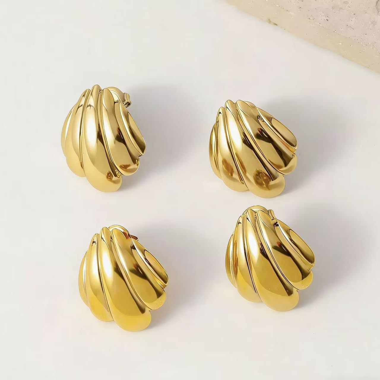跨境爆款贝壳流苏几何耳钉复古简约钛钢耳饰不锈钢首饰批发