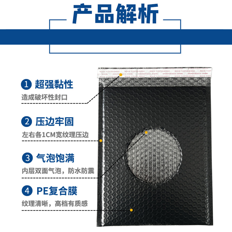 黑色共挤膜双层加厚大泡自粘气泡袋防震防摔泡沫袋自黏袋快递打包
