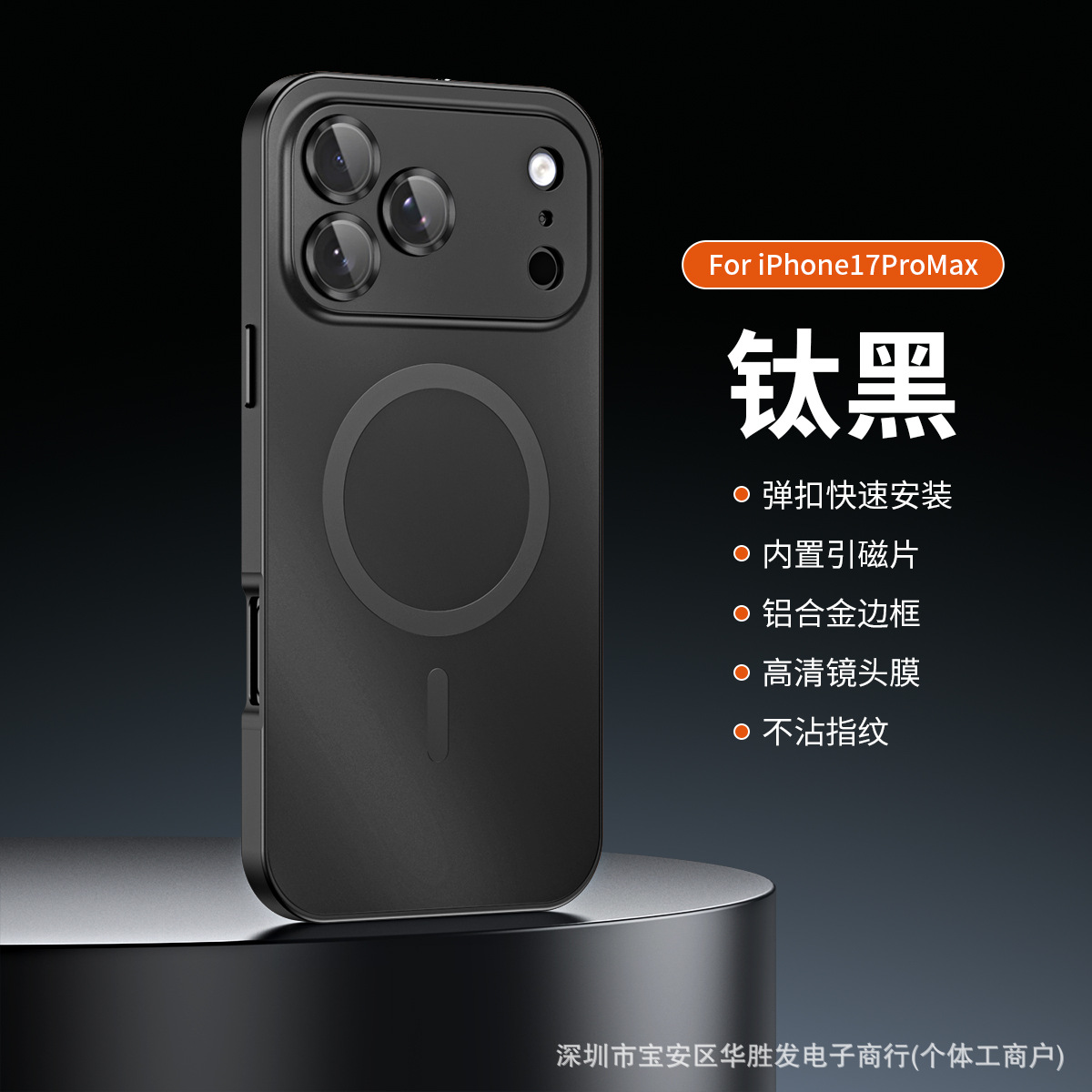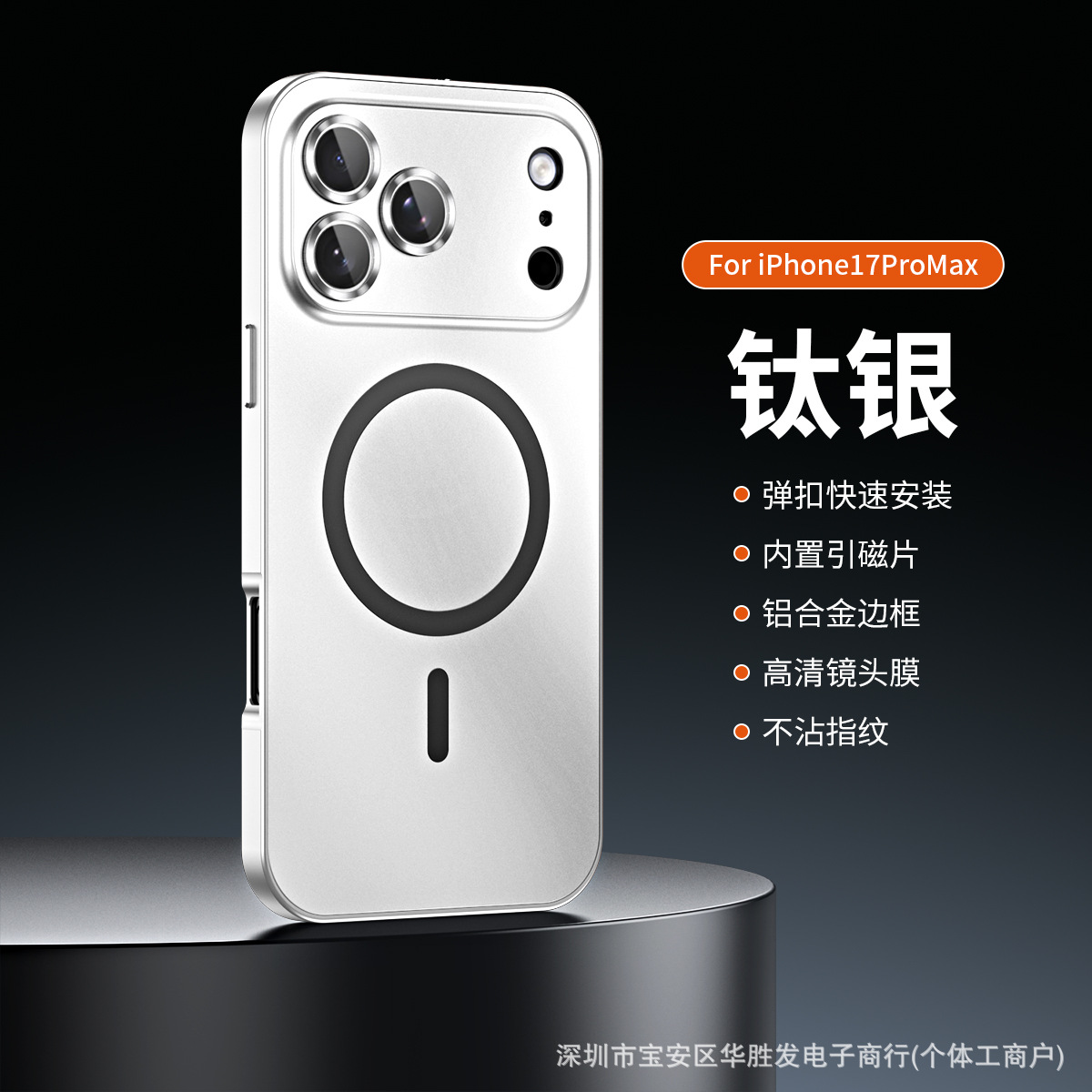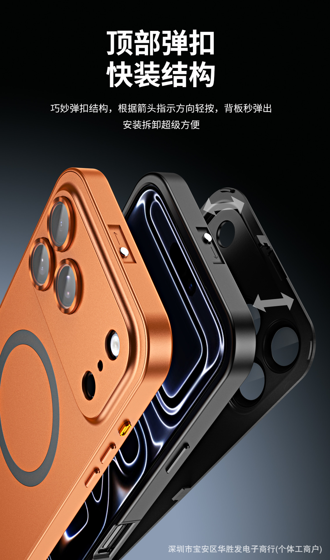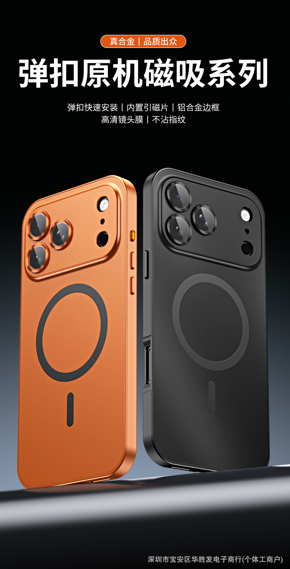 适用iPhone17promax弹扣磁吸手机壳金属边框苹果16防摔PC保护套15