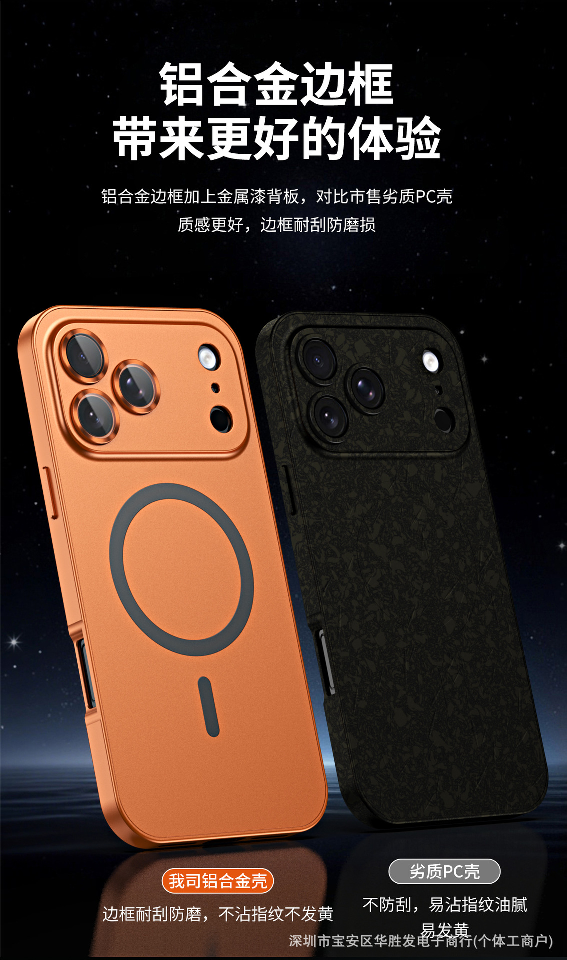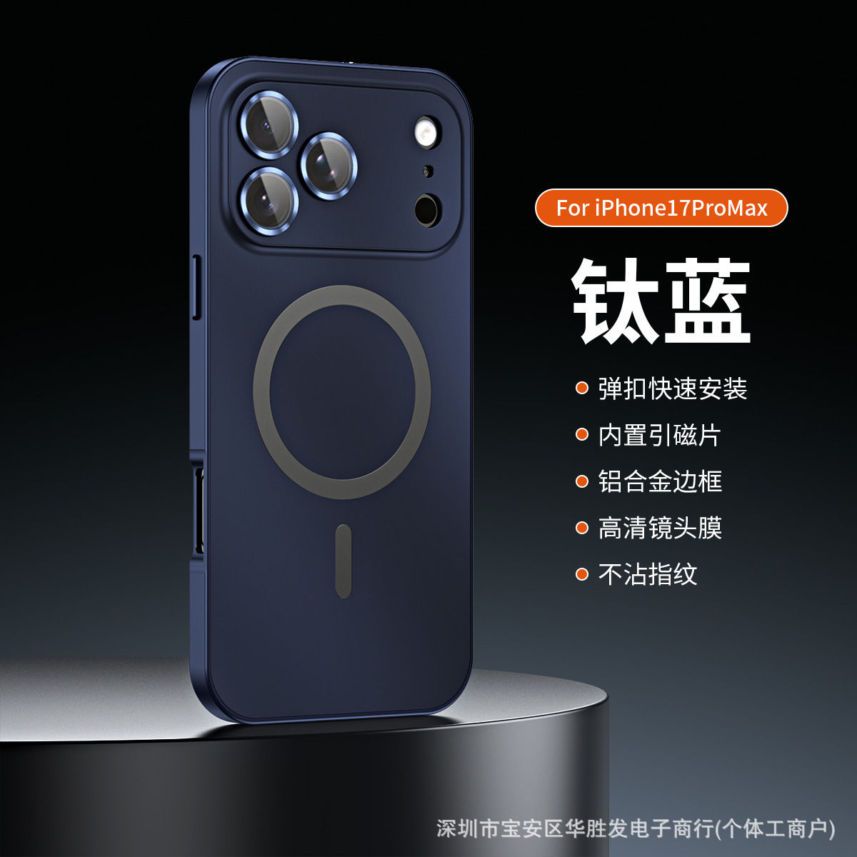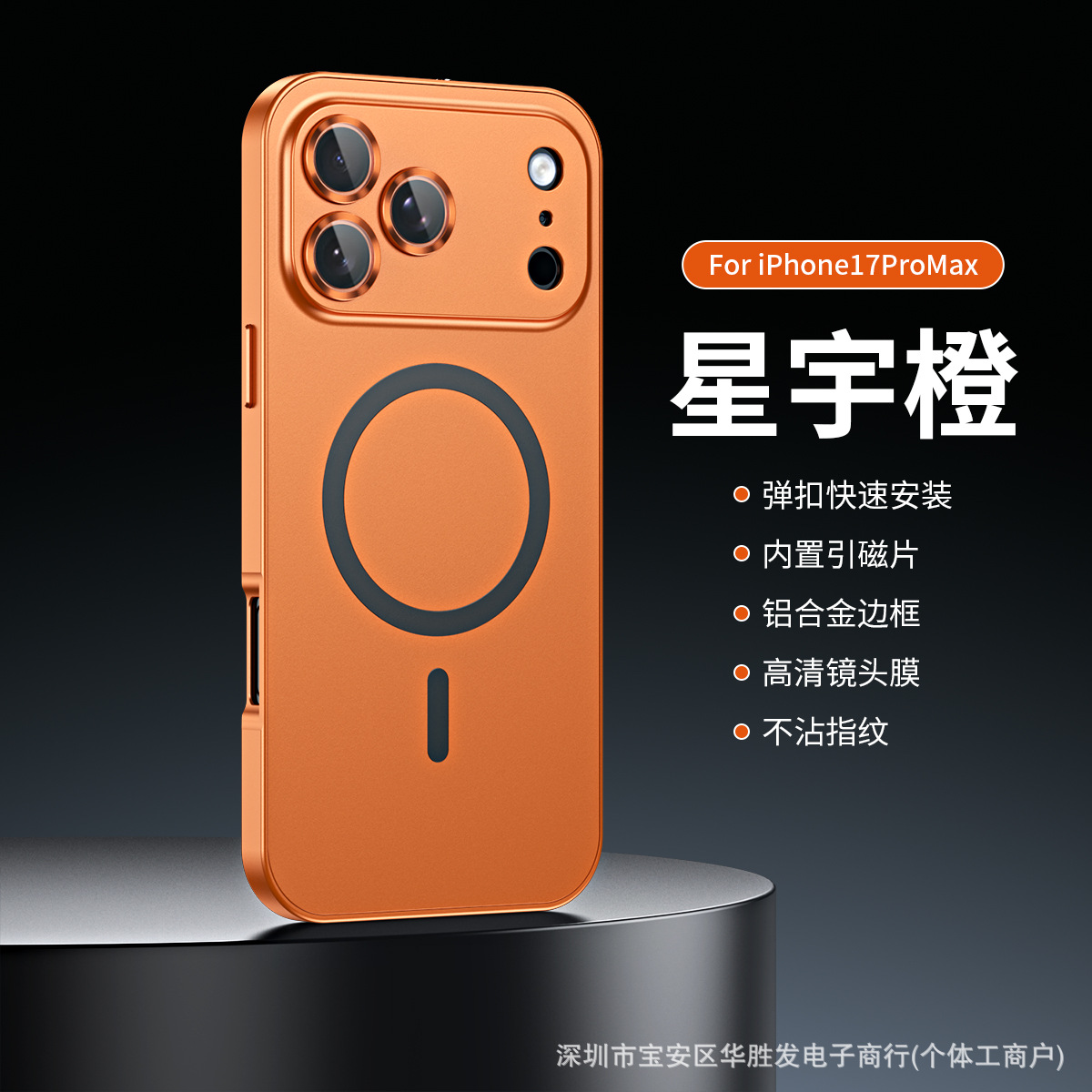 适用iPhone17promax弹扣磁吸手机壳金属边框苹果16防摔PC保护套15