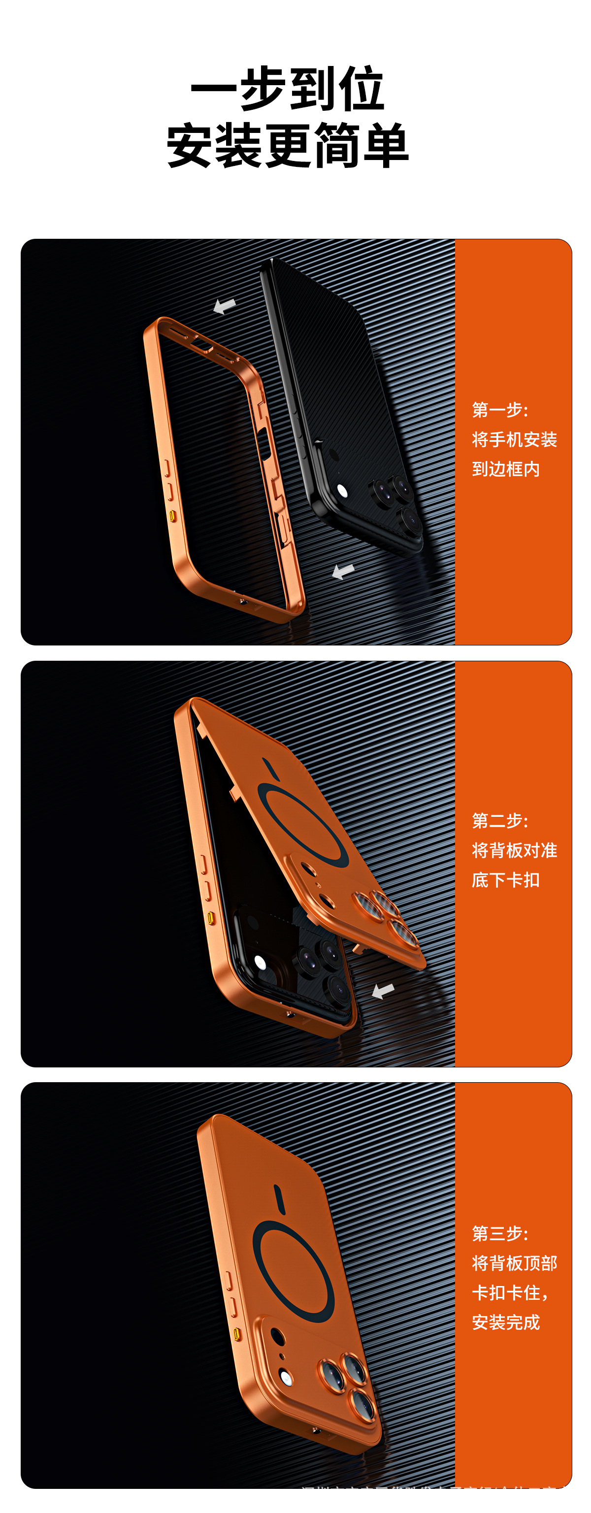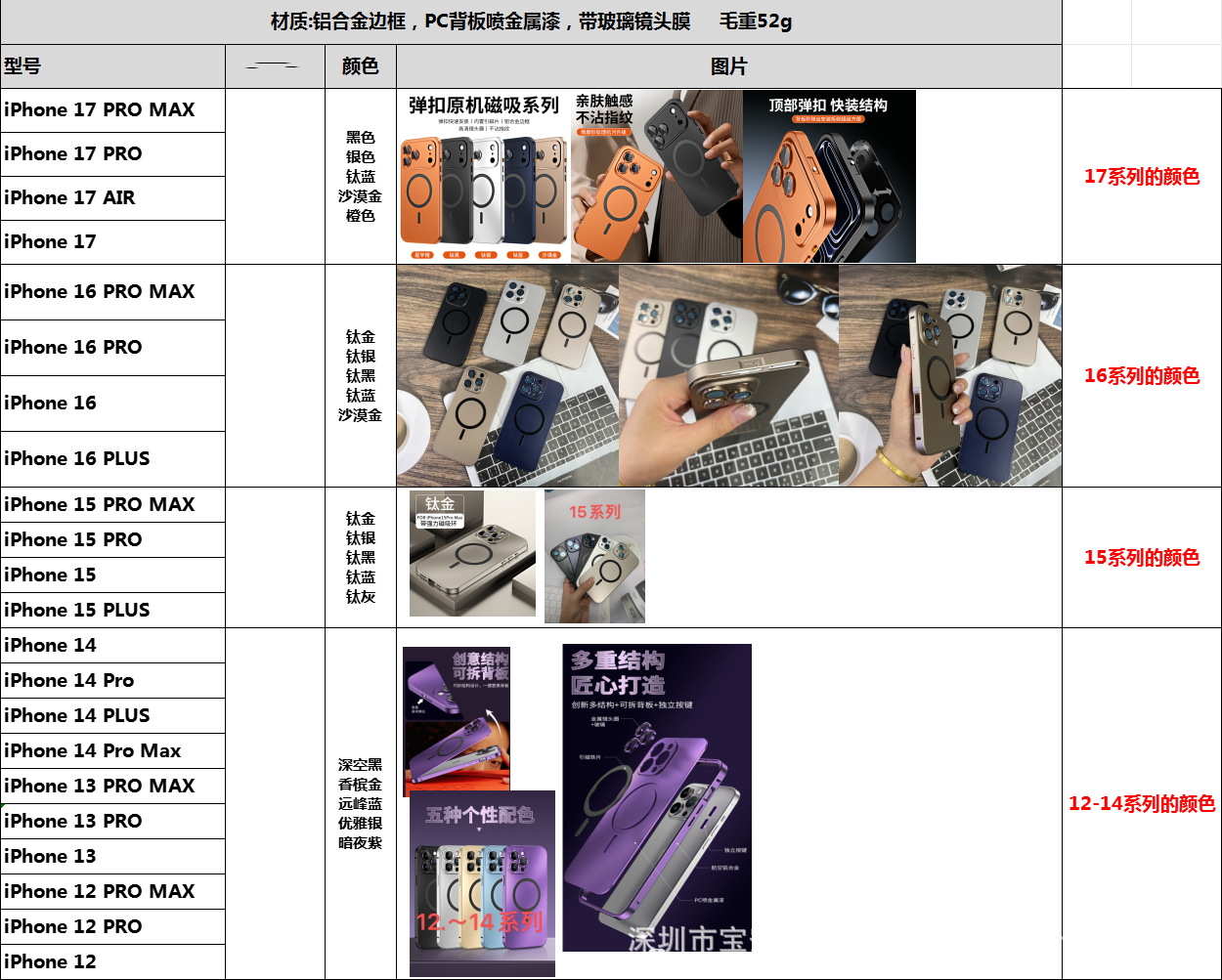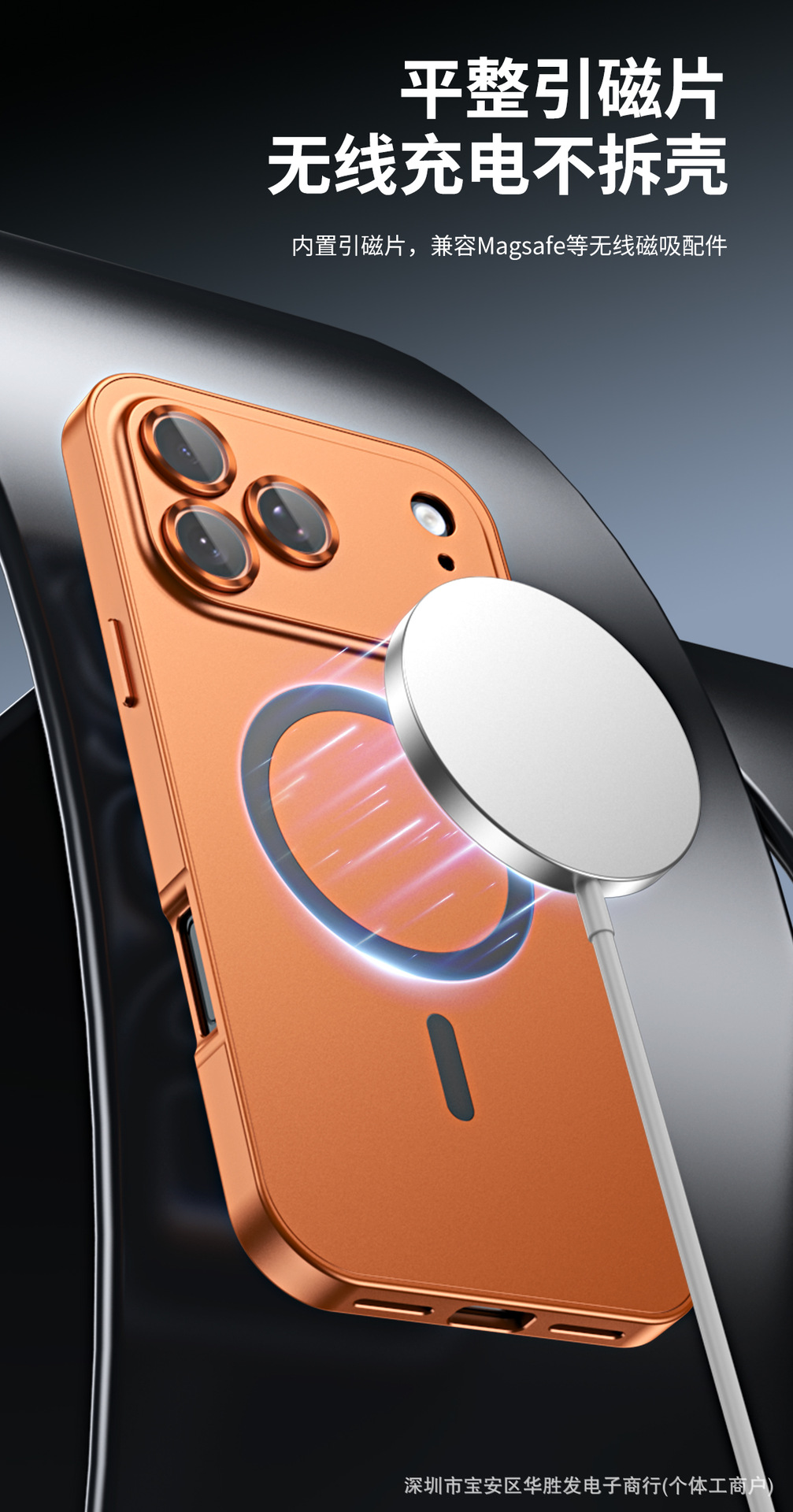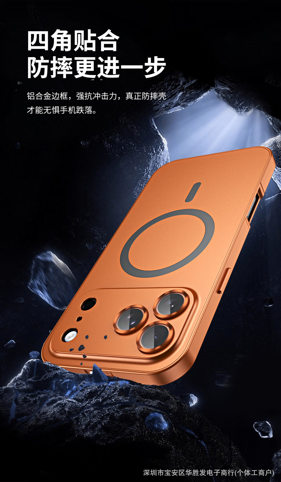 适用iPhone17promax弹扣磁吸手机壳金属边框苹果16防摔PC保护套15