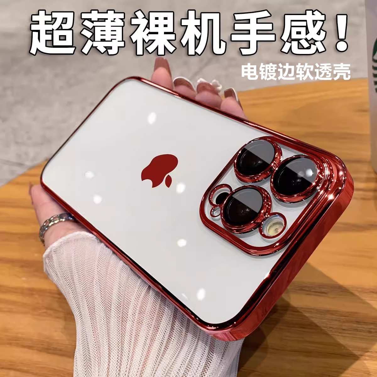 适用iPhone17电镀tpu透明手机壳苹果16带镜头膜15pro防摔保护套14
