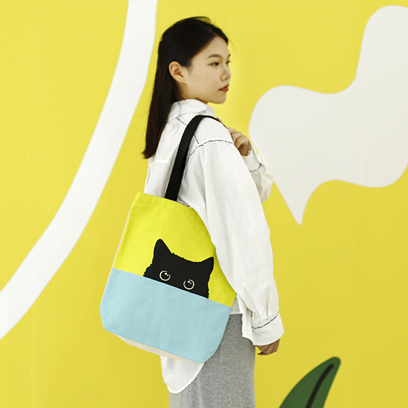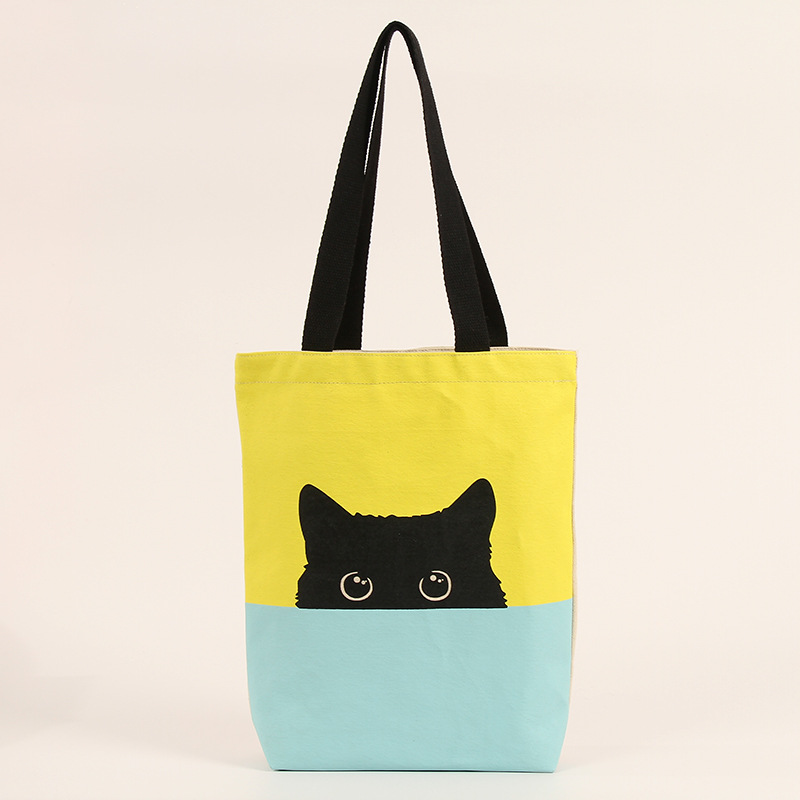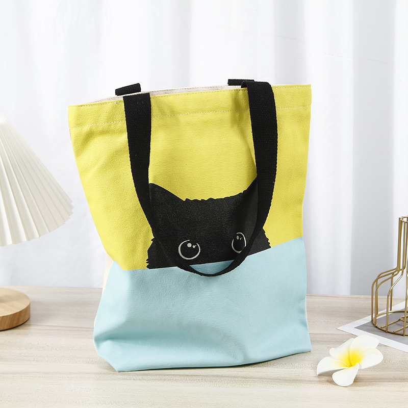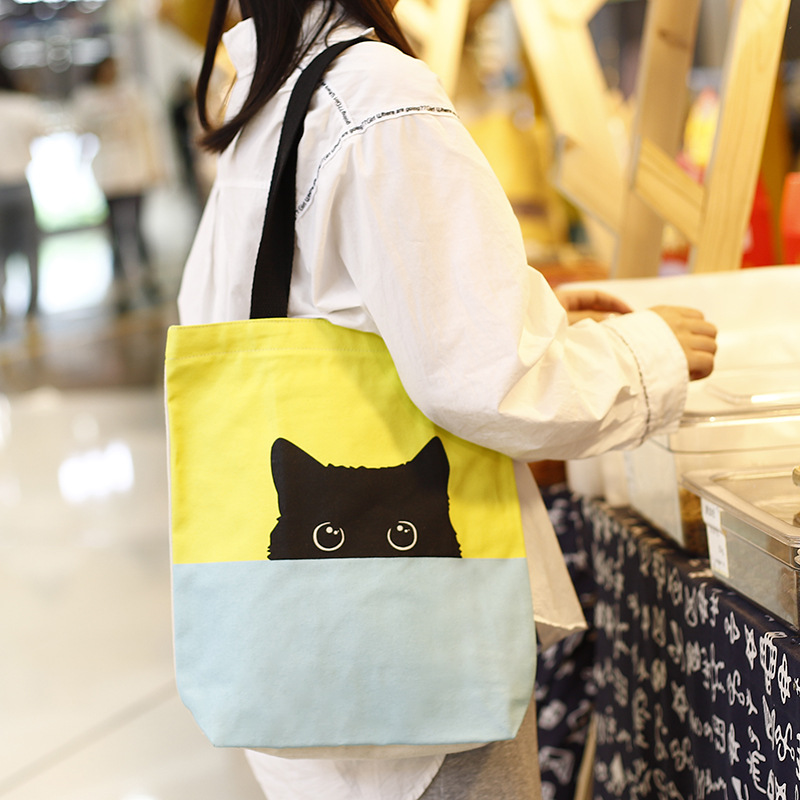 现货直供可爱卡通猫咪帆布袋单肩女帆布包购物棉布袋手提手挽包包