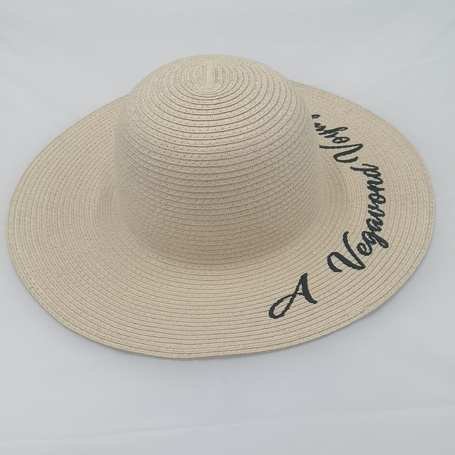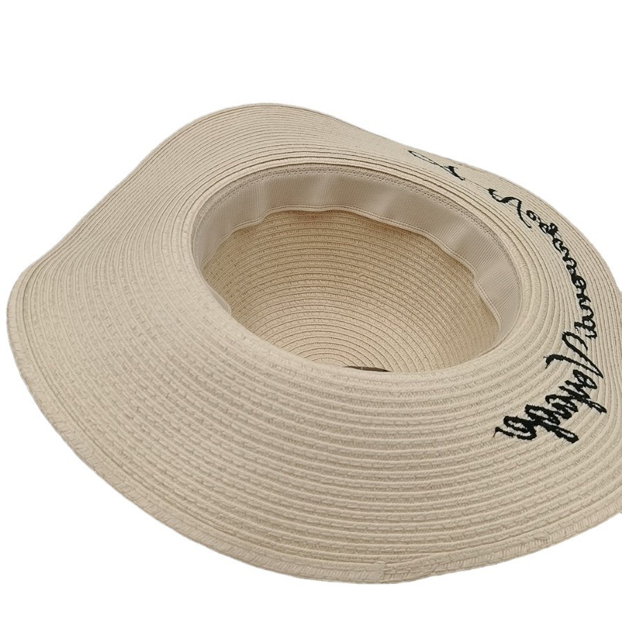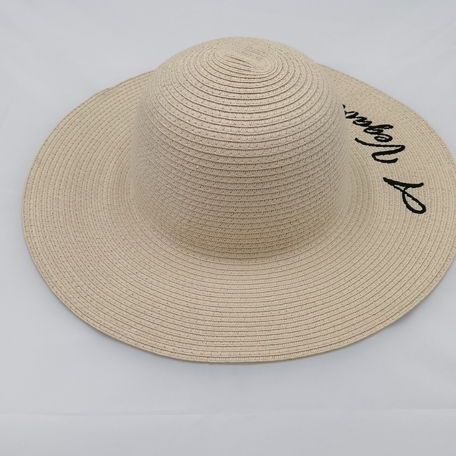 度假帽子海边沙滩帽防晒大檐草帽女可折叠刺绣太阳帽遮阳纸草帽