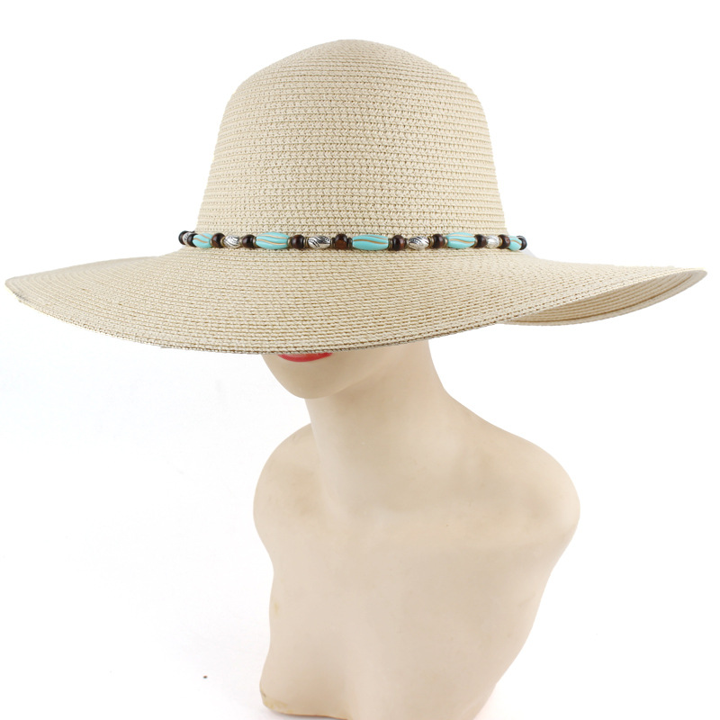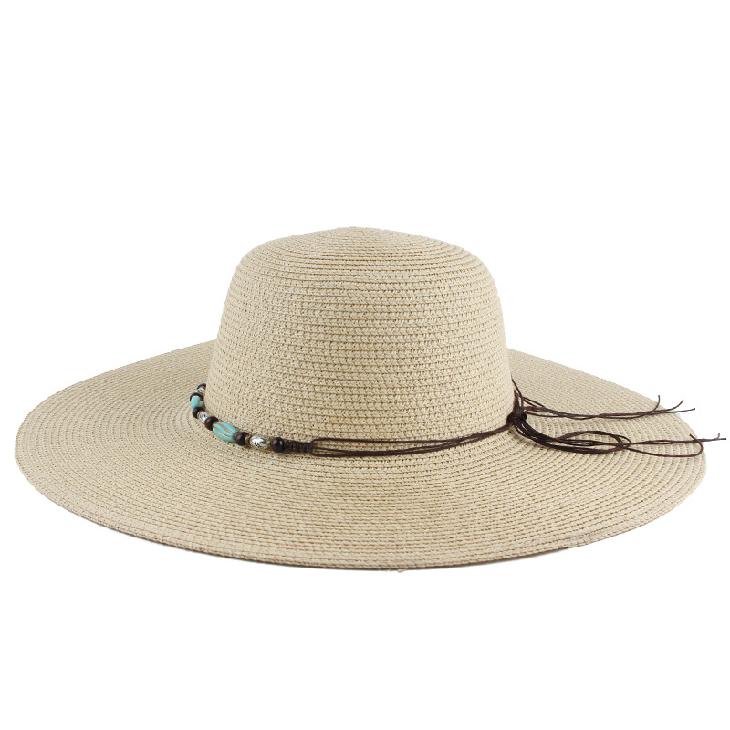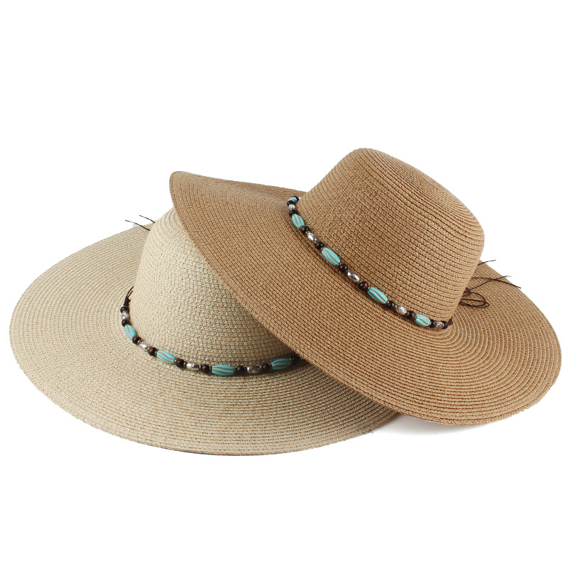 女士春夏款百搭大沿草帽户外旅行度假遮阳帽圆顶沙滩帽工厂批发