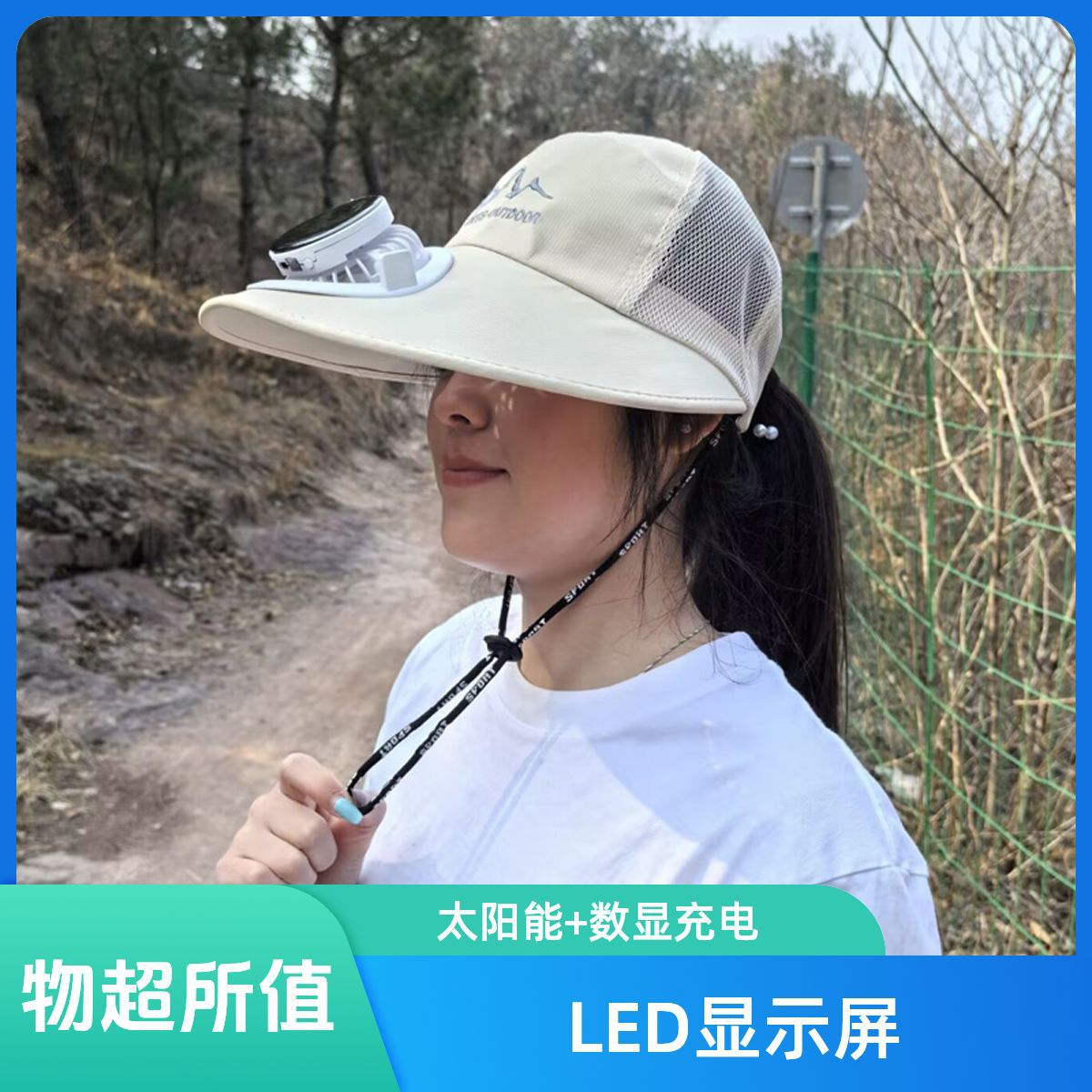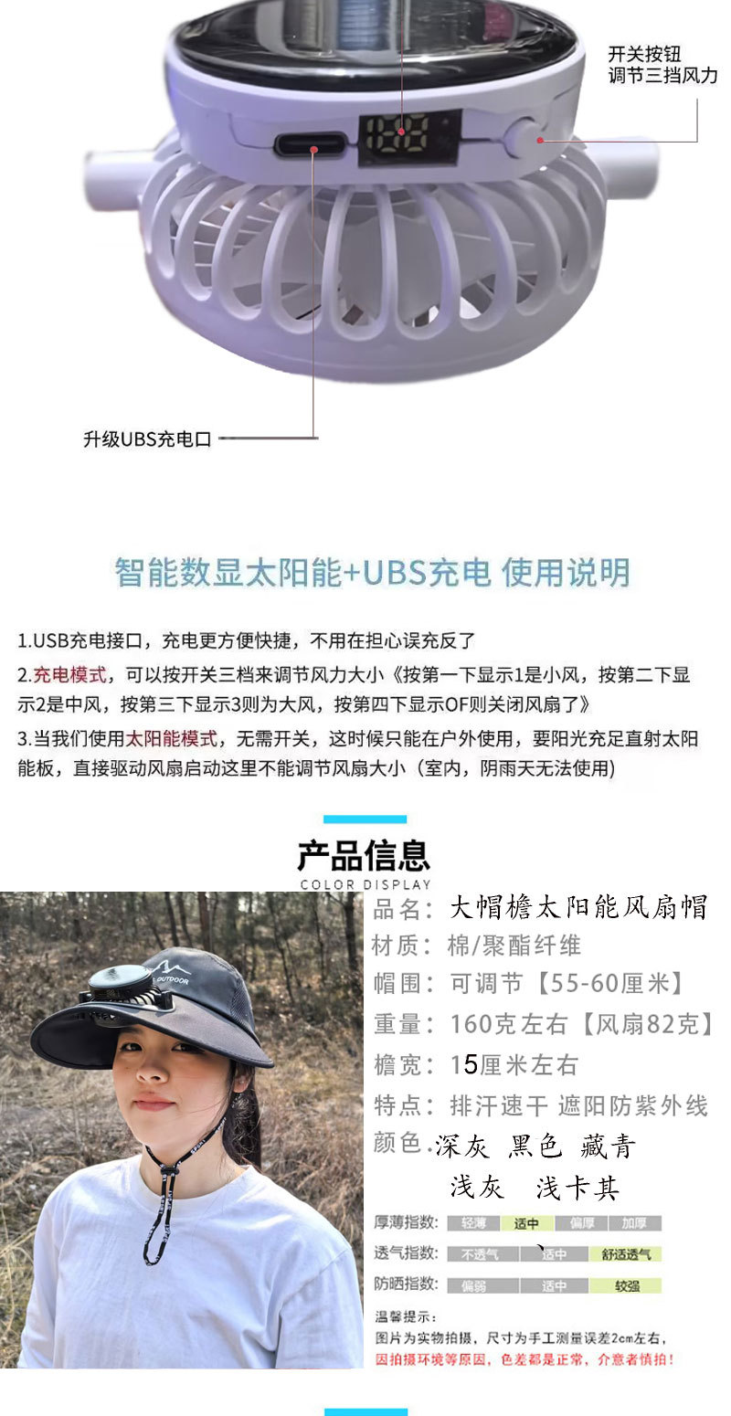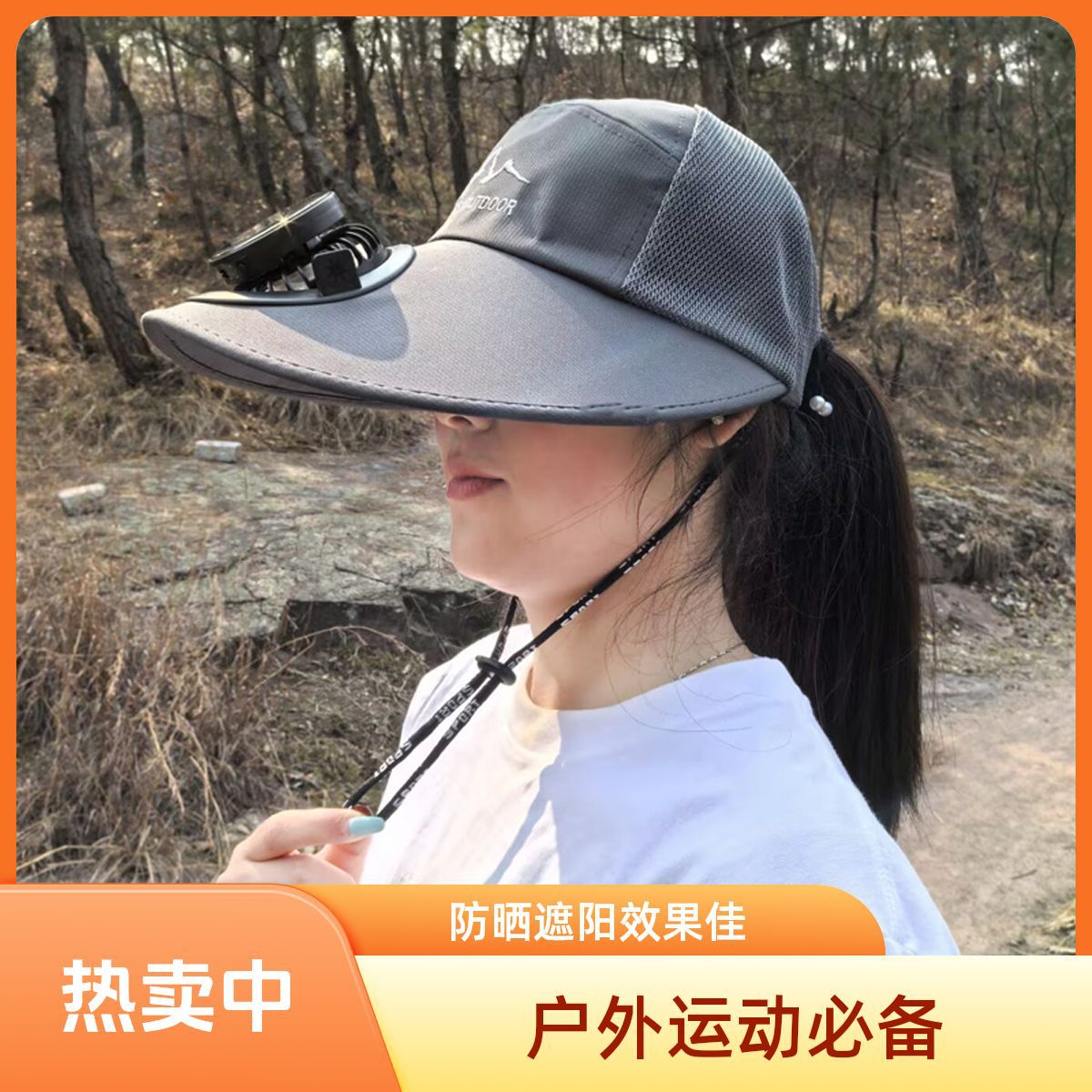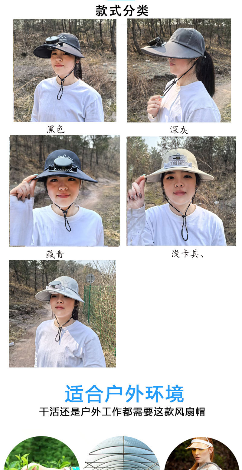 新款钓鱼风扇帽子太阳能充电带风扇的帽子夏季干活户外遮阳防晒帽