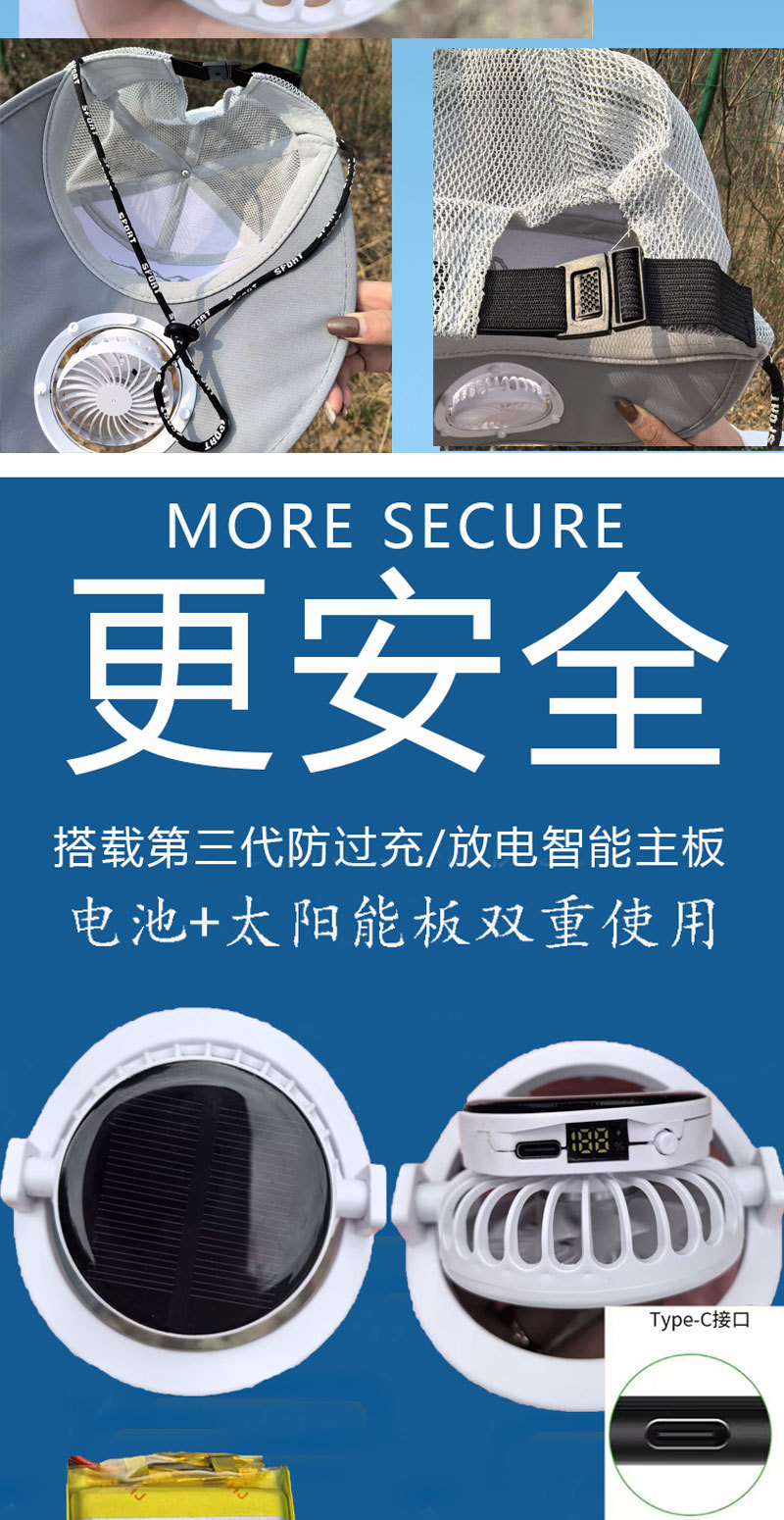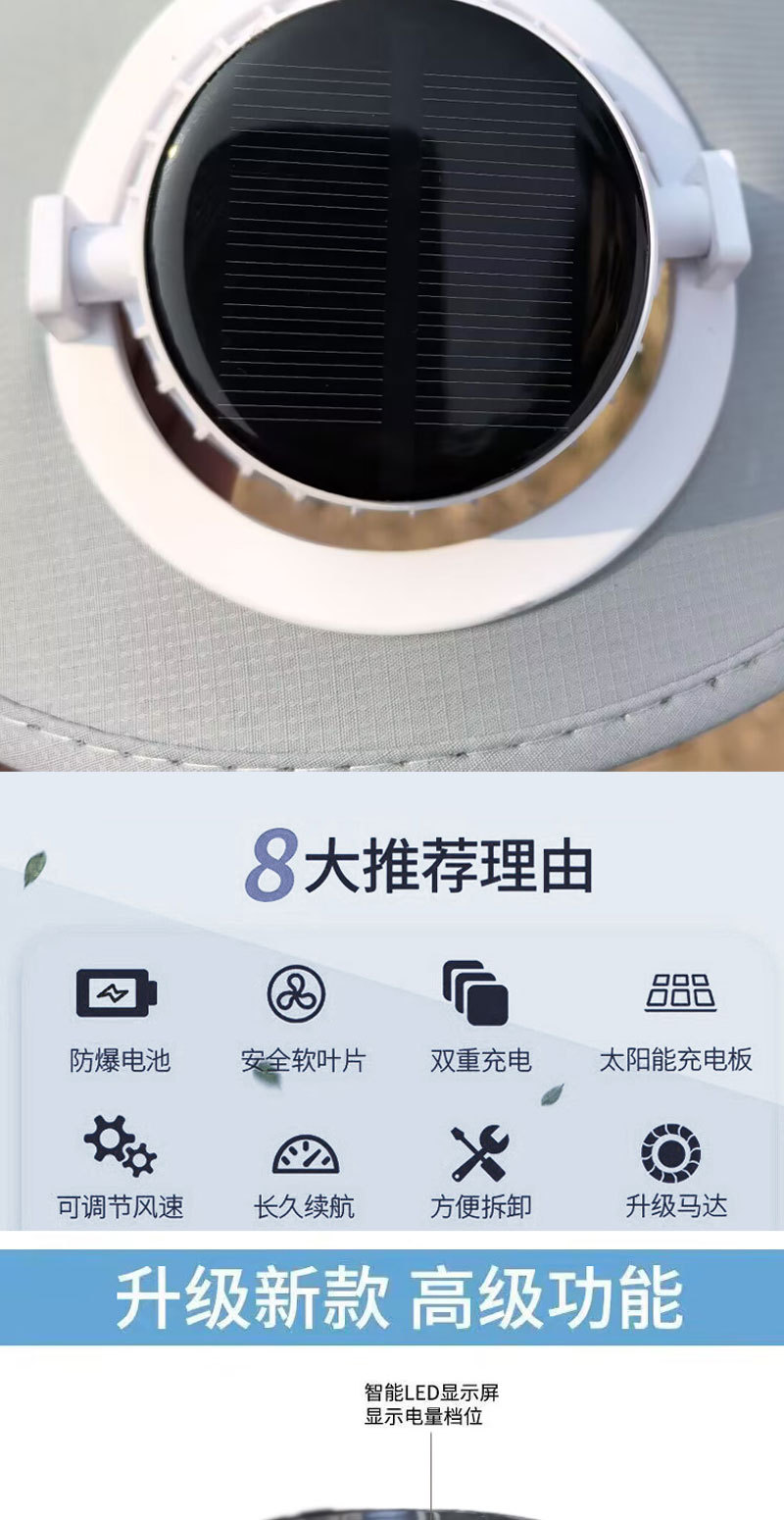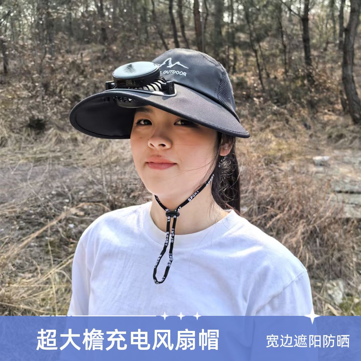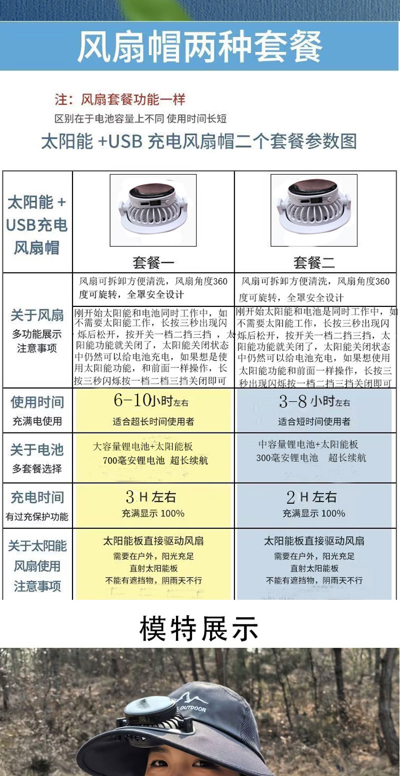 新款钓鱼风扇帽子太阳能充电带风扇的帽子夏季干活户外遮阳防晒帽
