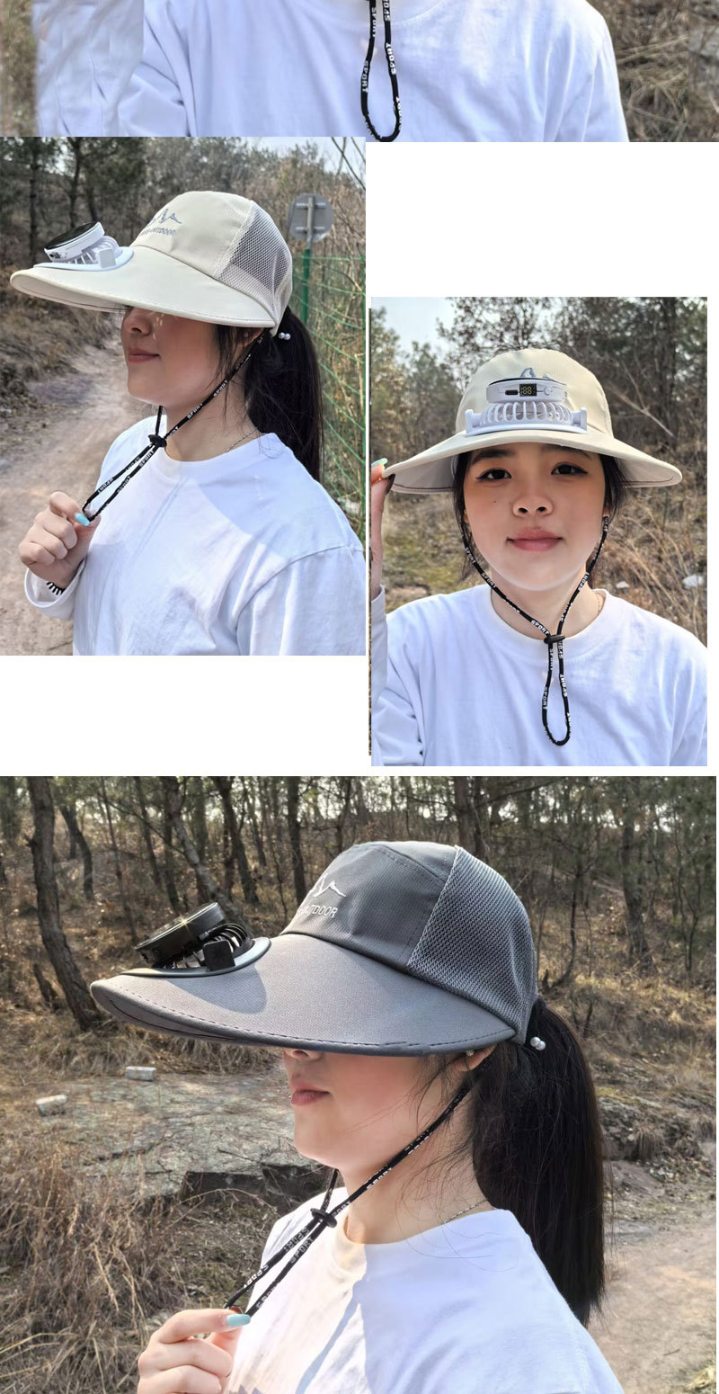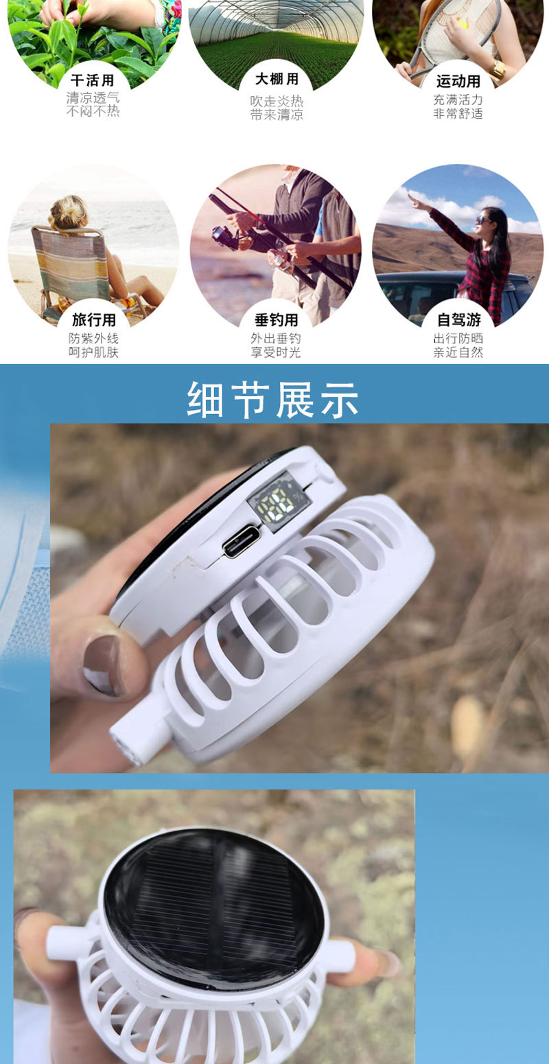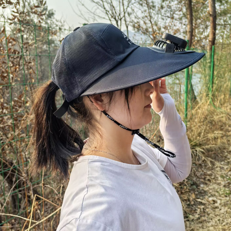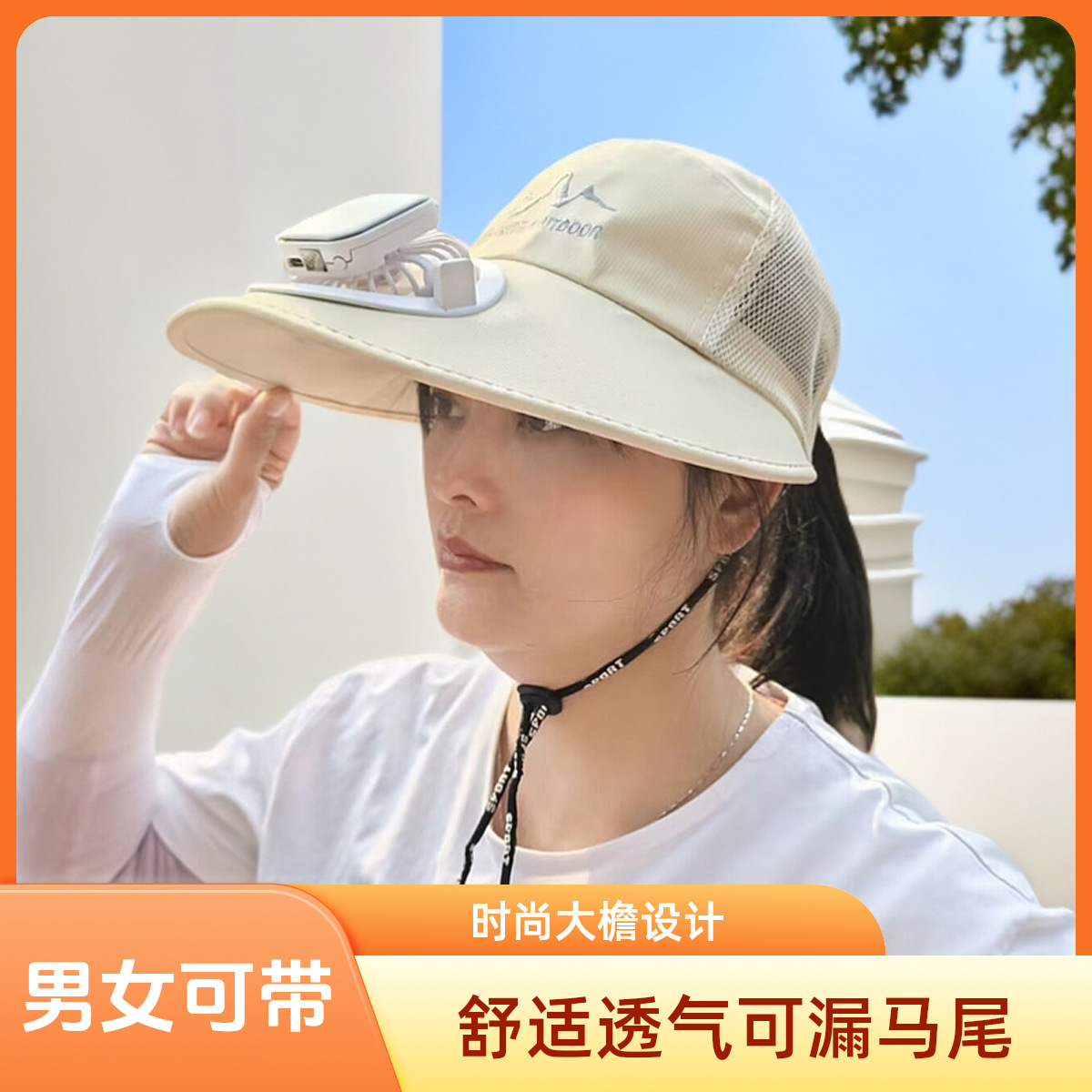 新款钓鱼风扇帽子太阳能充电带风扇的帽子夏季干活户外遮阳防晒帽