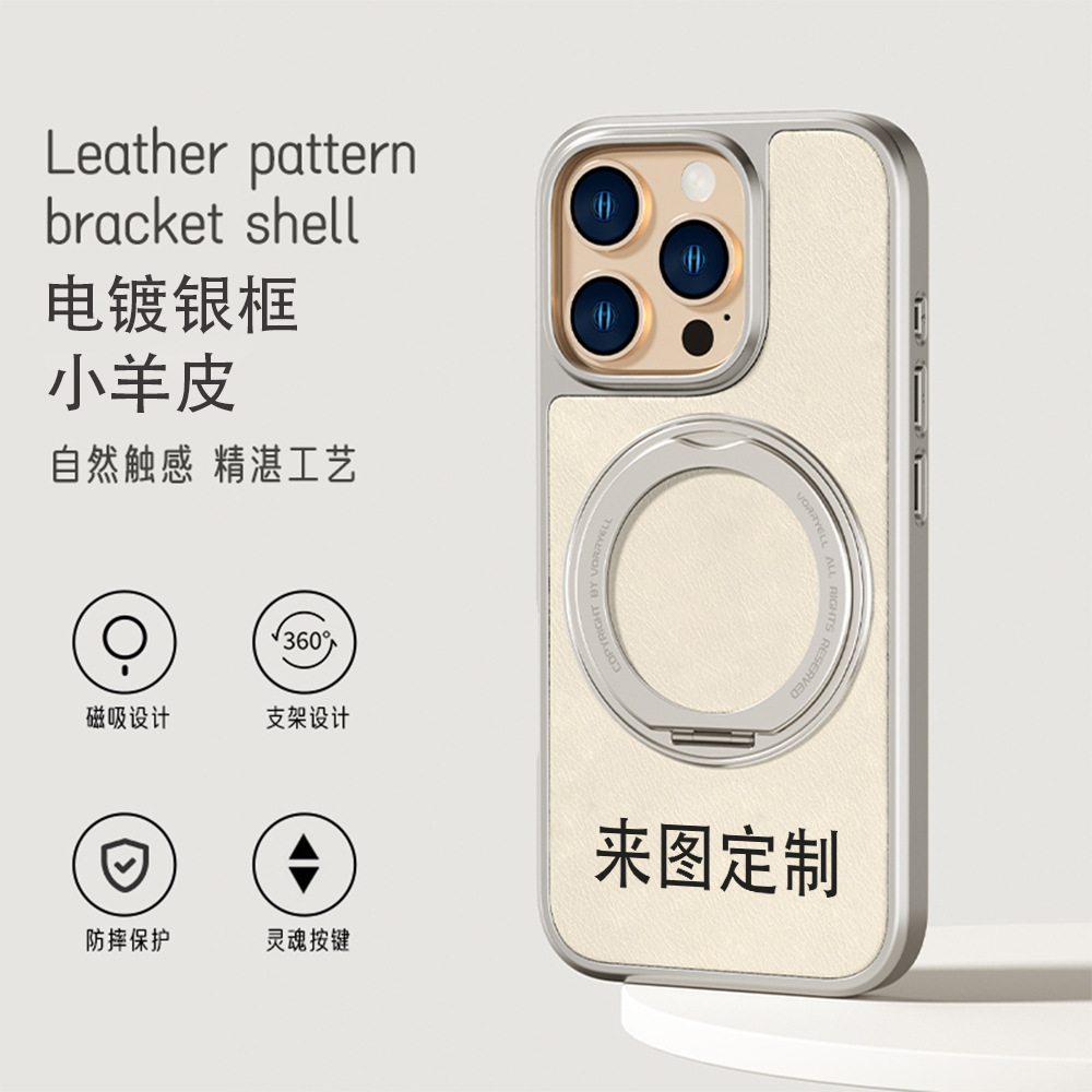 小羊皮磁吸支点支架电镀银定 制适用苹果16手机壳15pro软壳硬壳14