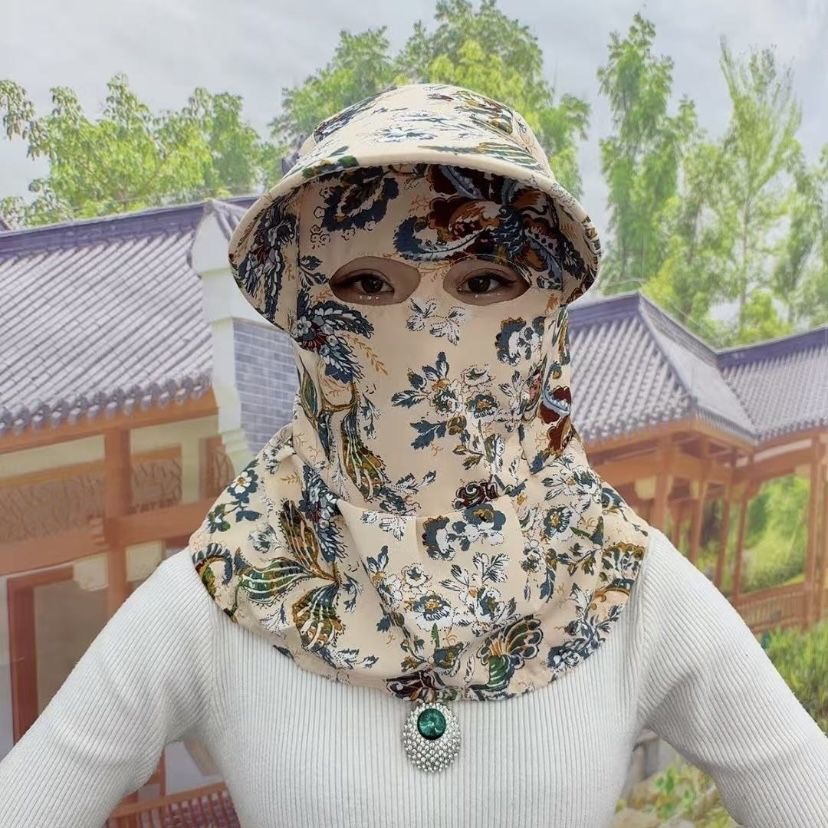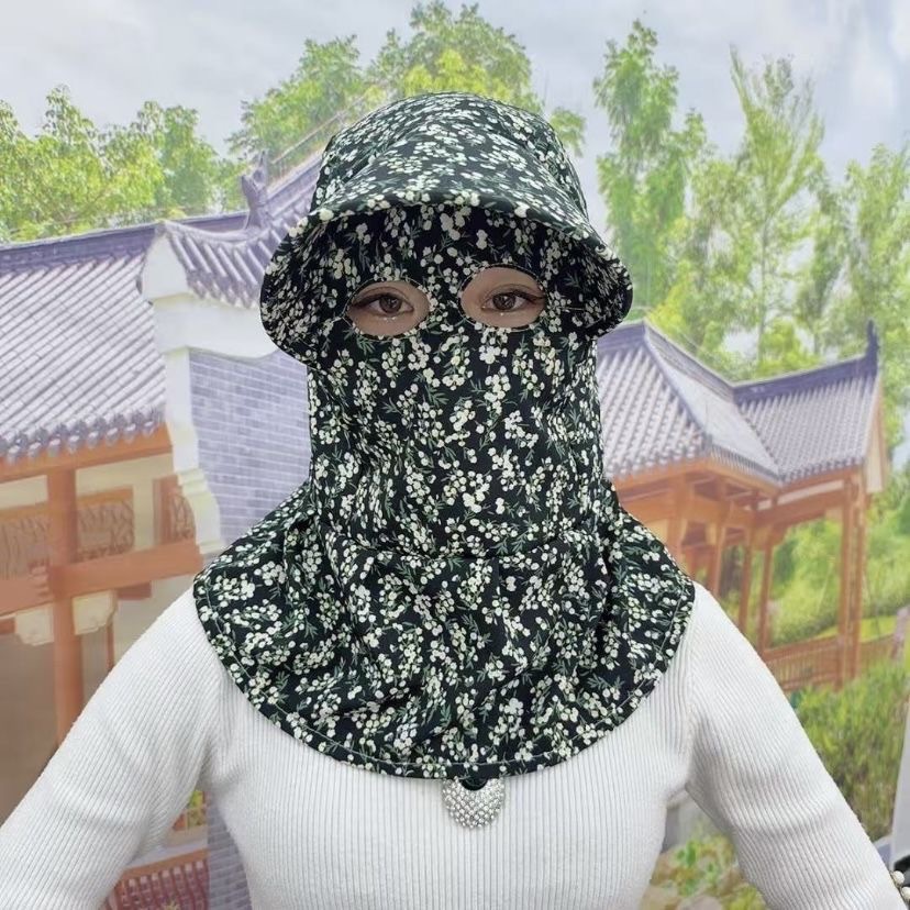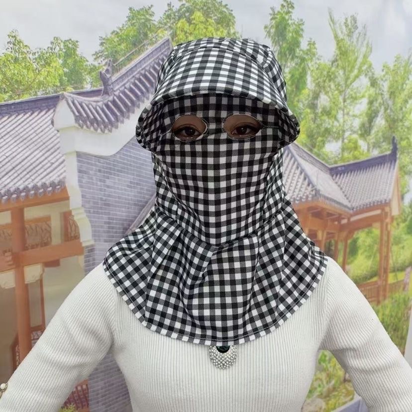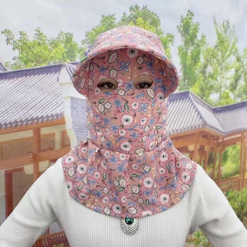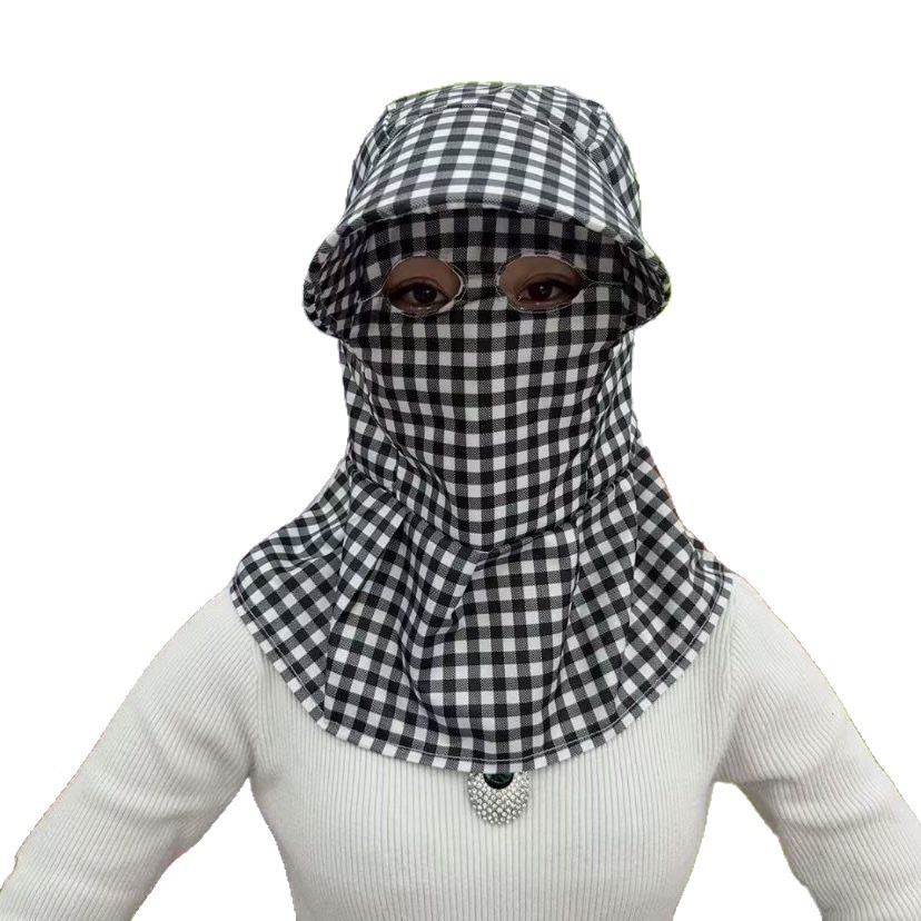 新款蒙面帽透气猫眼披肩护颈帽单层防晒户外采茶遮阳护全脸防尘帽