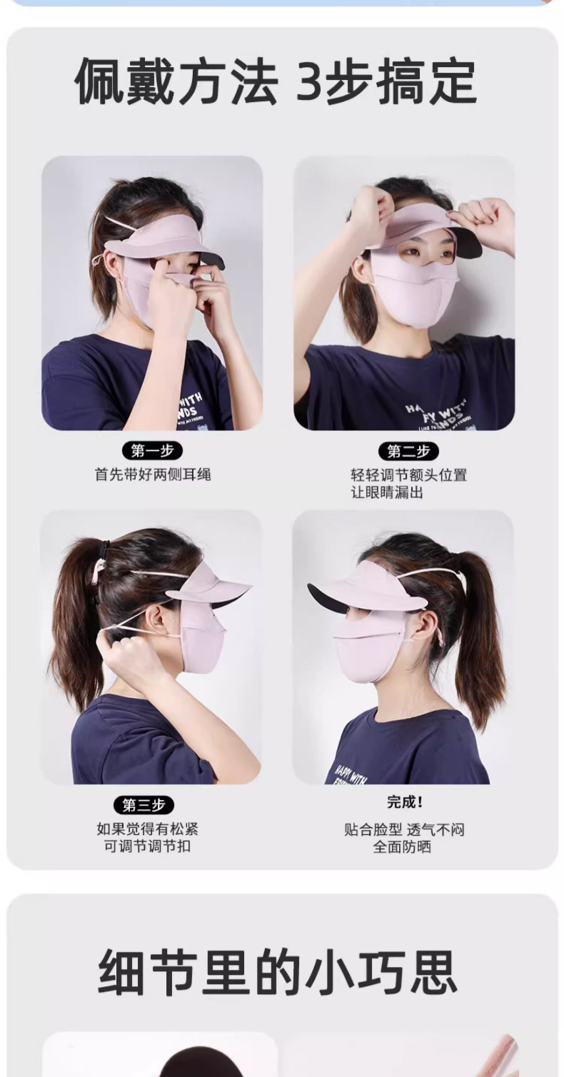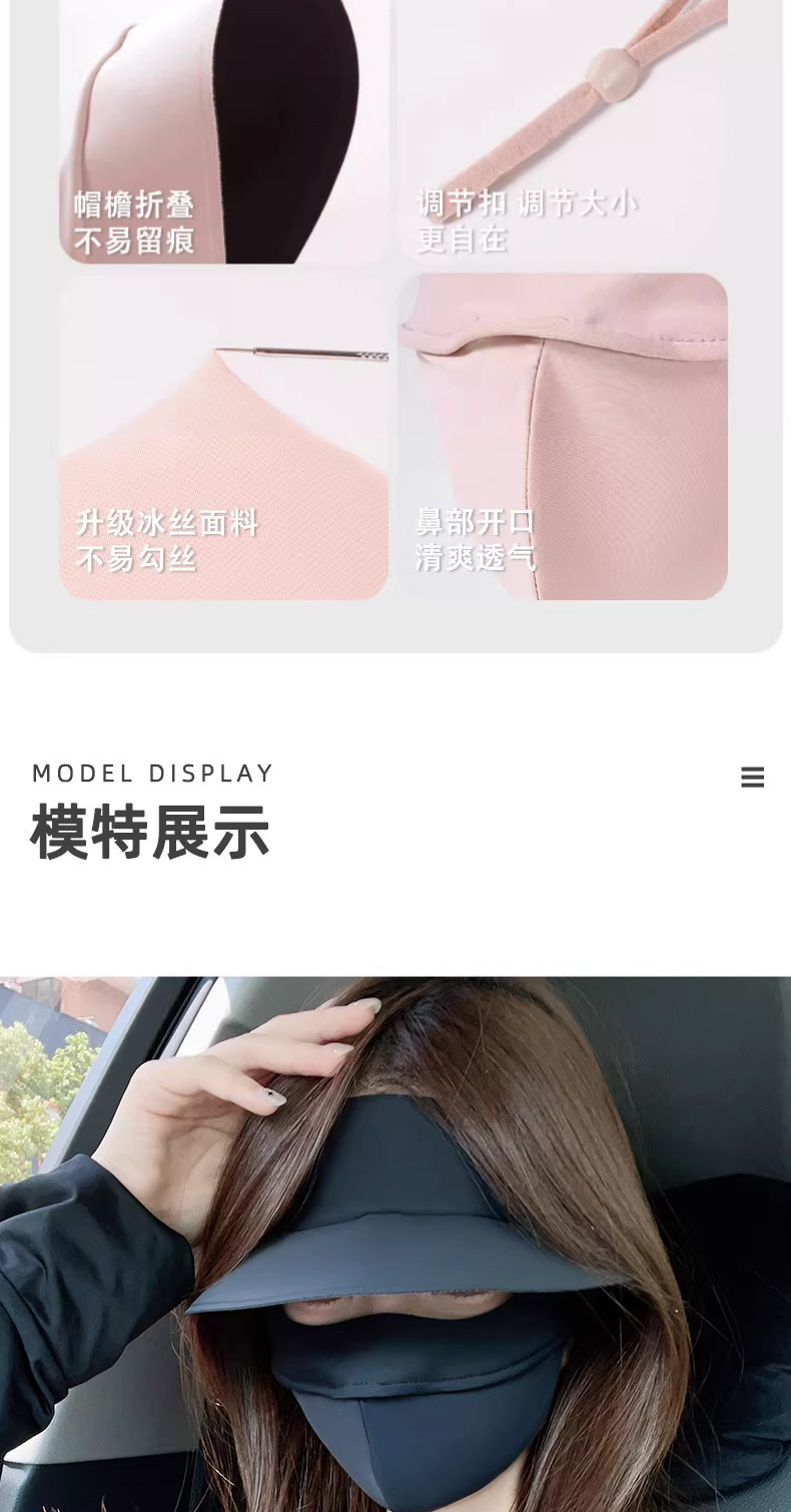 夏季开车专用防晒面罩防紫外线冰丝透气大帽檐遮阳全脸脸基尼