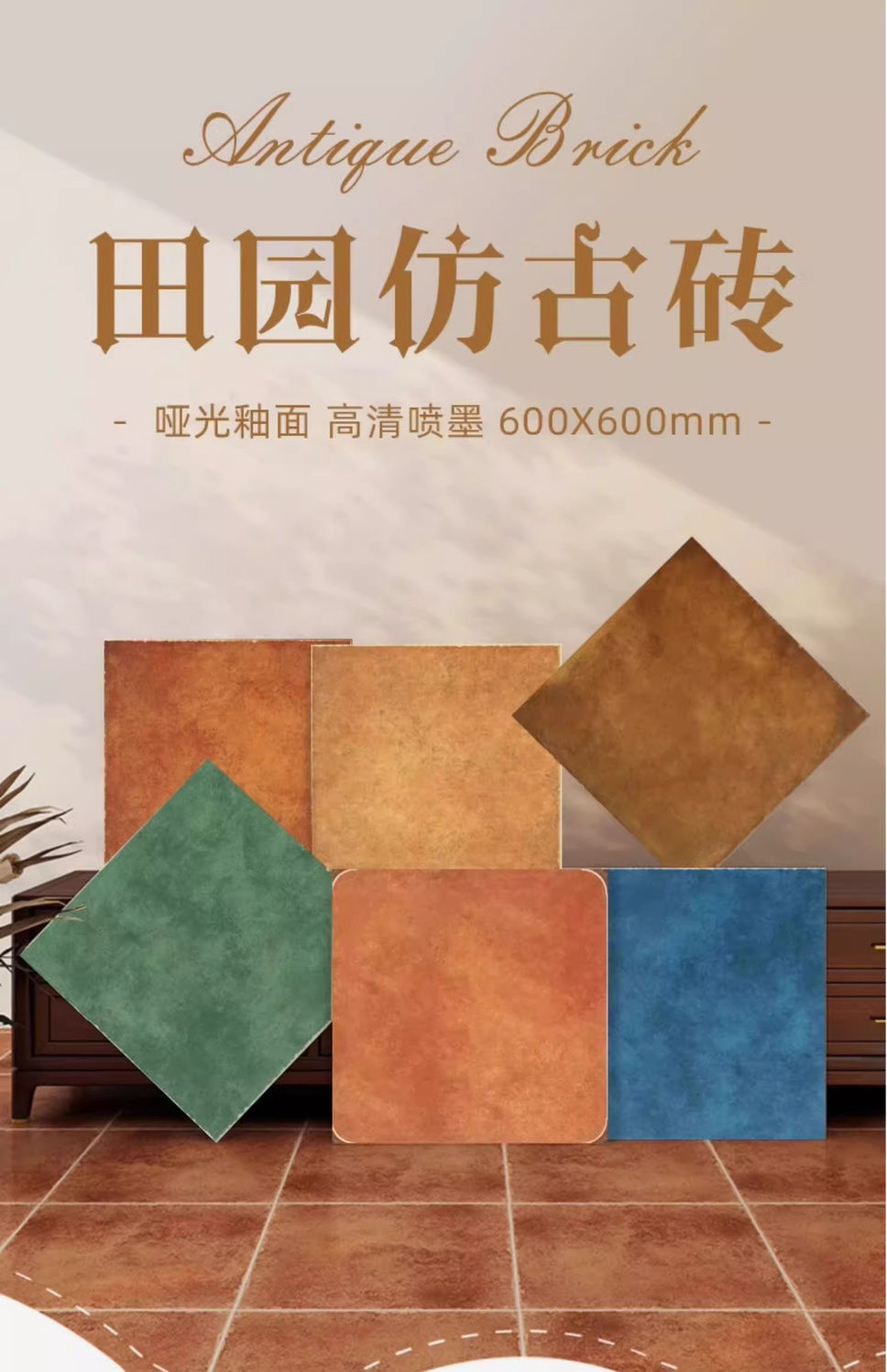美式复古田园风地砖600x600户外阳台瓷砖客厅厨房仿古砖跨境批发