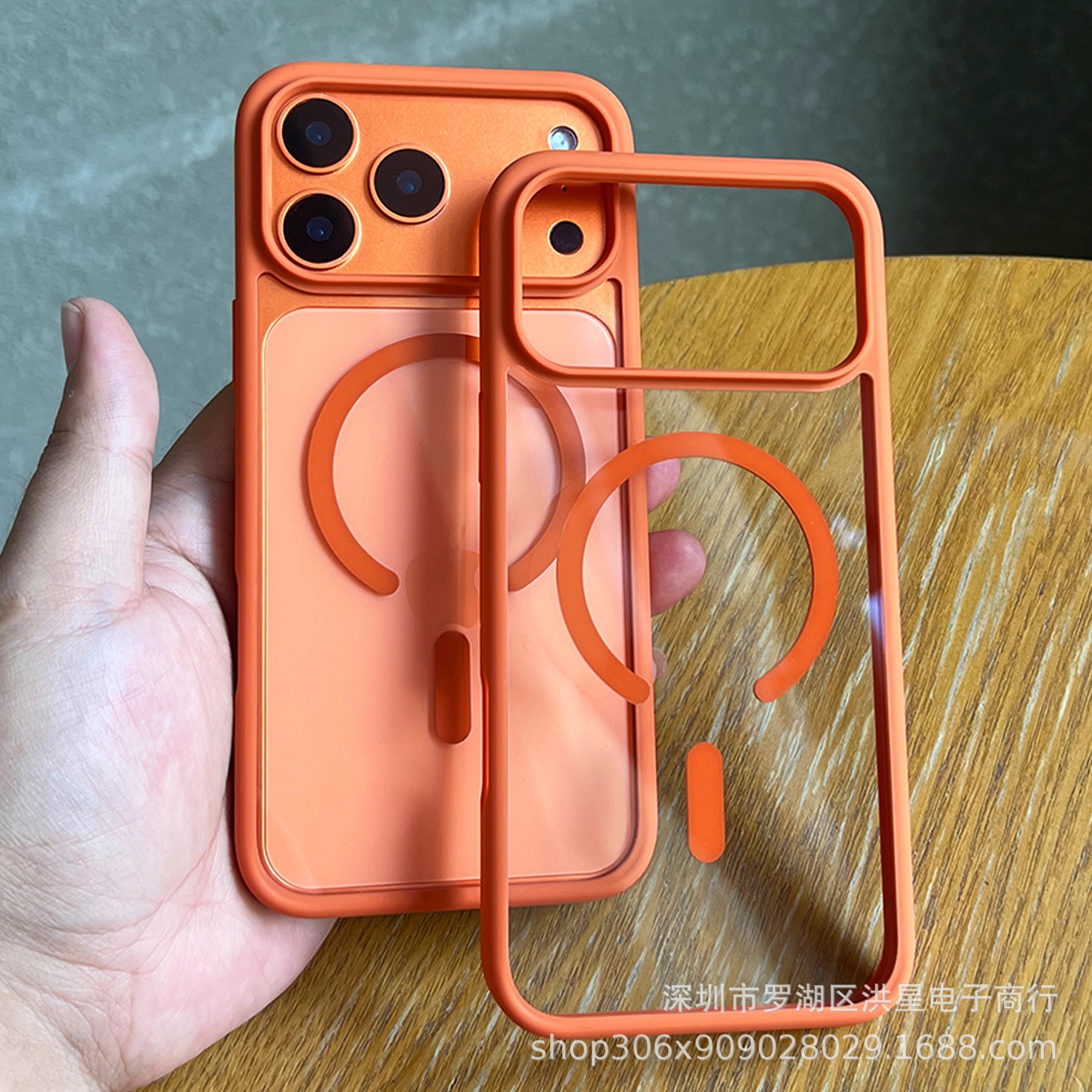 适用iPhone17磁吸透明手机壳苹果16proMax橙色马卡龙15防摔保护套