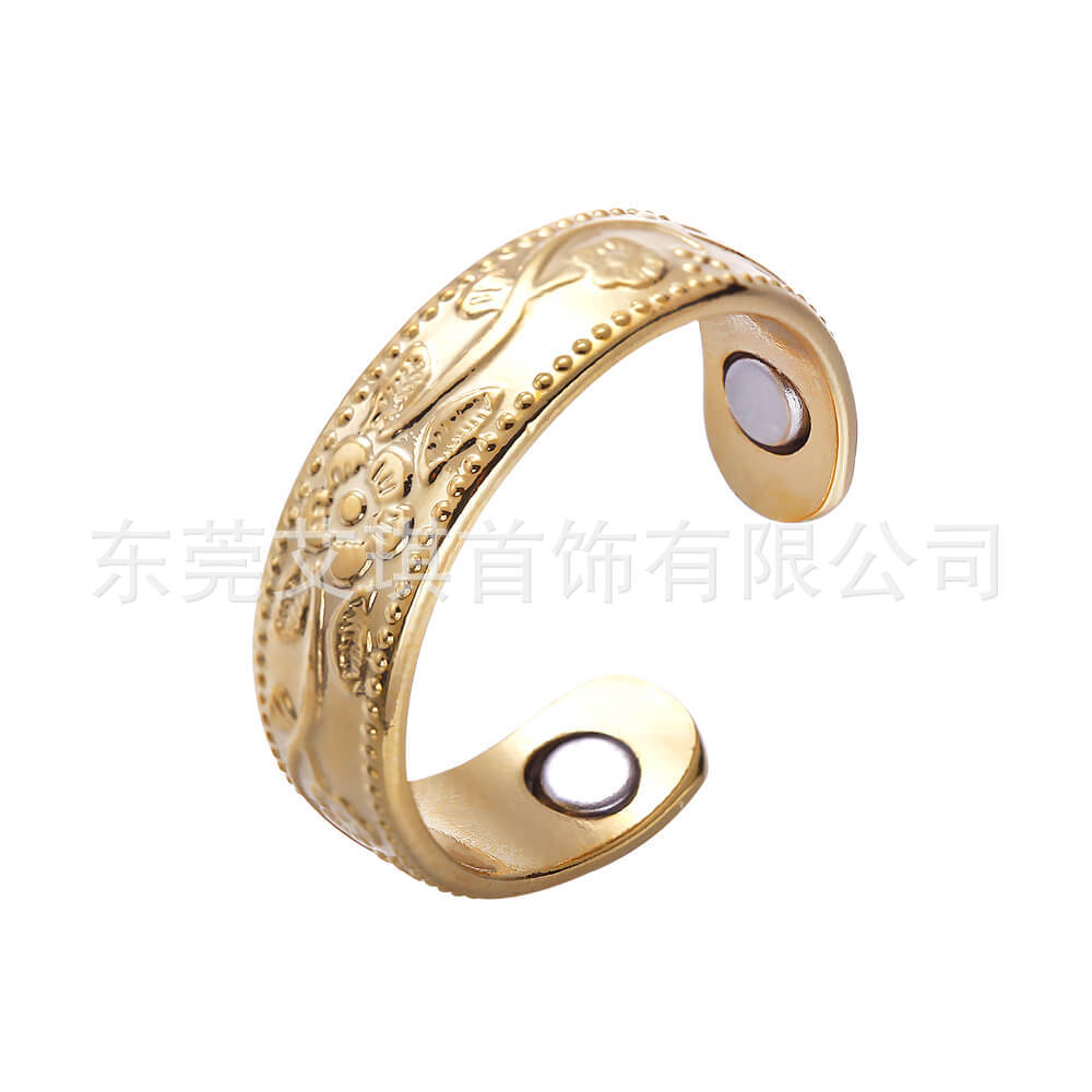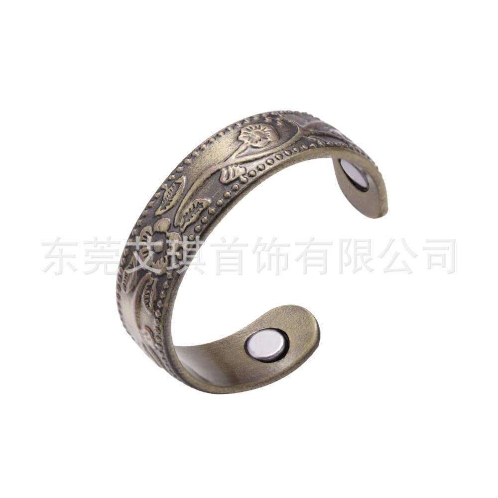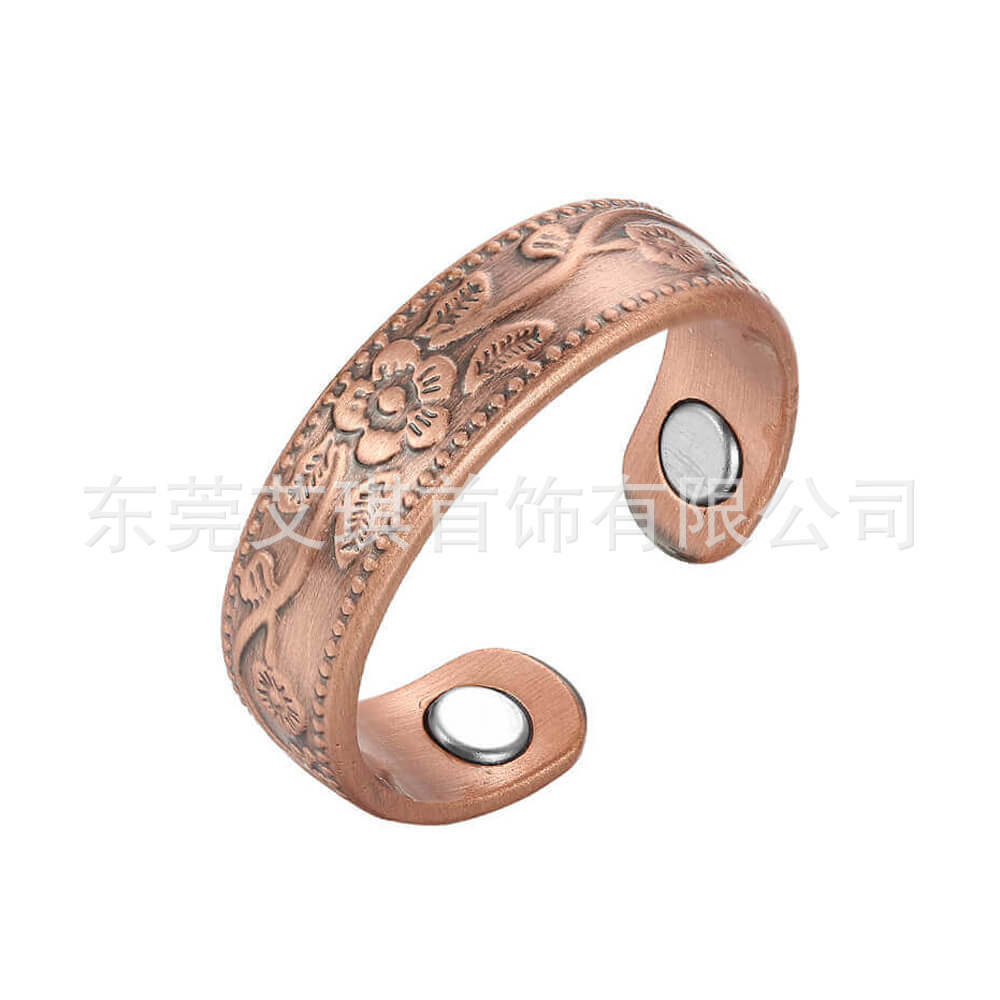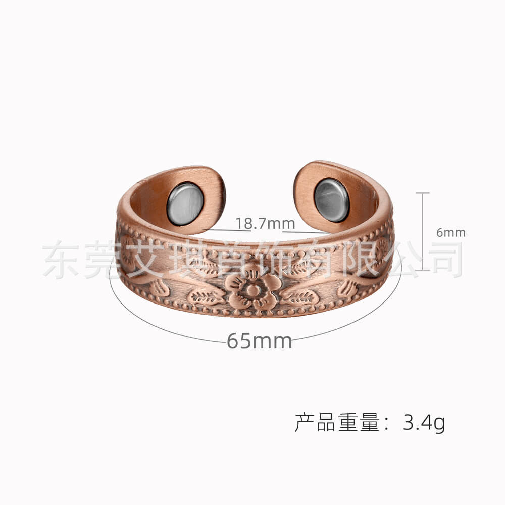 红铜戒指批发欧美复古纯铜磁性指环简约梅花款磁石指环戒指饰品