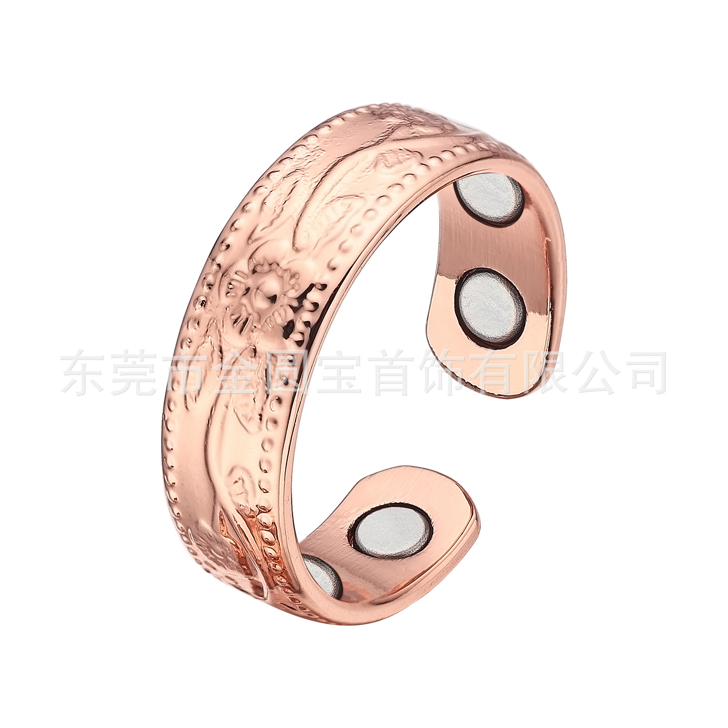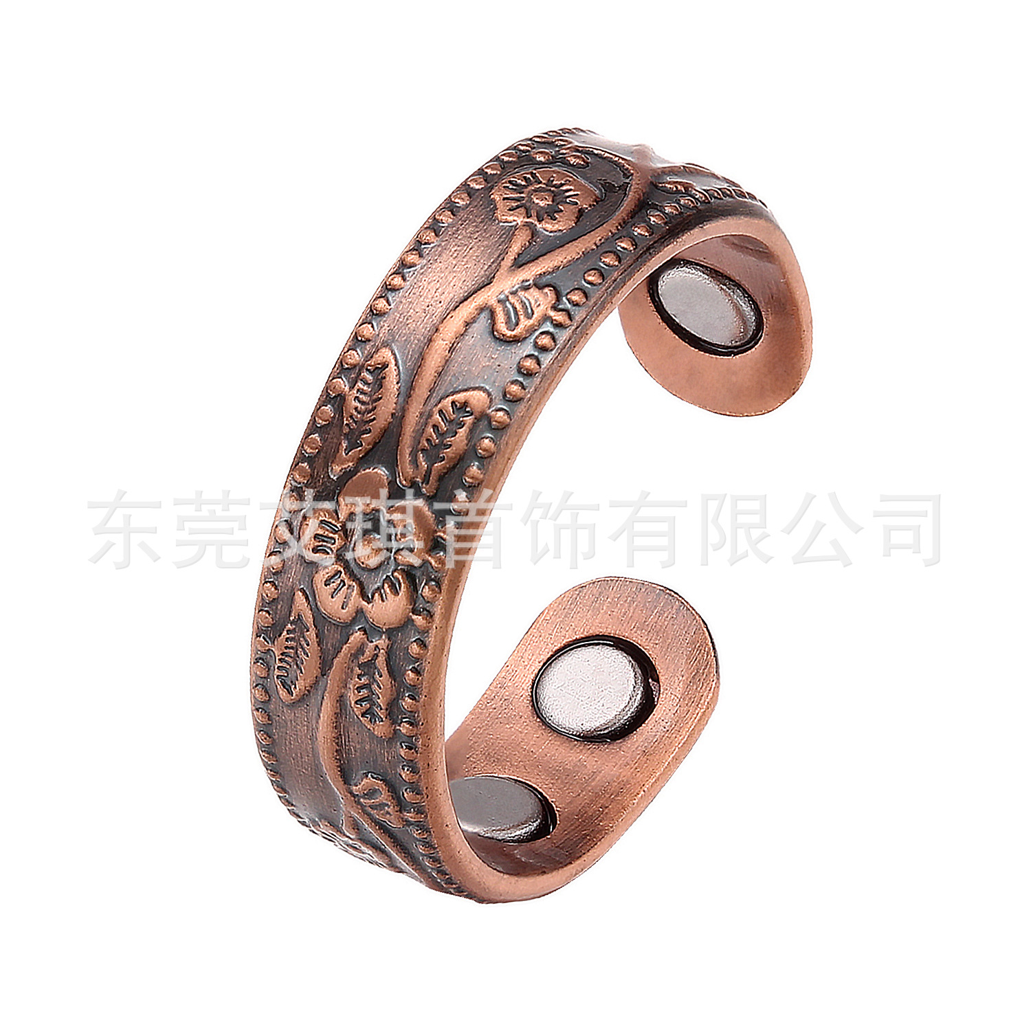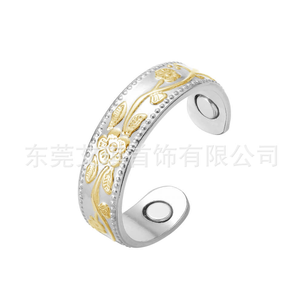 红铜戒指批发欧美复古纯铜磁性指环简约梅花款磁石指环戒指饰品