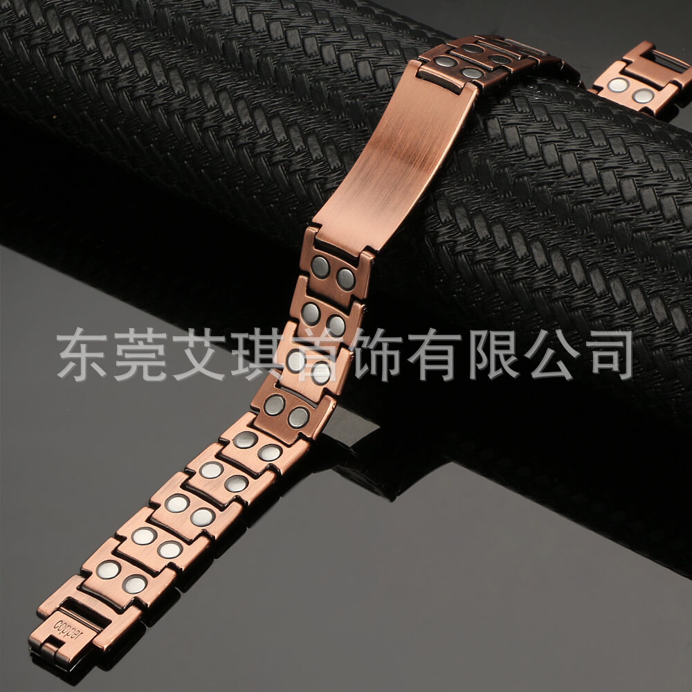 现货批发纯铜手链男士龟背双排磁石手链简约磁性能量手环红铜手链