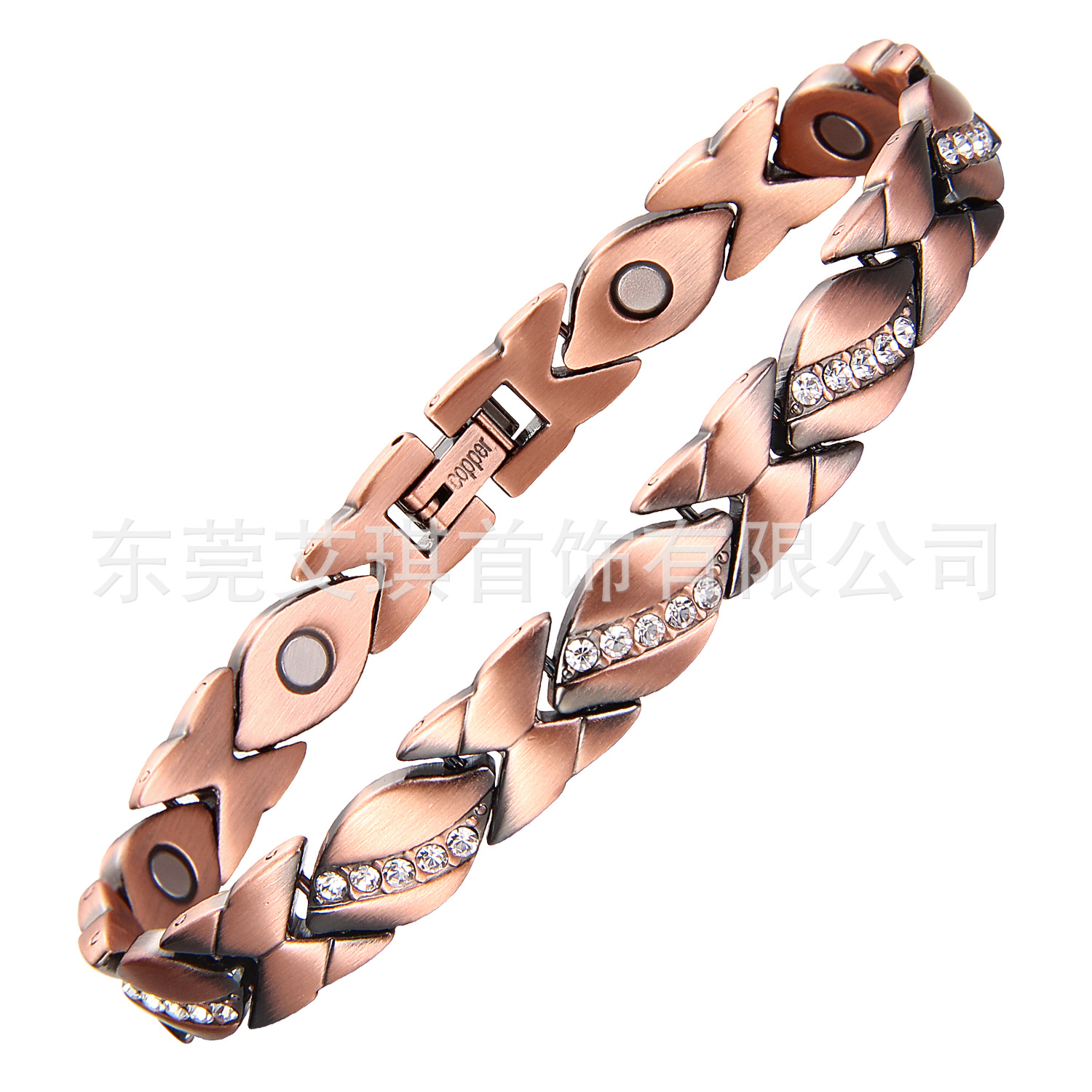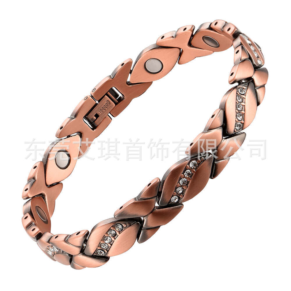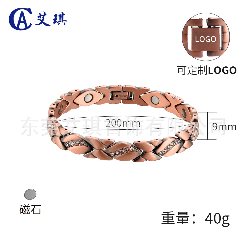 欧美热销跨境磁石红铜手链超闪锆石红铜手链交叉纹磁石红铜手链