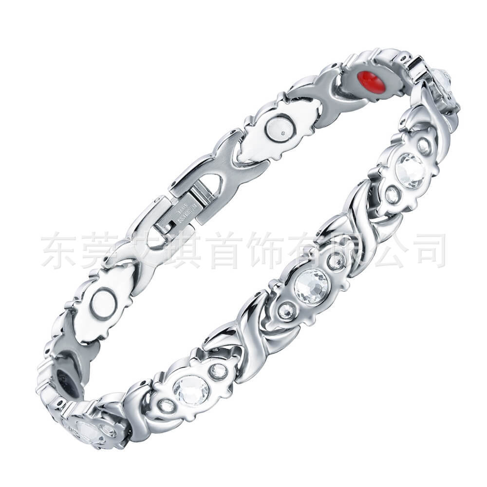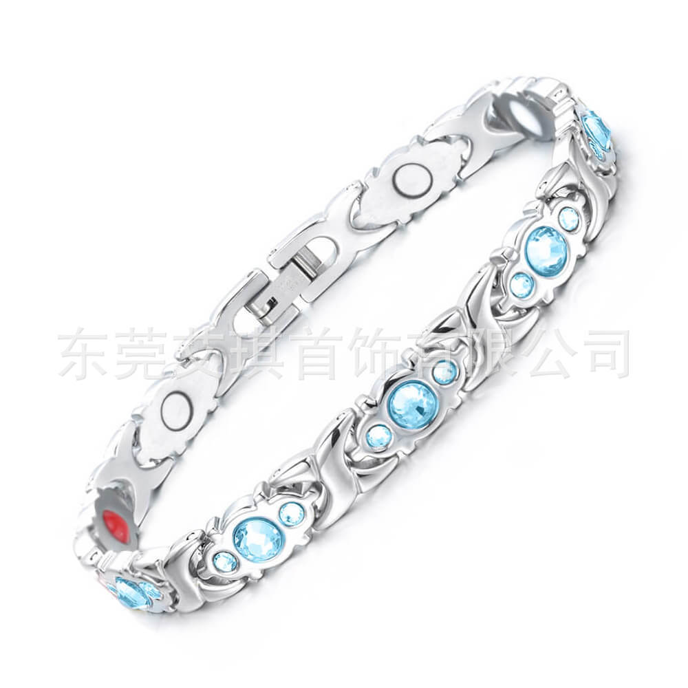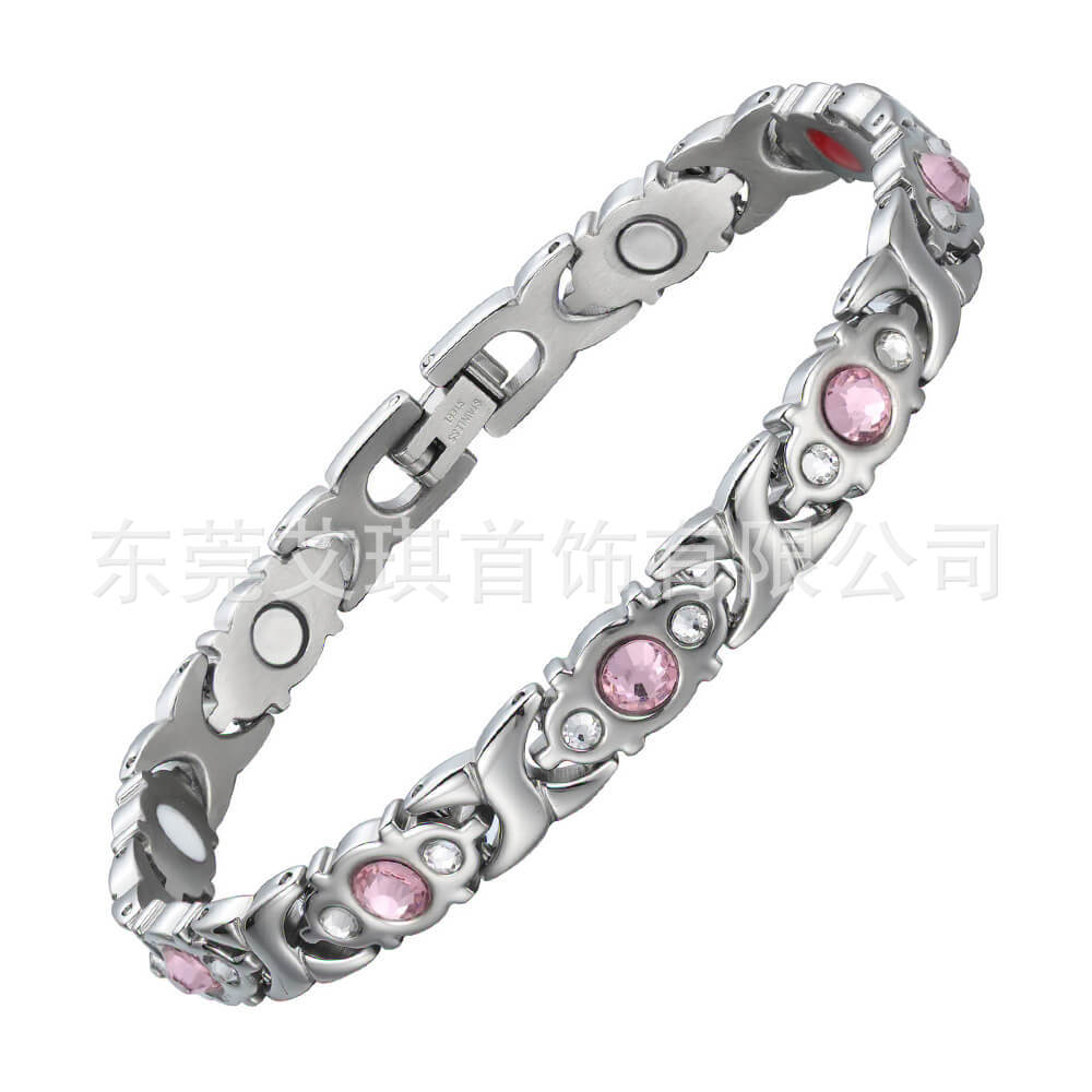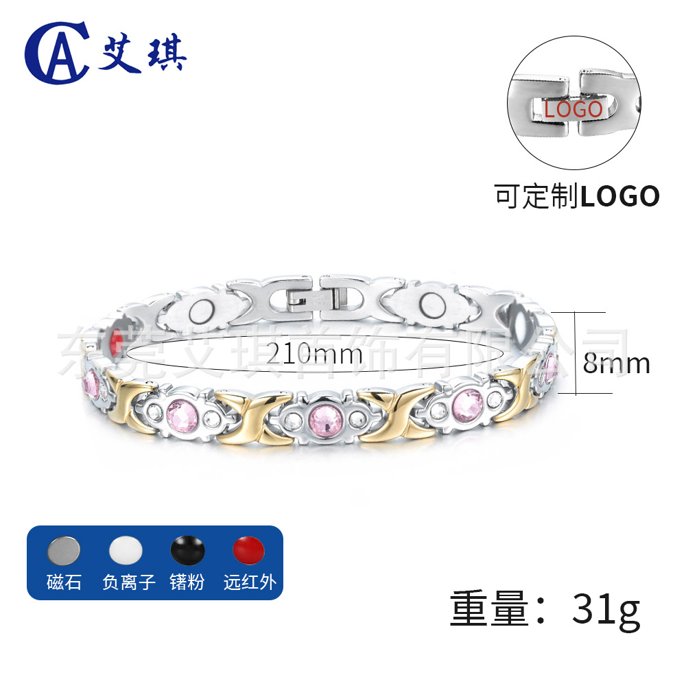 现货批发钛钢手链小众设计水晶不锈钢手链女超闪水晶磁石钛钢手链