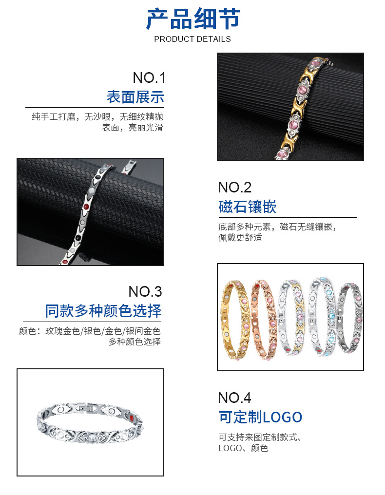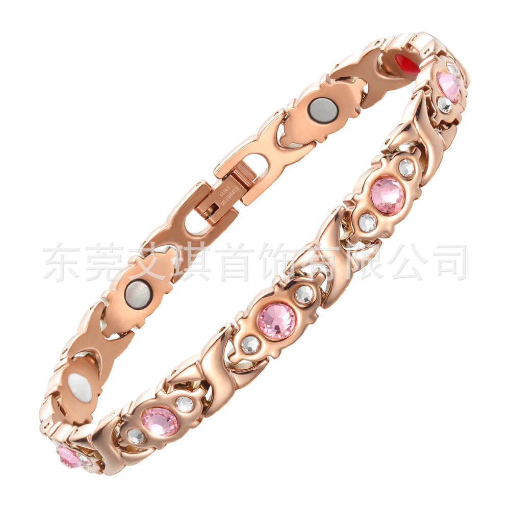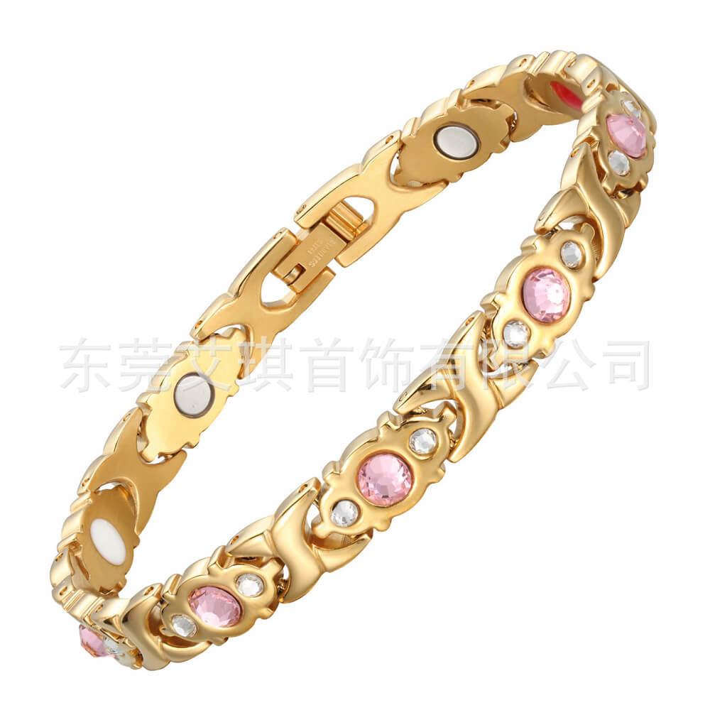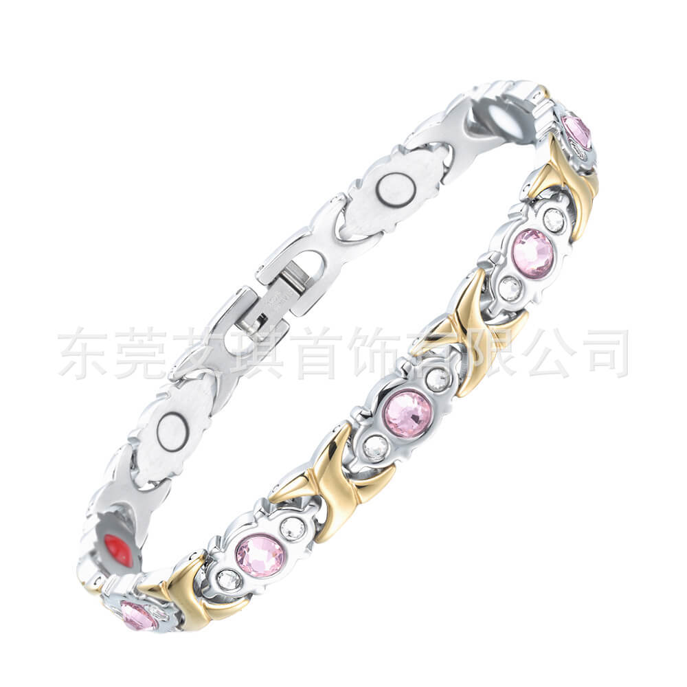 现货批发钛钢手链小众设计水晶不锈钢手链女超闪水晶磁石钛钢手链