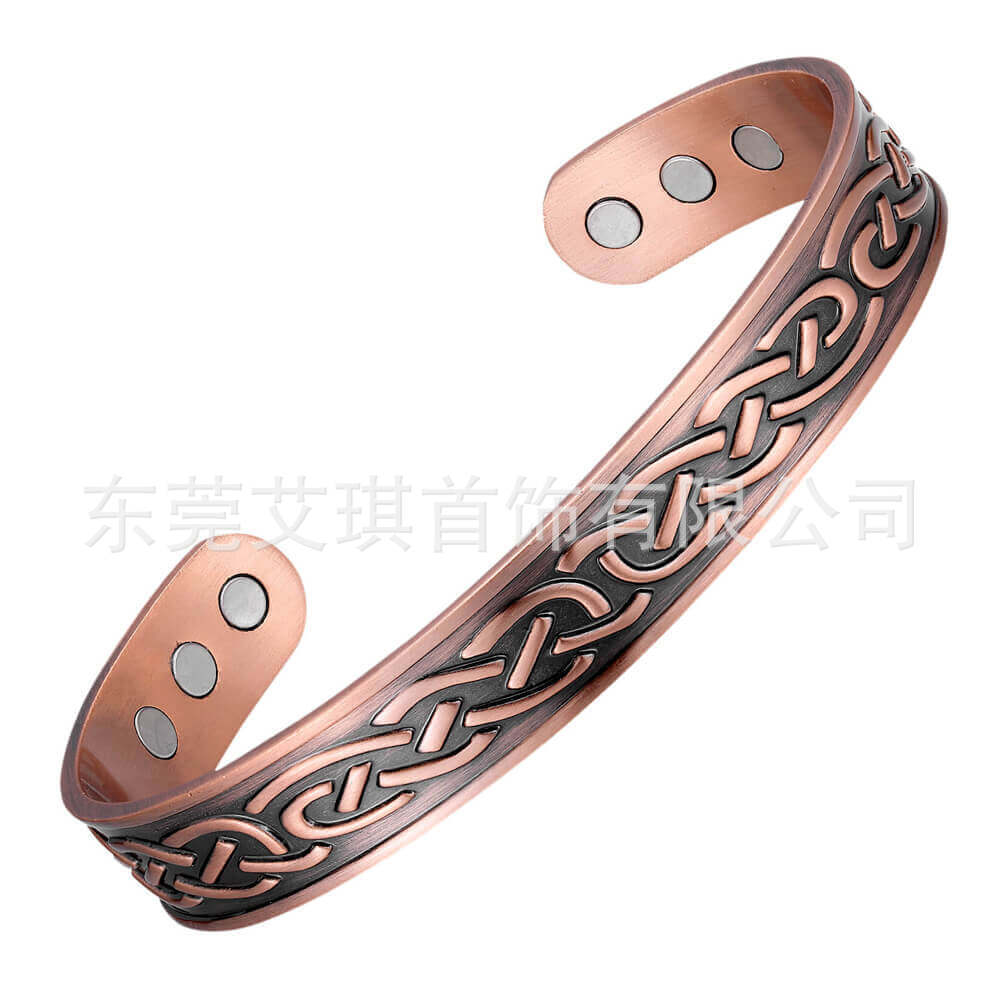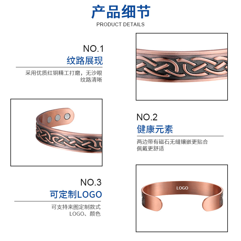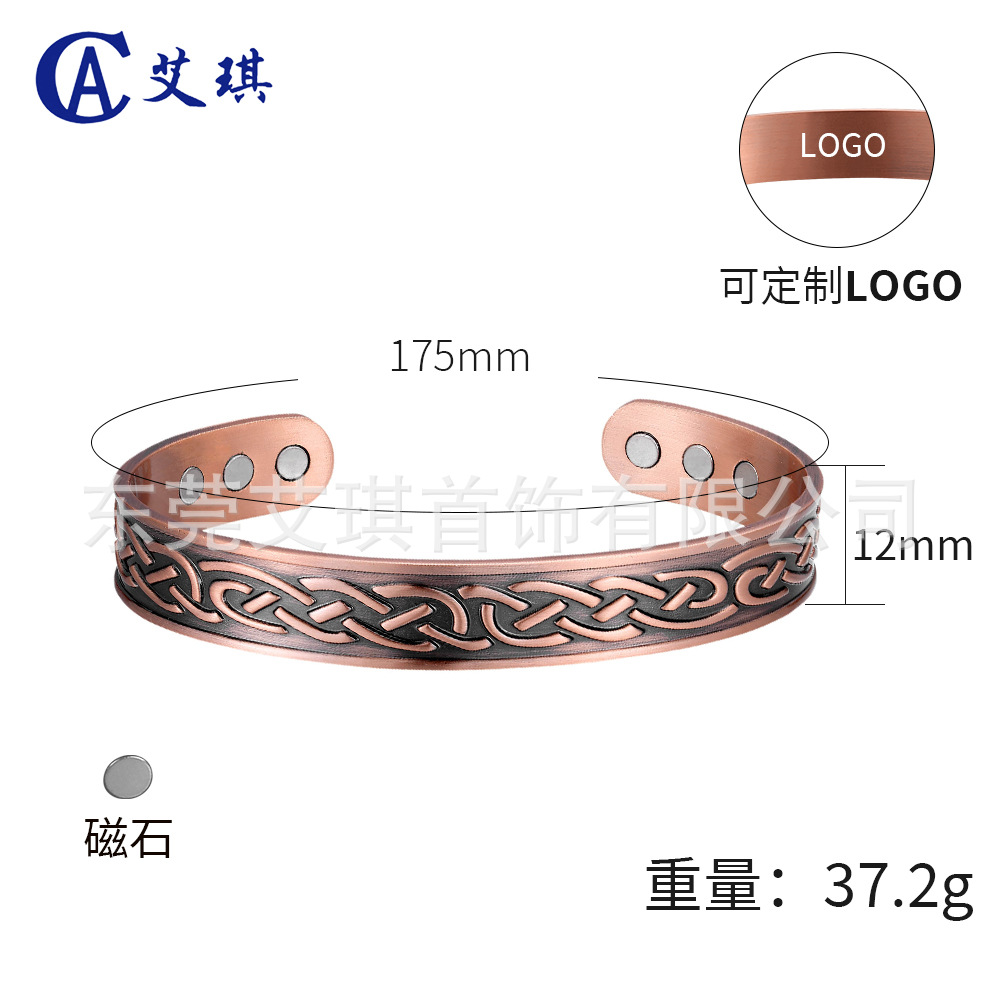 复古时尚磁性红铜手镯小众设计磁石红铜手镯简约线条磁性纯铜手镯