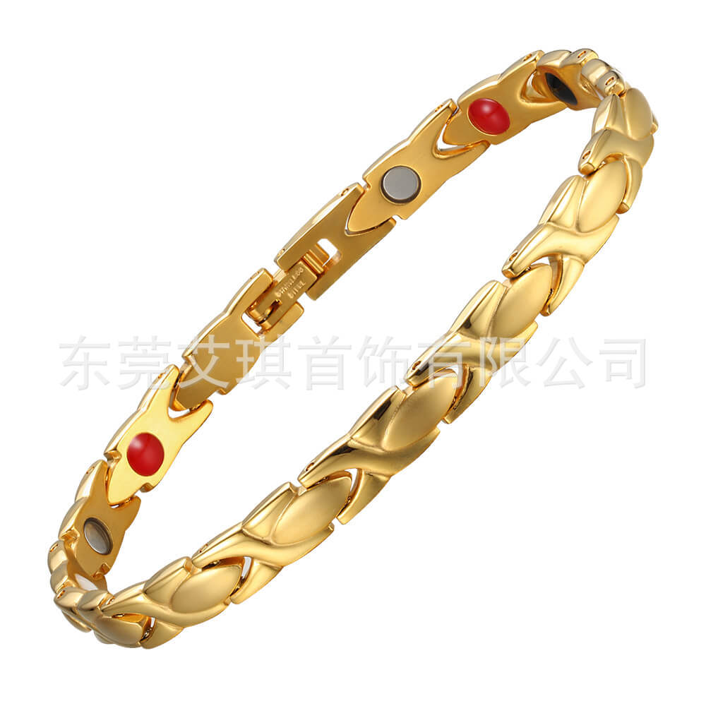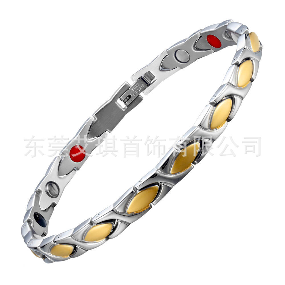 亚马逊热销钛钢手链简约时尚磁性能量不锈钢手链女负离子钛钢手链