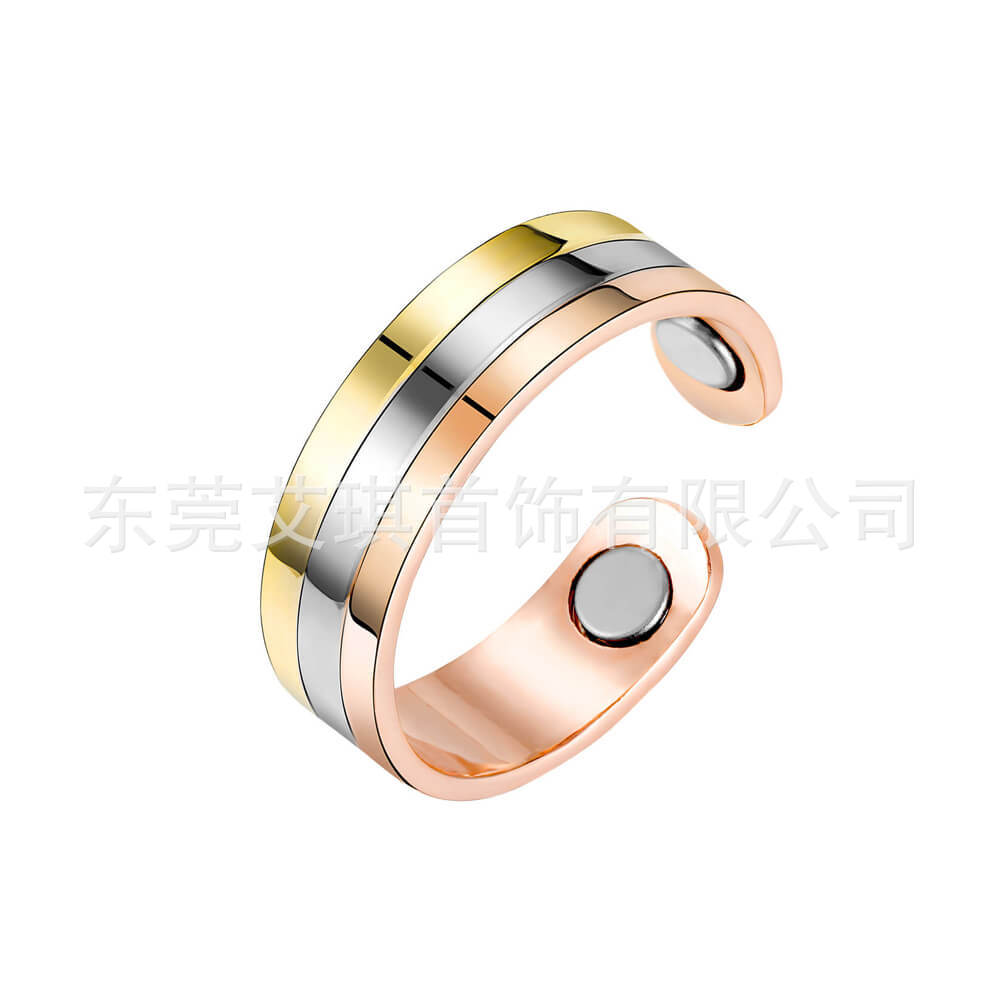 外贸热销磁性红铜手镯时尚设计三色纯红铜手链女士条纹纯红铜手镯