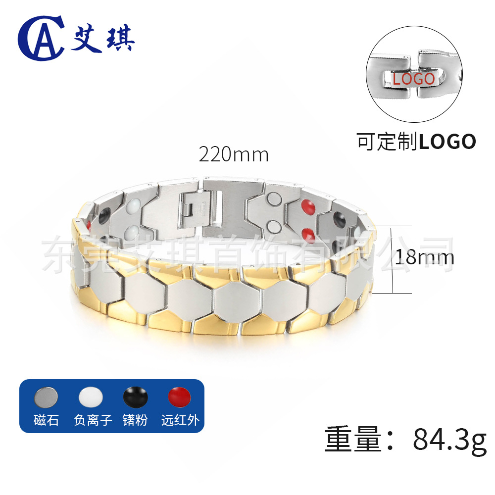 亚马逊热销不锈钢手链男足球设计磁性不锈钢手链磁石能量钛钢手链