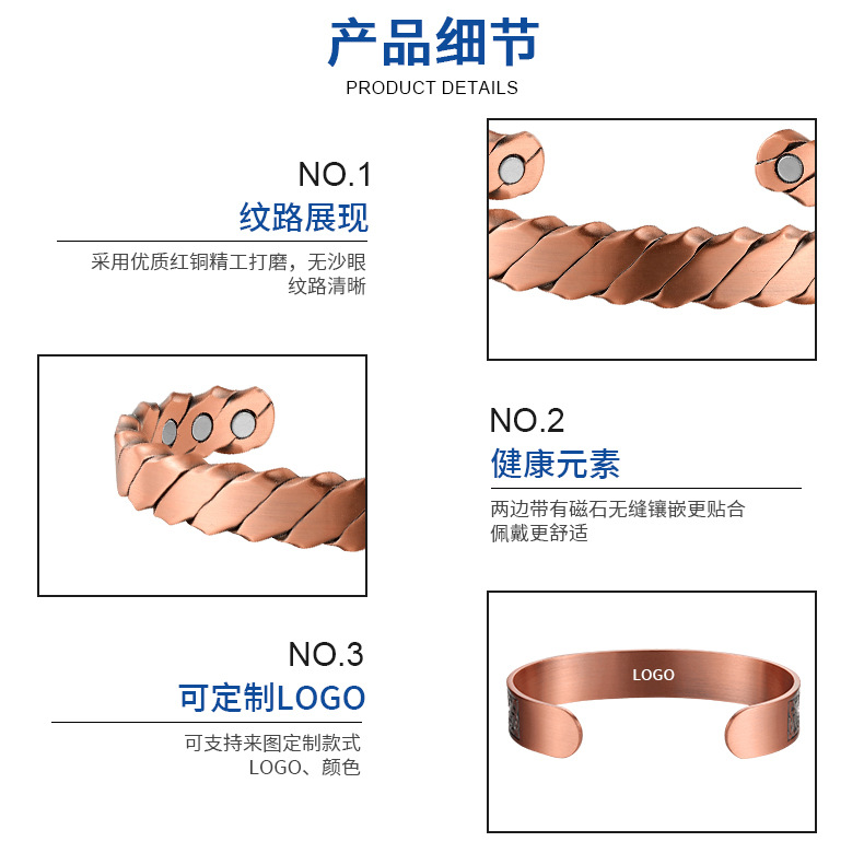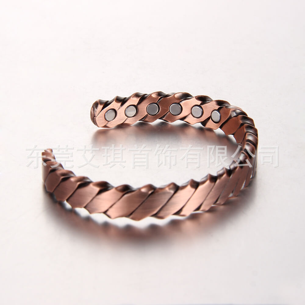 现货批发纯铜手镯复古时尚扭线磁石红铜手镯简约磁性线条红铜手镯