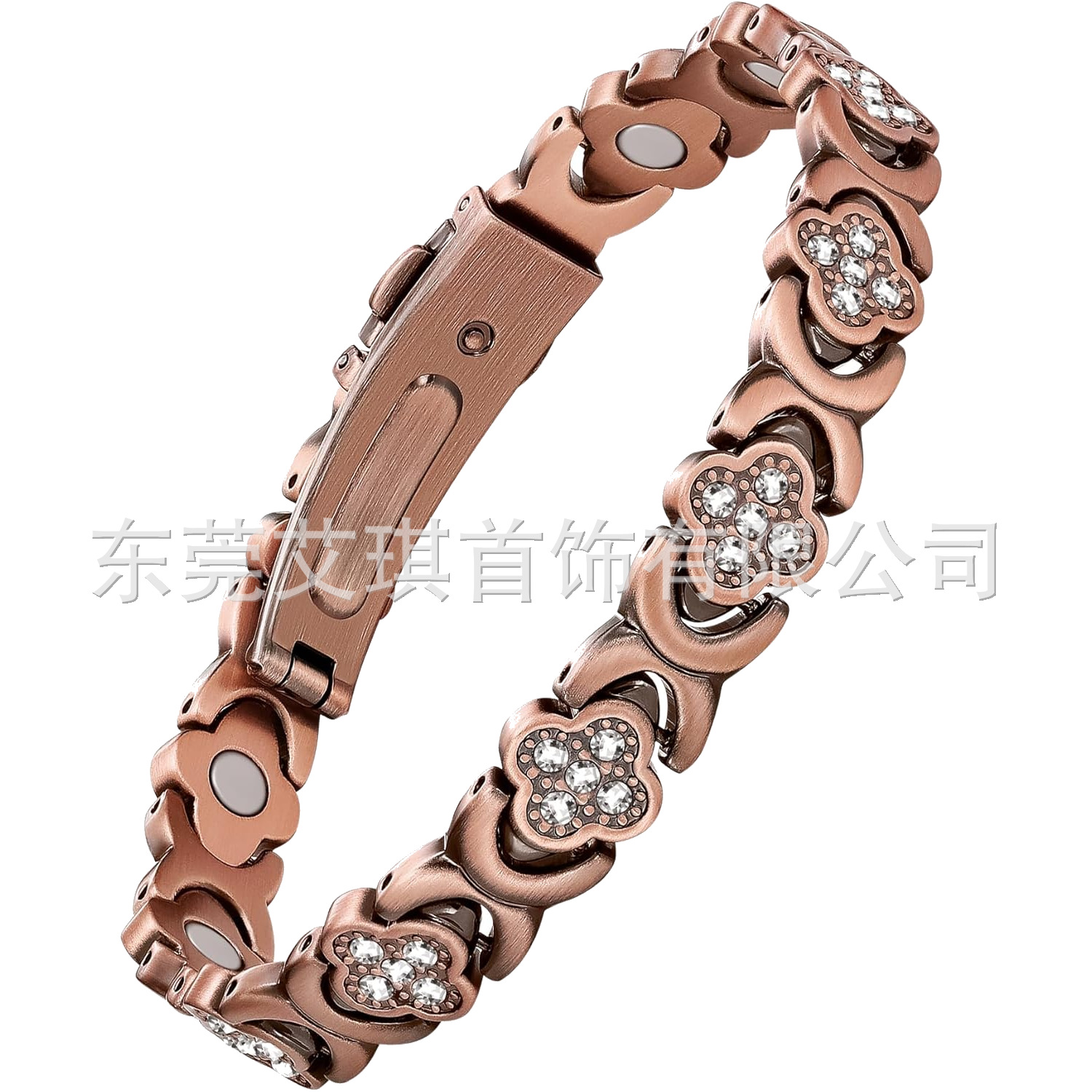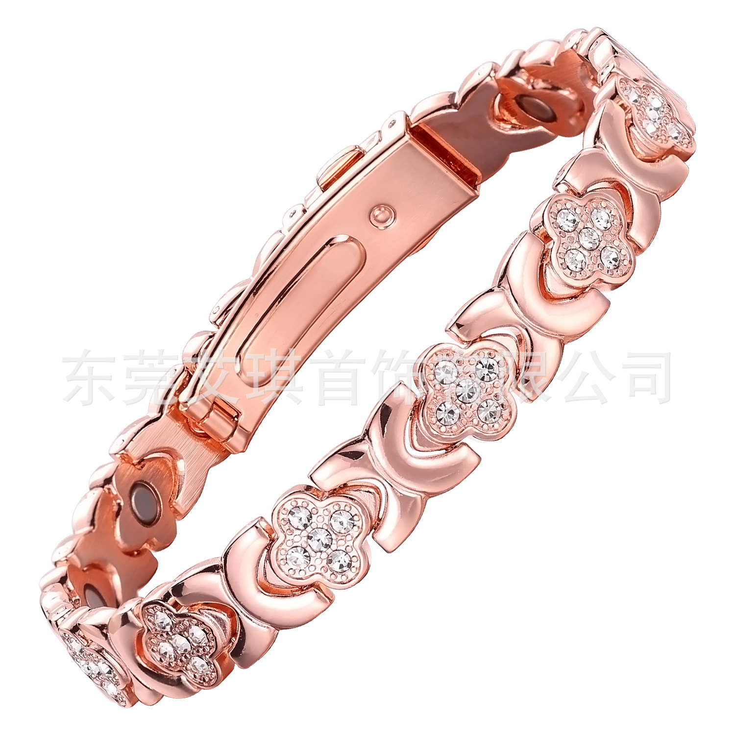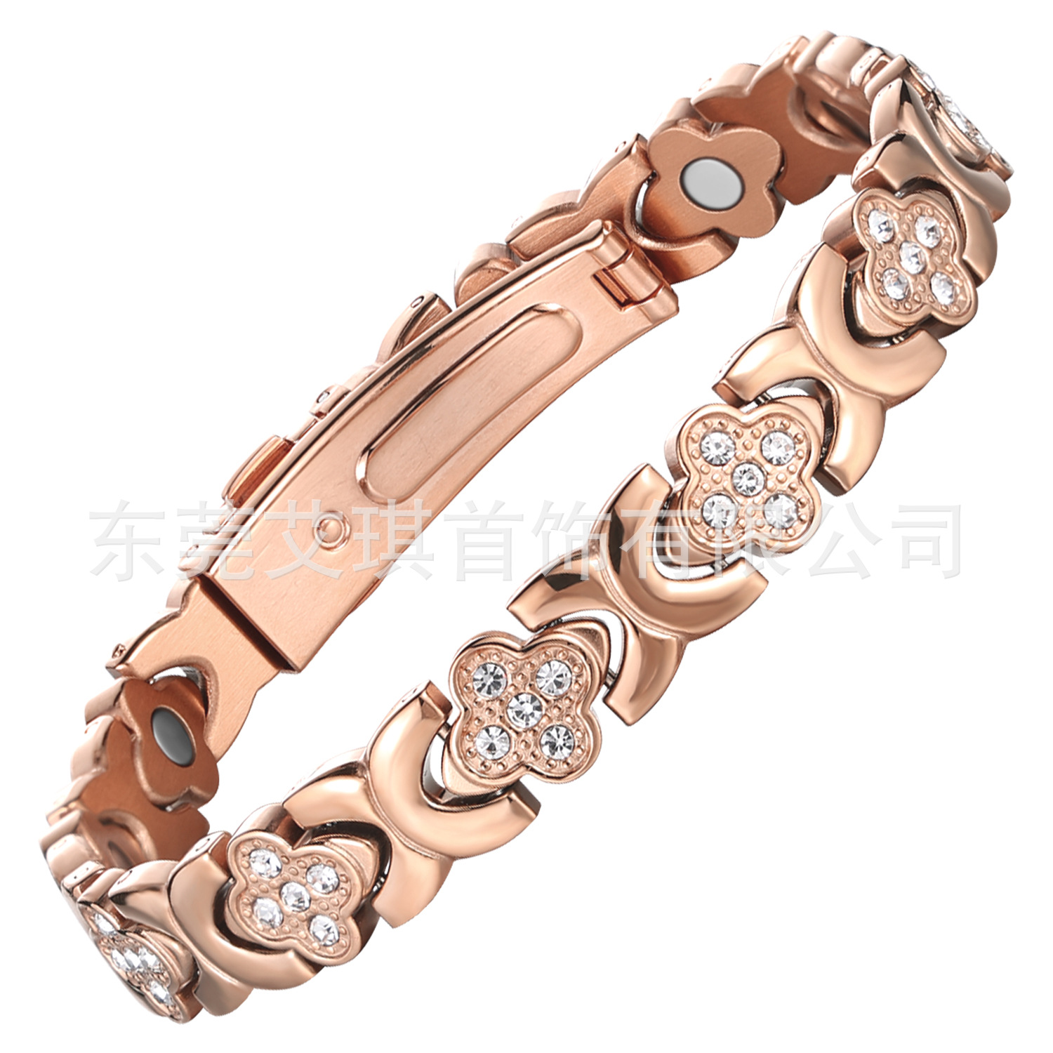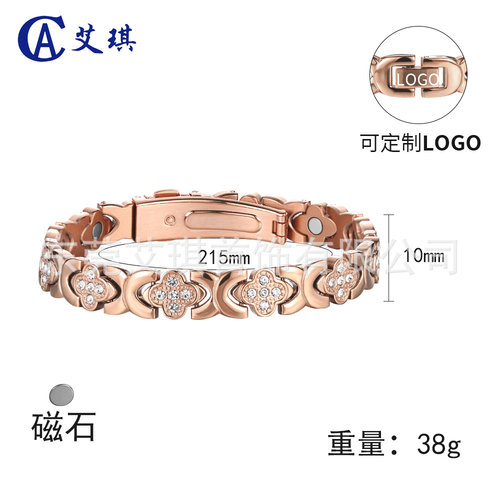 欧美跨境爆款磁石手链时尚轻奢幸运草不锈钢手链镶钻单排磁石手链