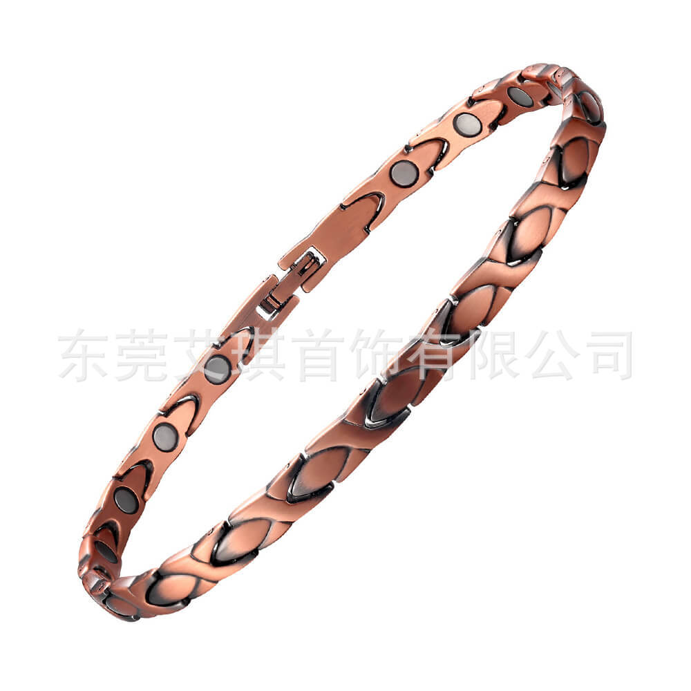 现货批发纯红铜手链复古时尚磁性纯铜手链女款磁石能量红铜手链