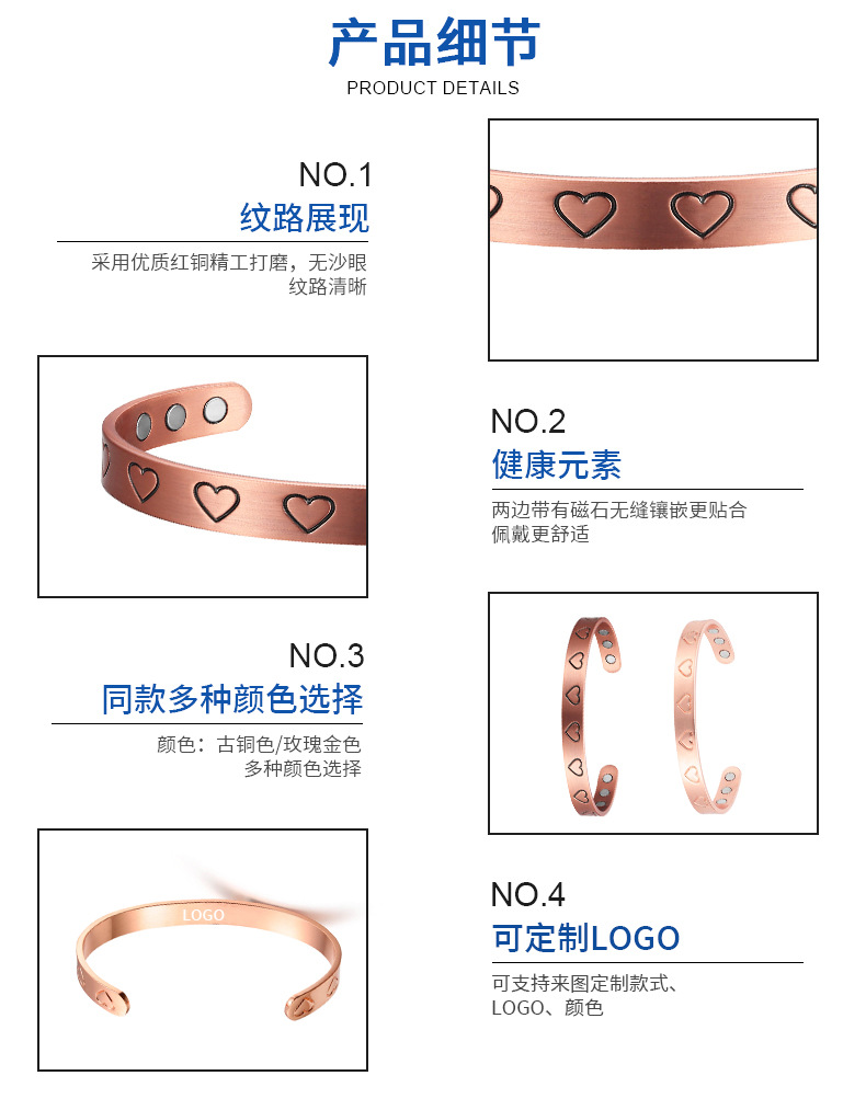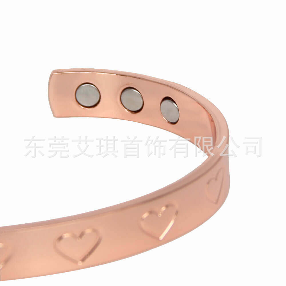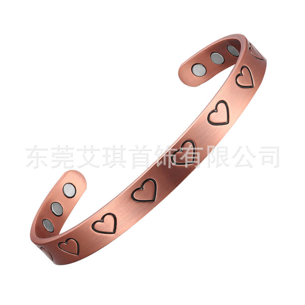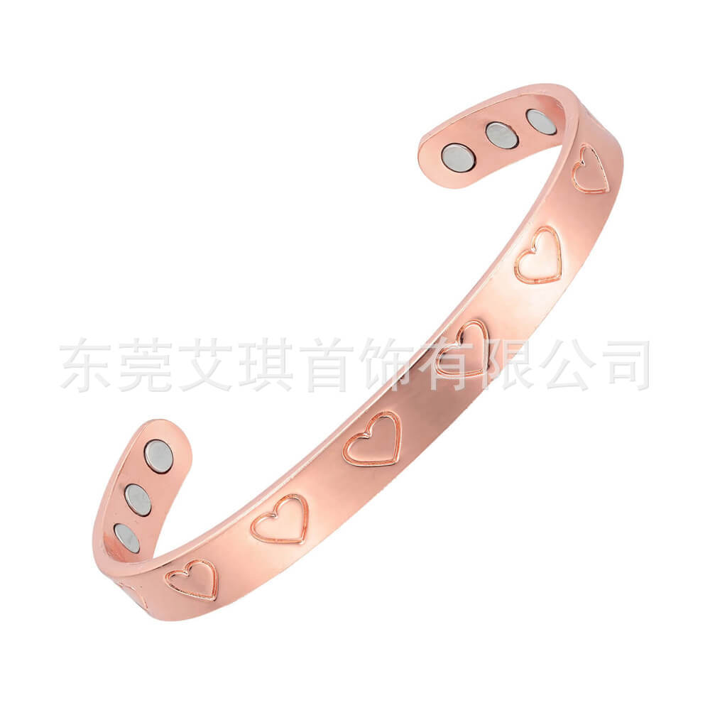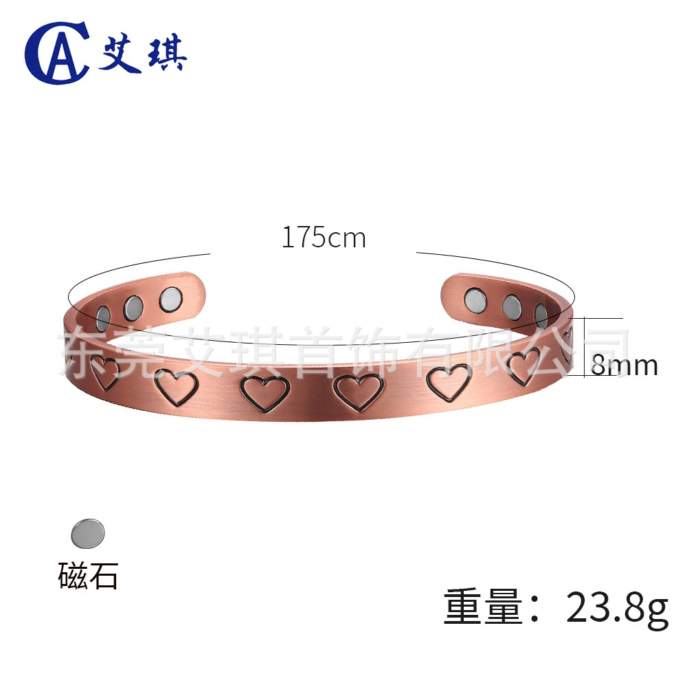 外贸热销纯红铜手镯简约复古红铜手镯女款爱心开口磁性能量铜手镯