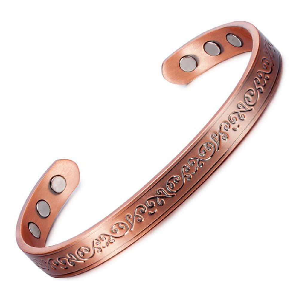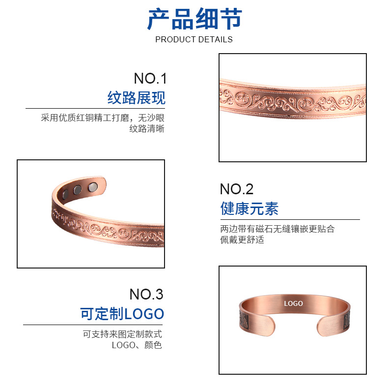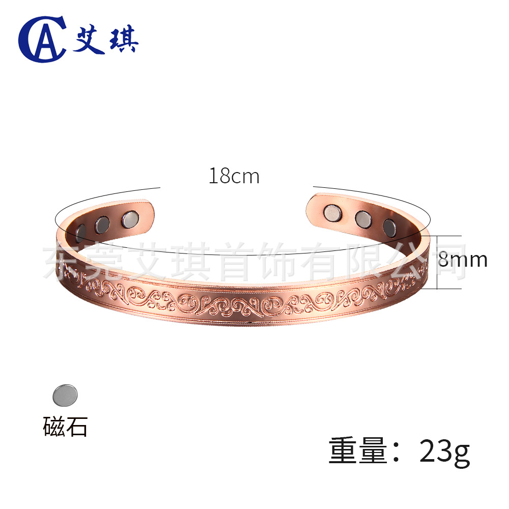 现货磁石纯铜手镯花纹款磁石纯铜手镯女开口磁性能量纯铜手镯批发