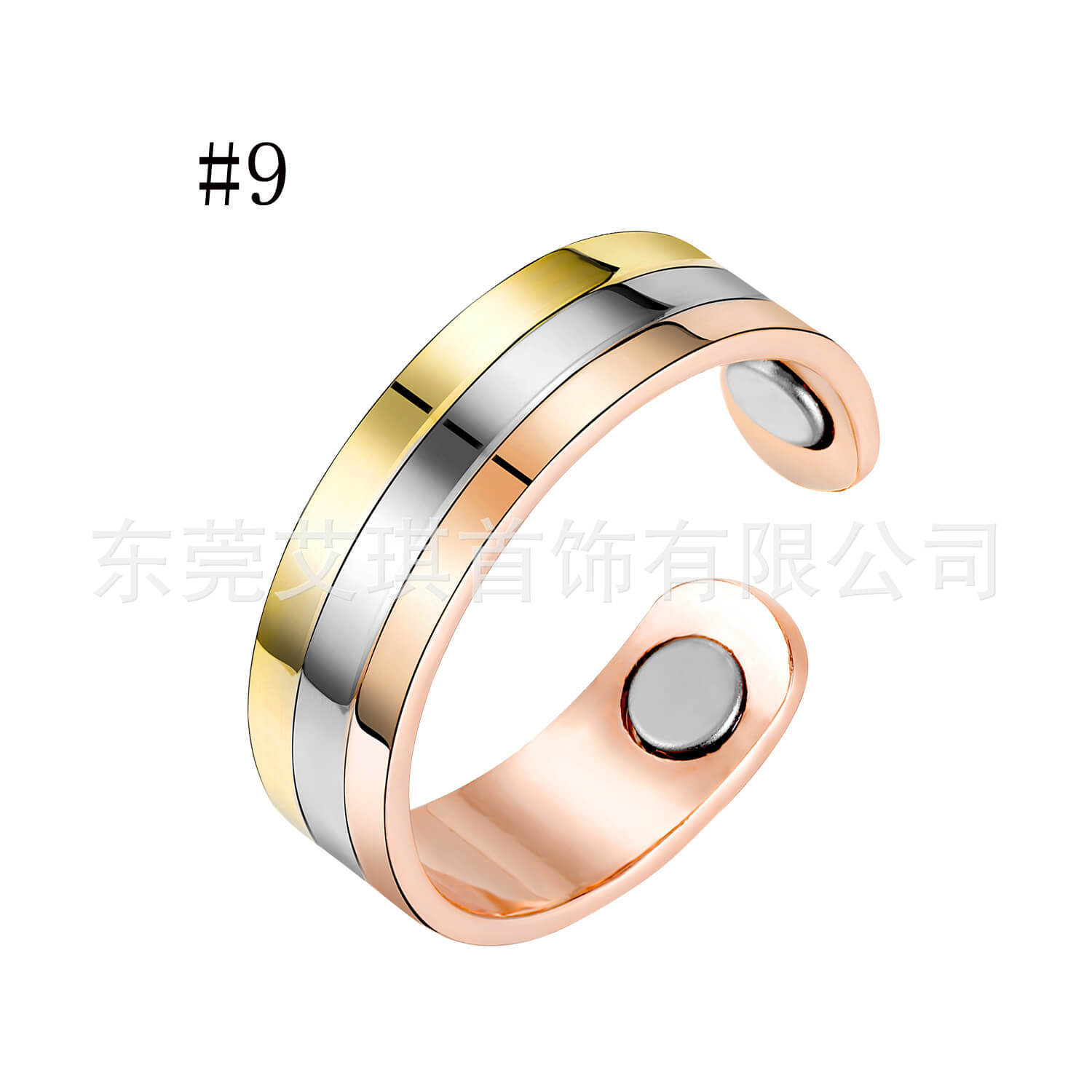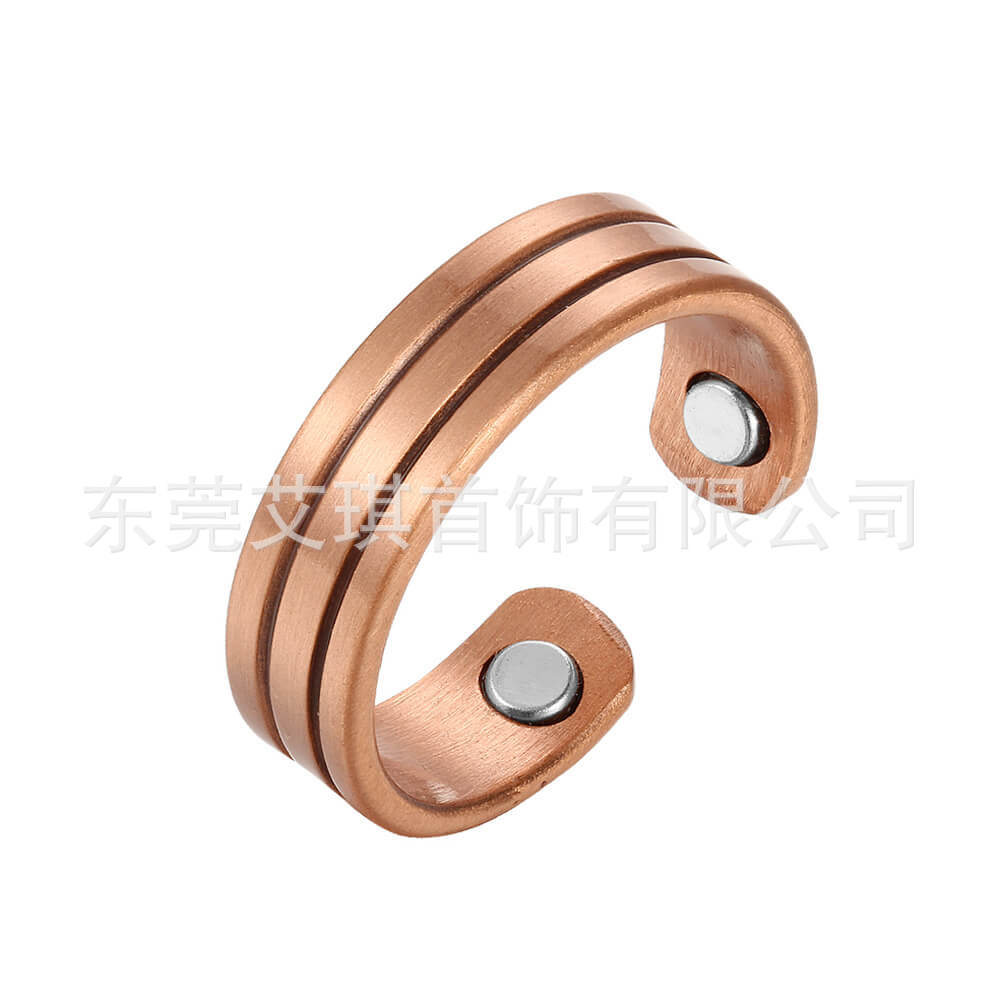 外贸热销磁石红铜戒指小众设计三色磁石红铜戒指开口磁性纯铜戒指
