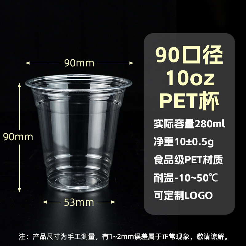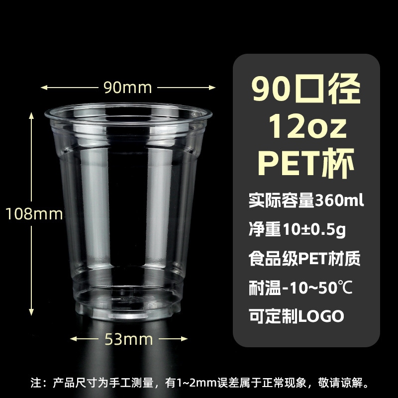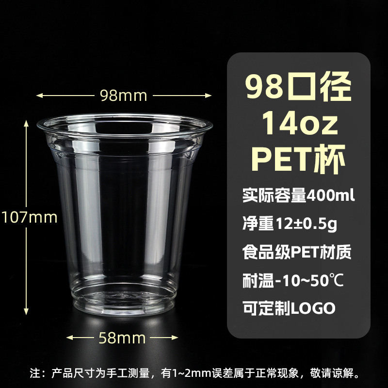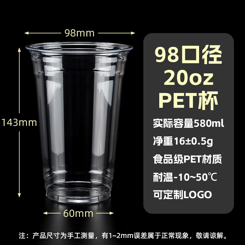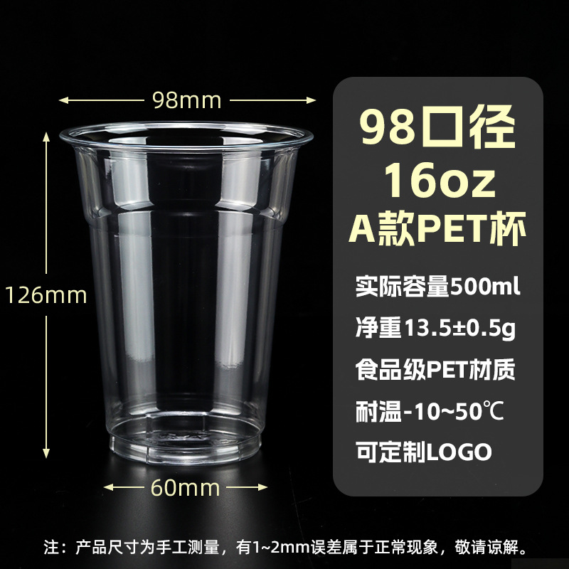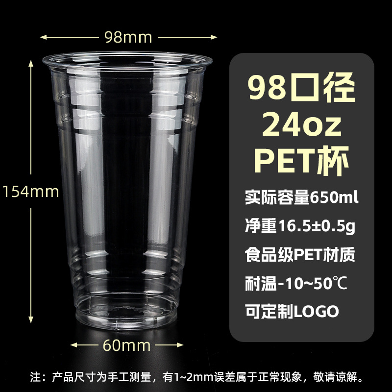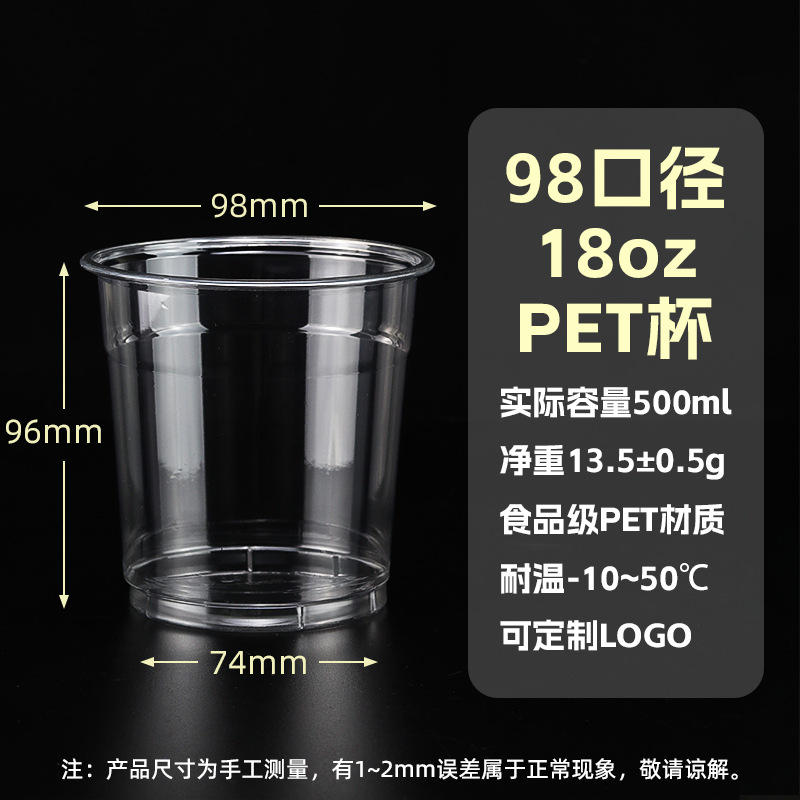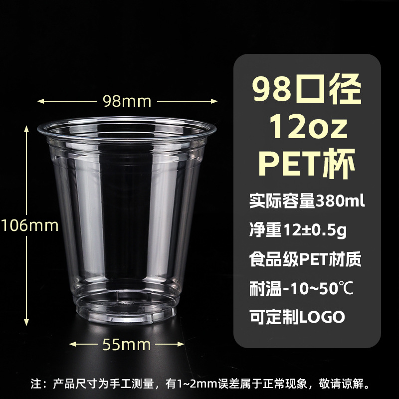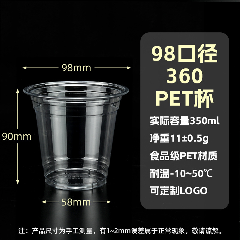 98口径PET咖啡杯一次性奶茶柠檬茶冷饮冰粉透明塑料打包杯带盖子