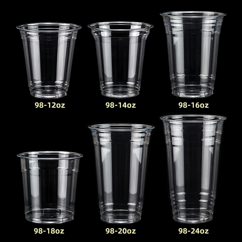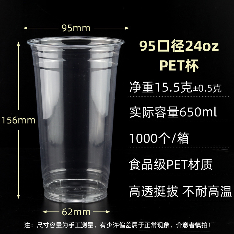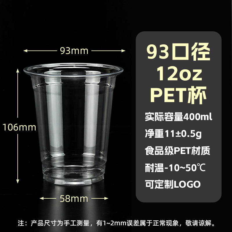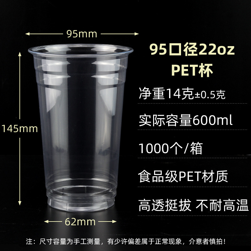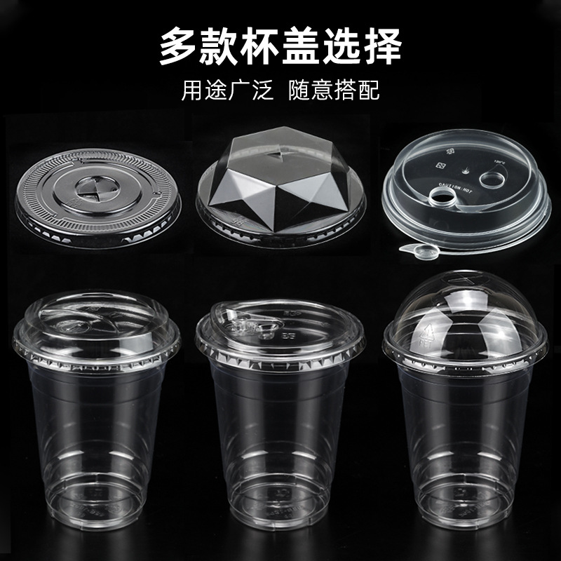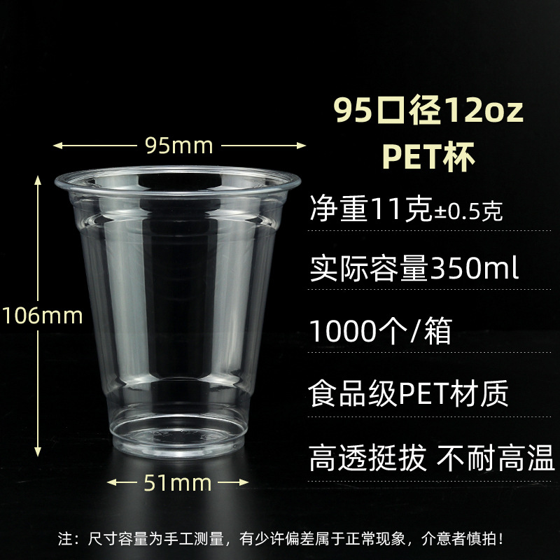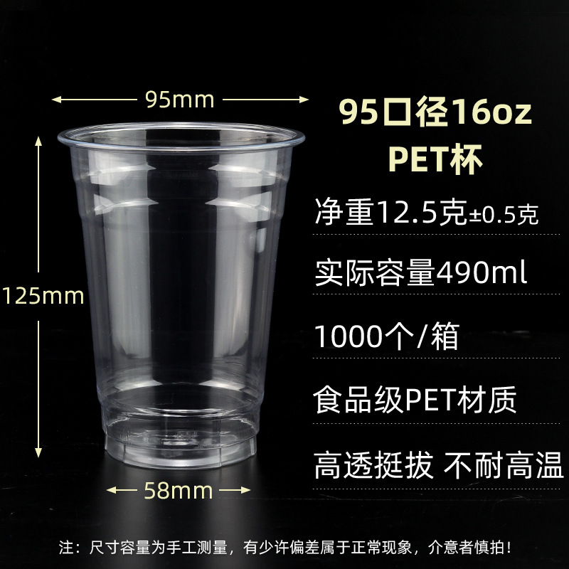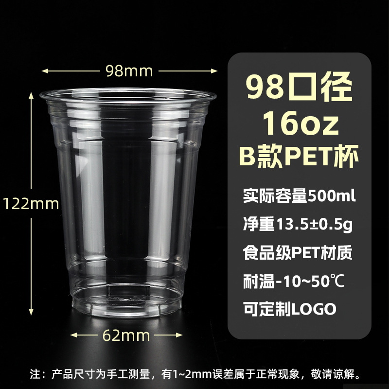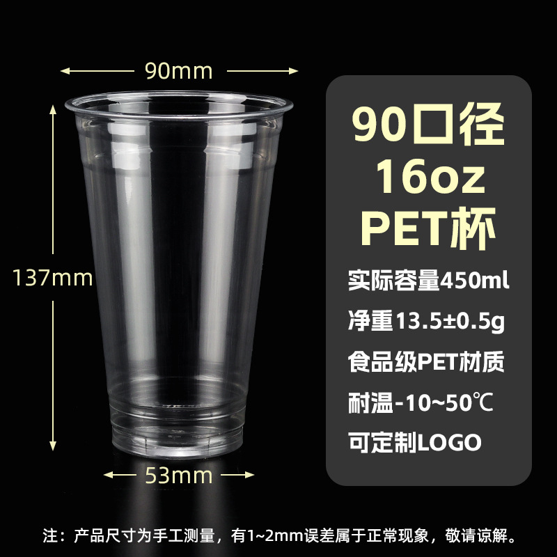 98口径PET咖啡杯一次性奶茶柠檬茶冷饮冰粉透明塑料打包杯带盖子