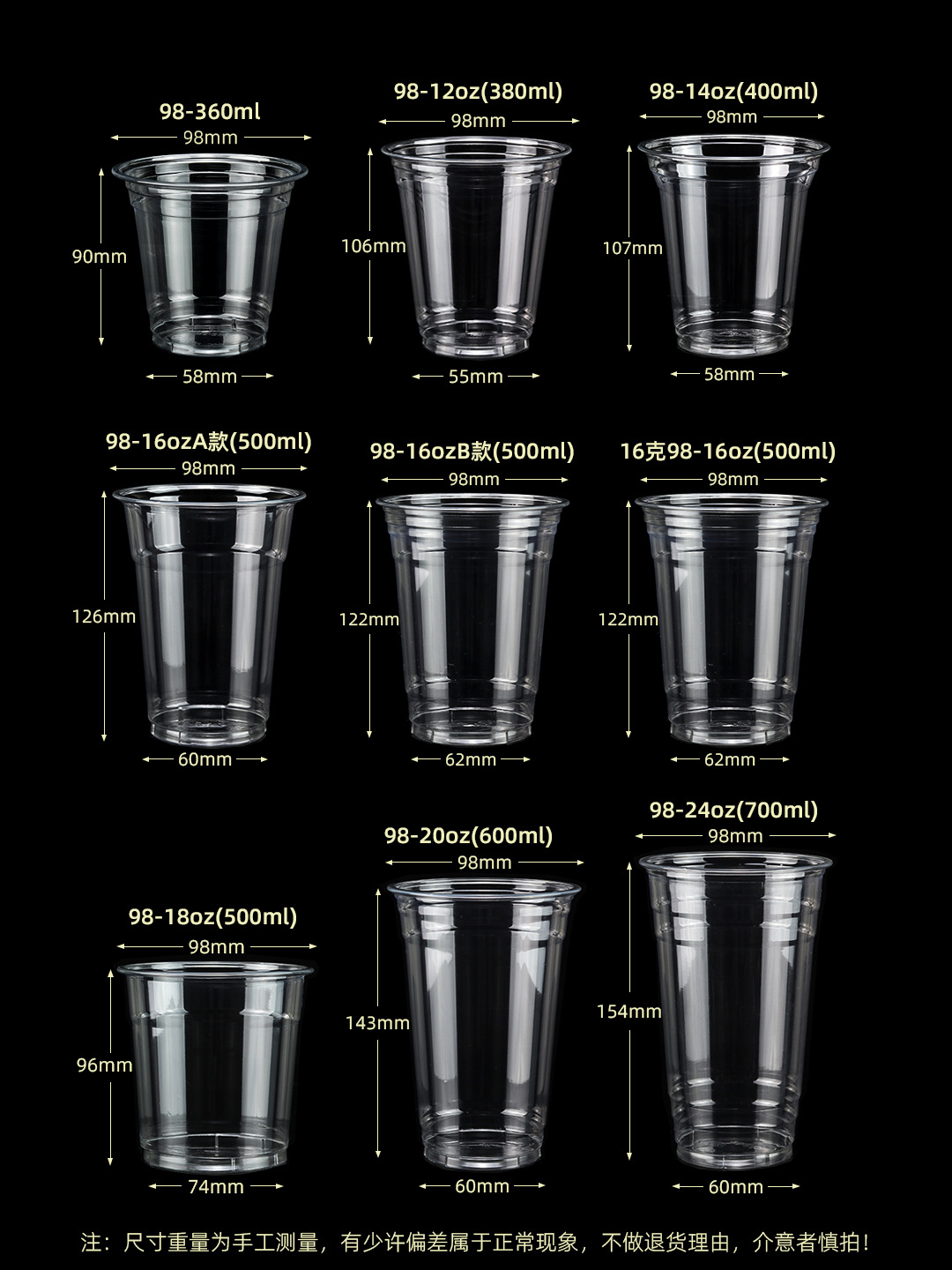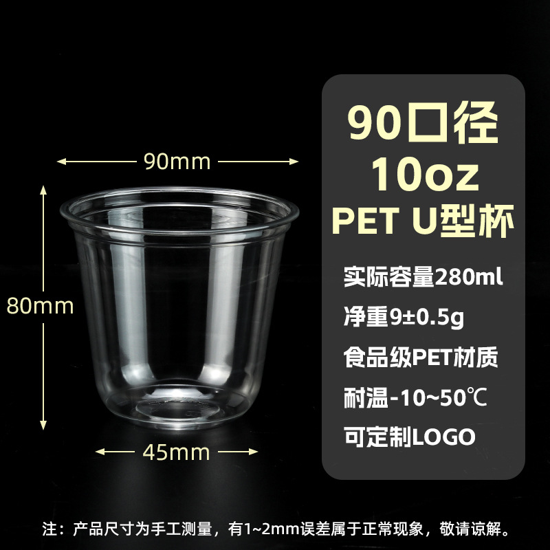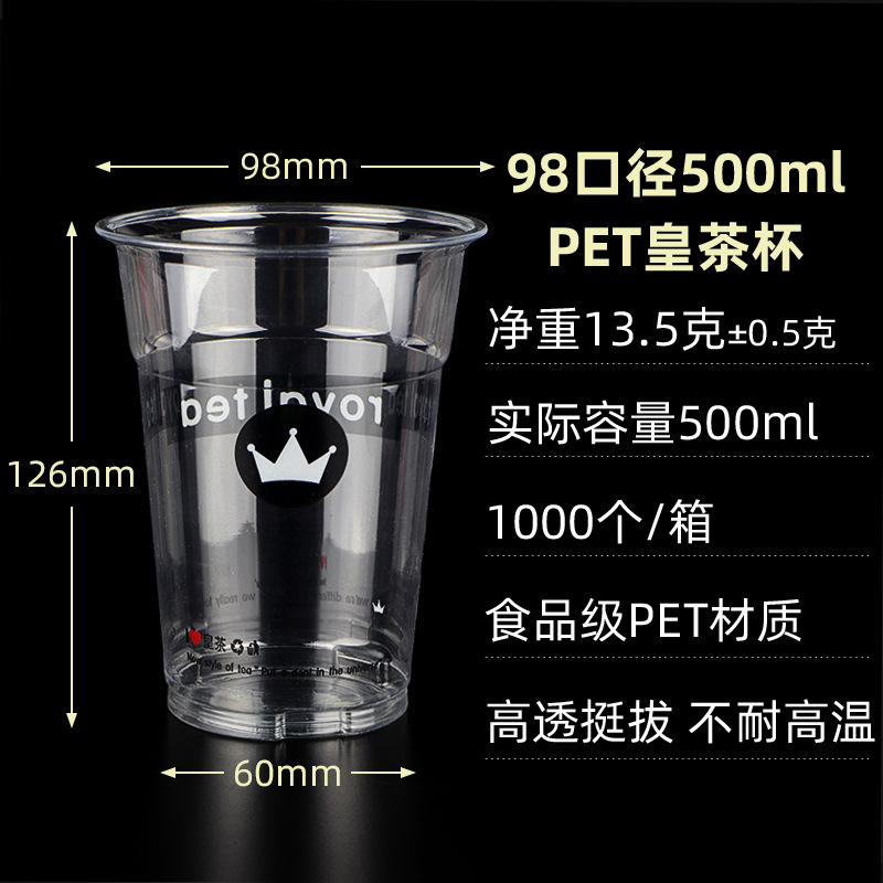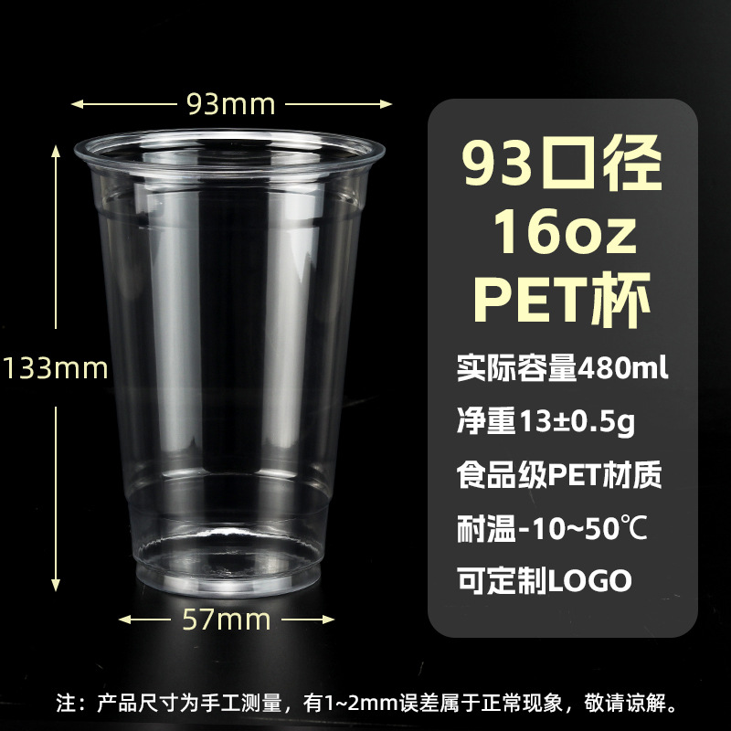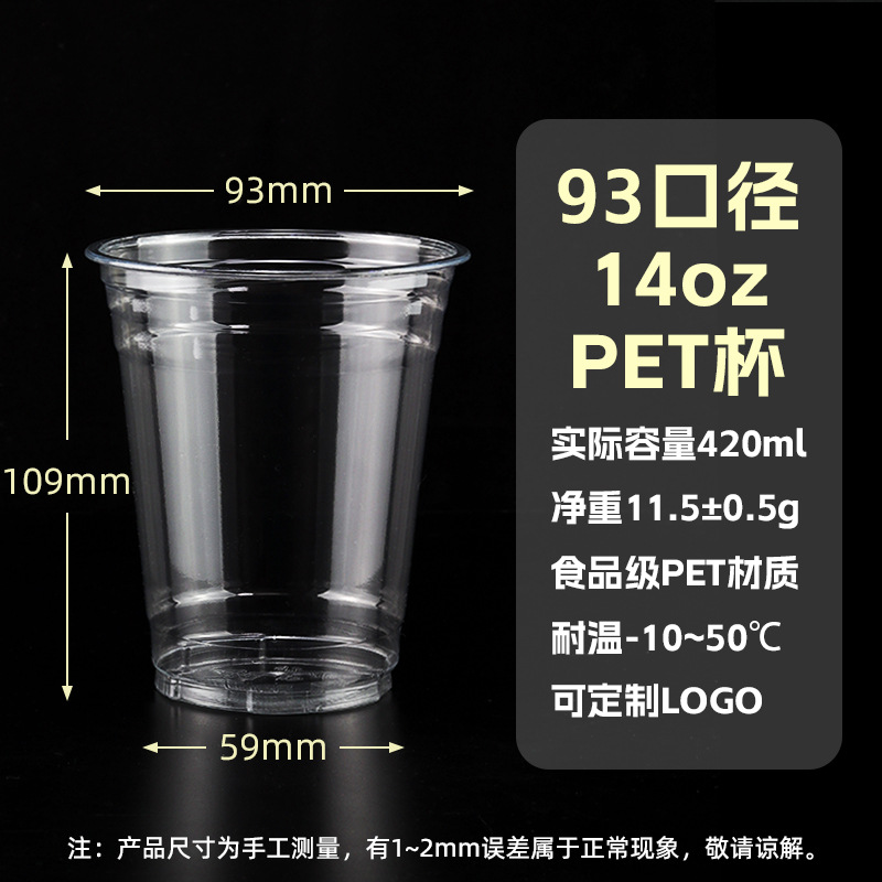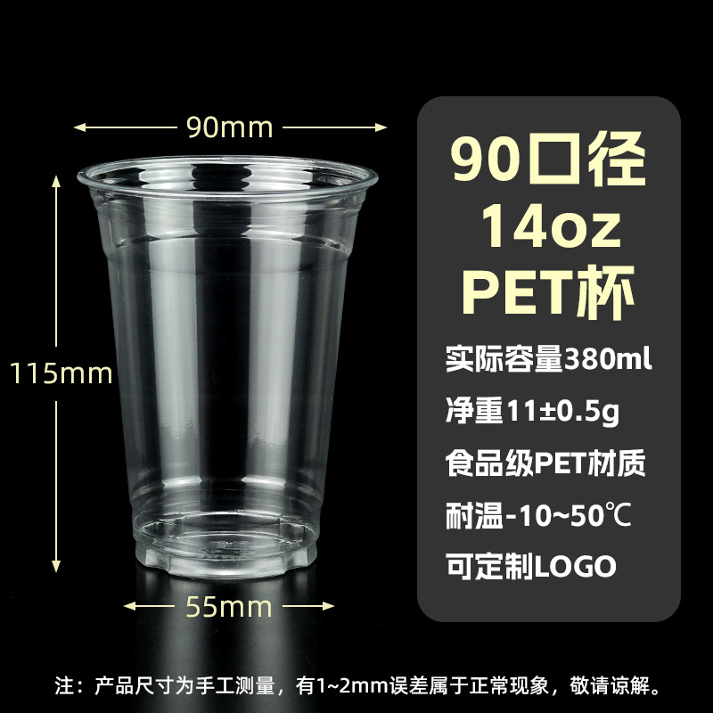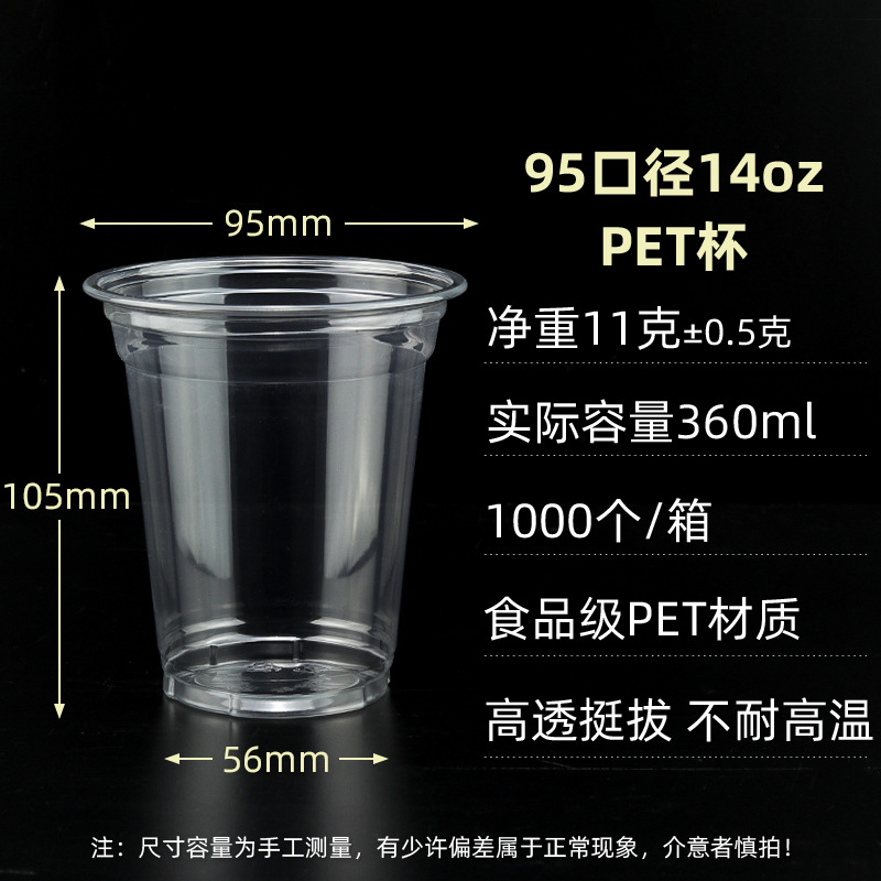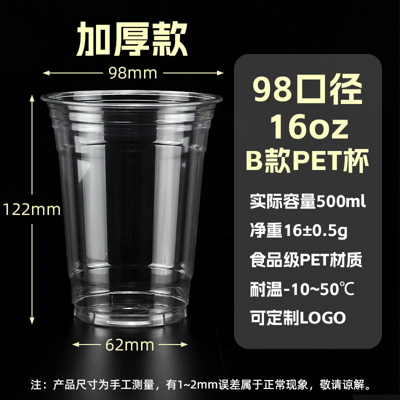 98口径PET咖啡杯一次性奶茶柠檬茶冷饮冰粉透明塑料打包杯带盖子