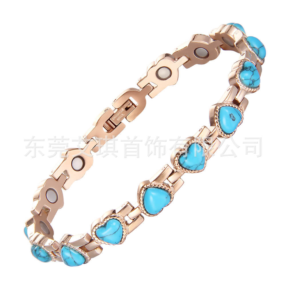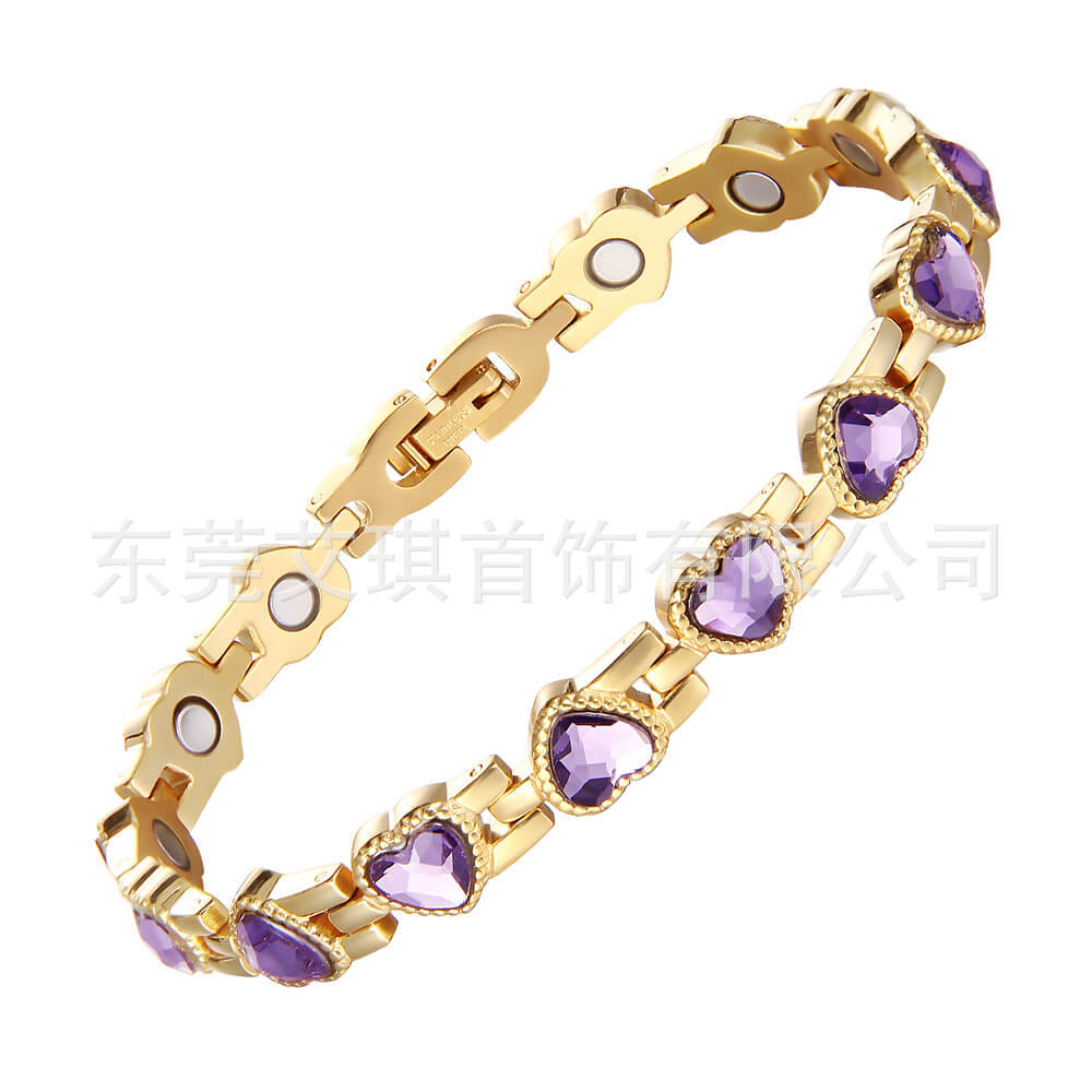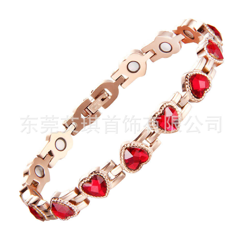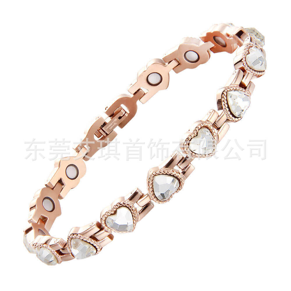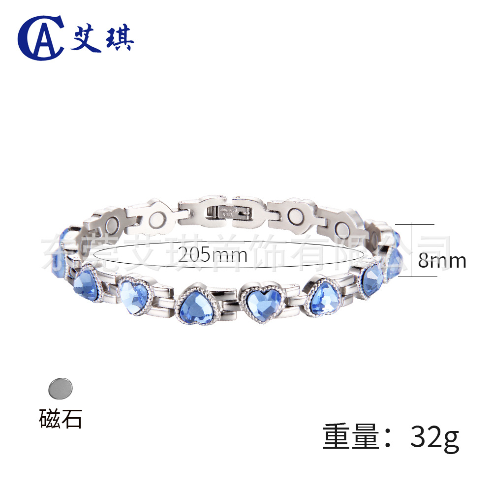 厂家批发超闪心形水晶钛钢手链爆款时尚爱心磁性手链不锈钢手链女