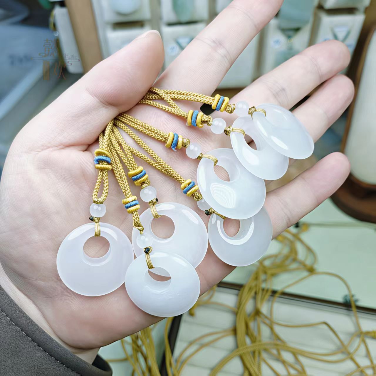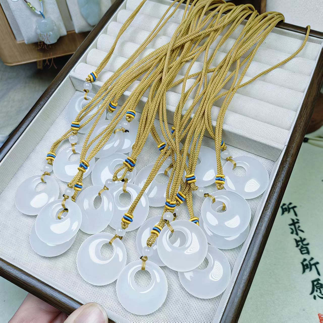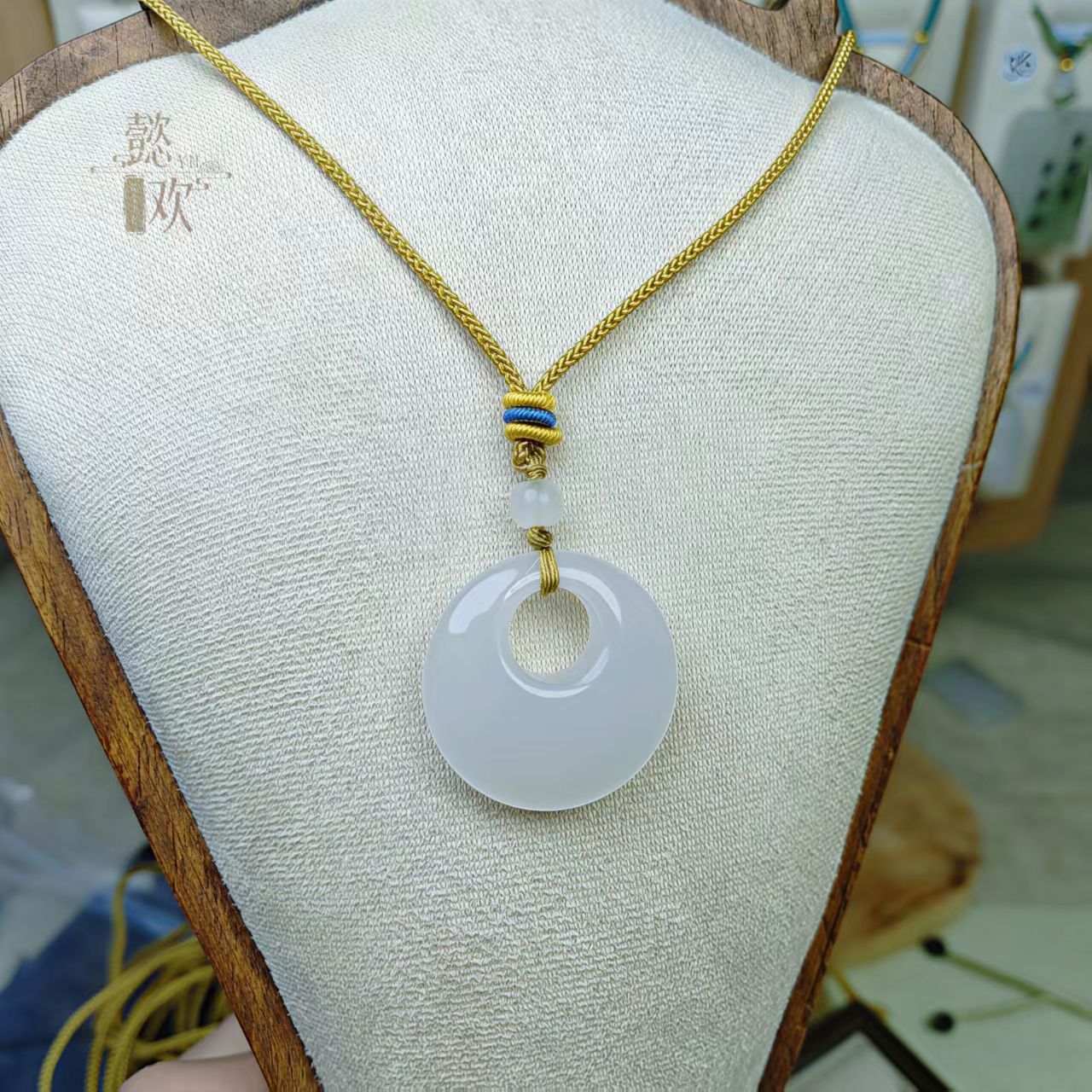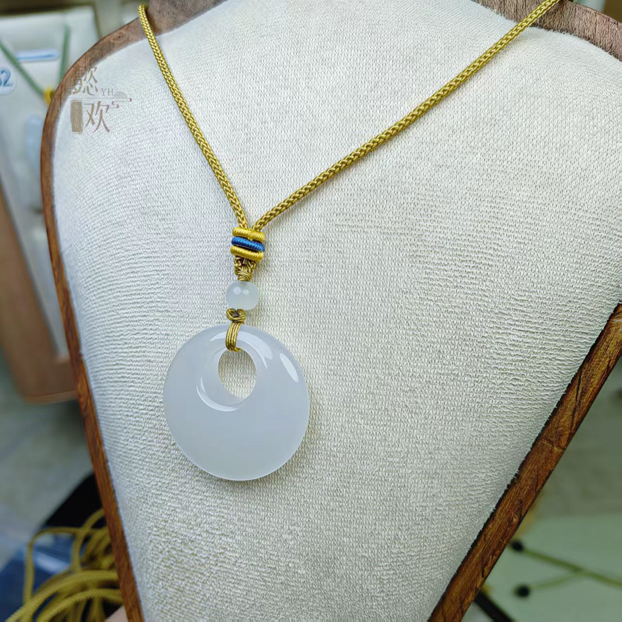 新疆白玉金丝玉偏心扣吊坠男女款金丝玉公主扣平安扣玉石吊坠批发
