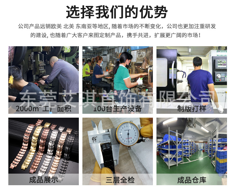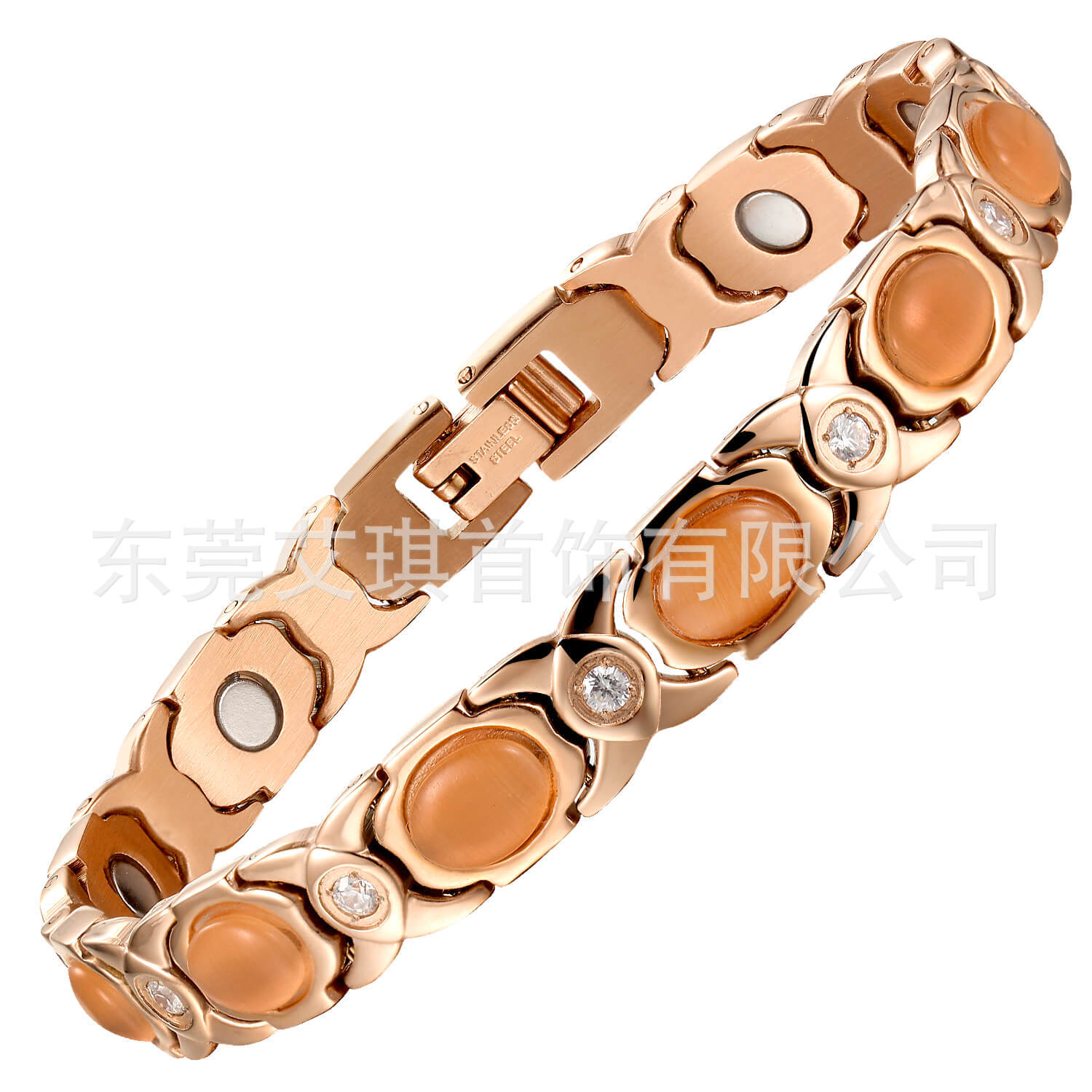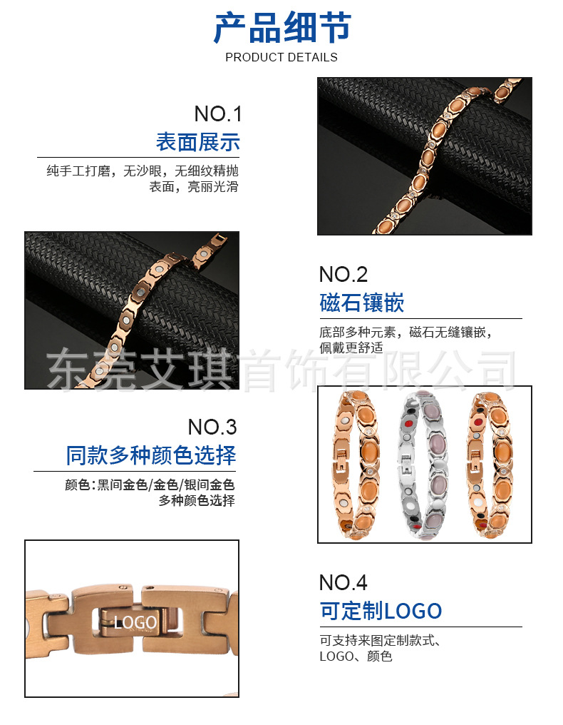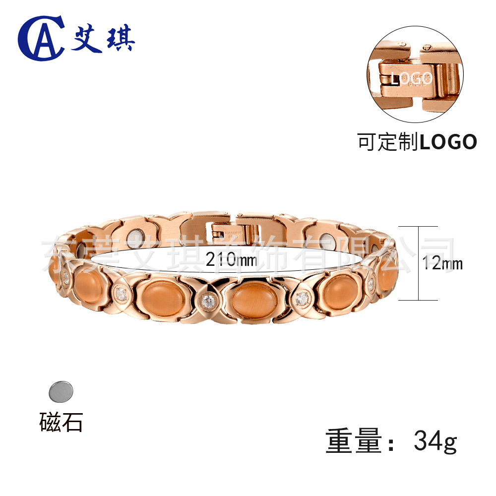 欧美跨境女士时尚玫瑰金色不锈钢手链磁性能量手链不褪色磁石手链