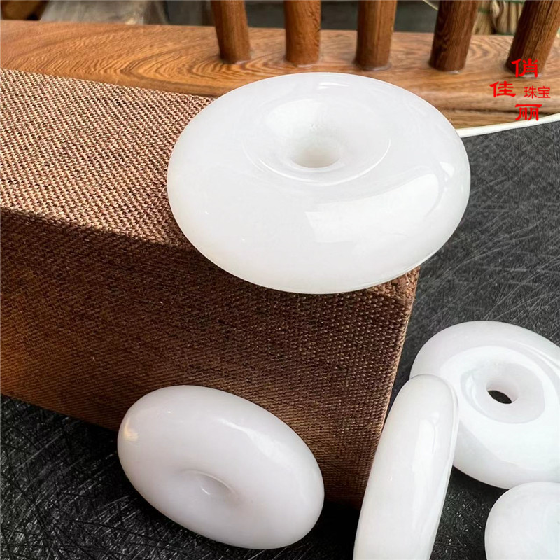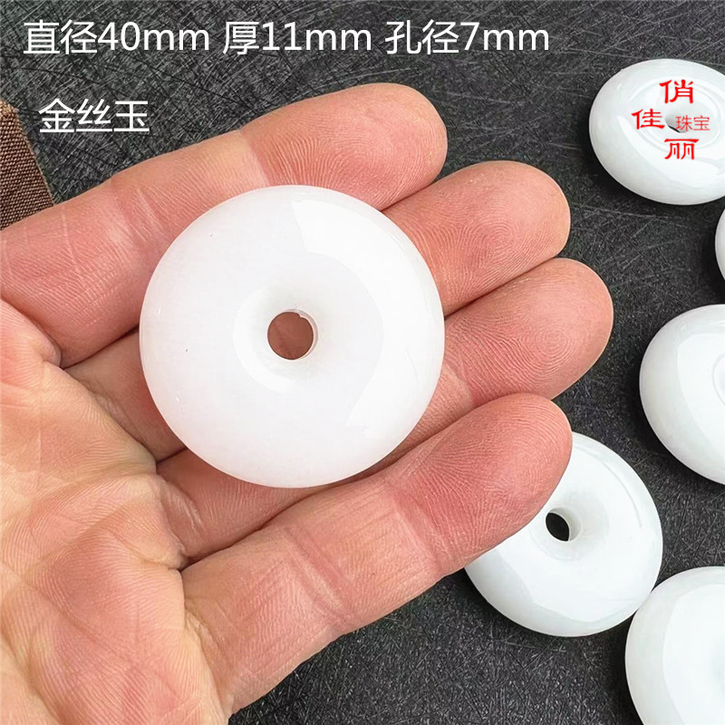 新疆白玉金丝玉石英岩玉平安扣直径4cm5cm车挂流苏配件玉器厂家