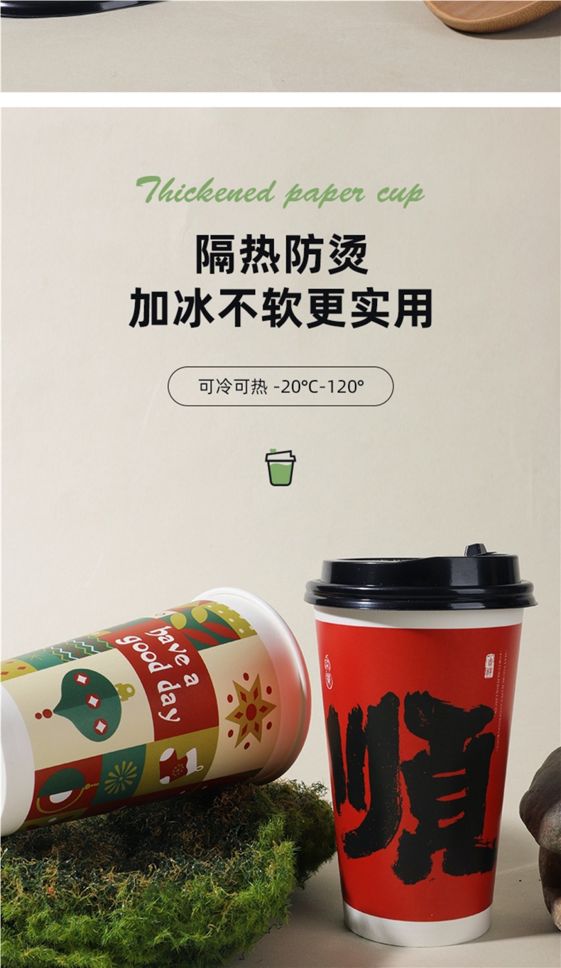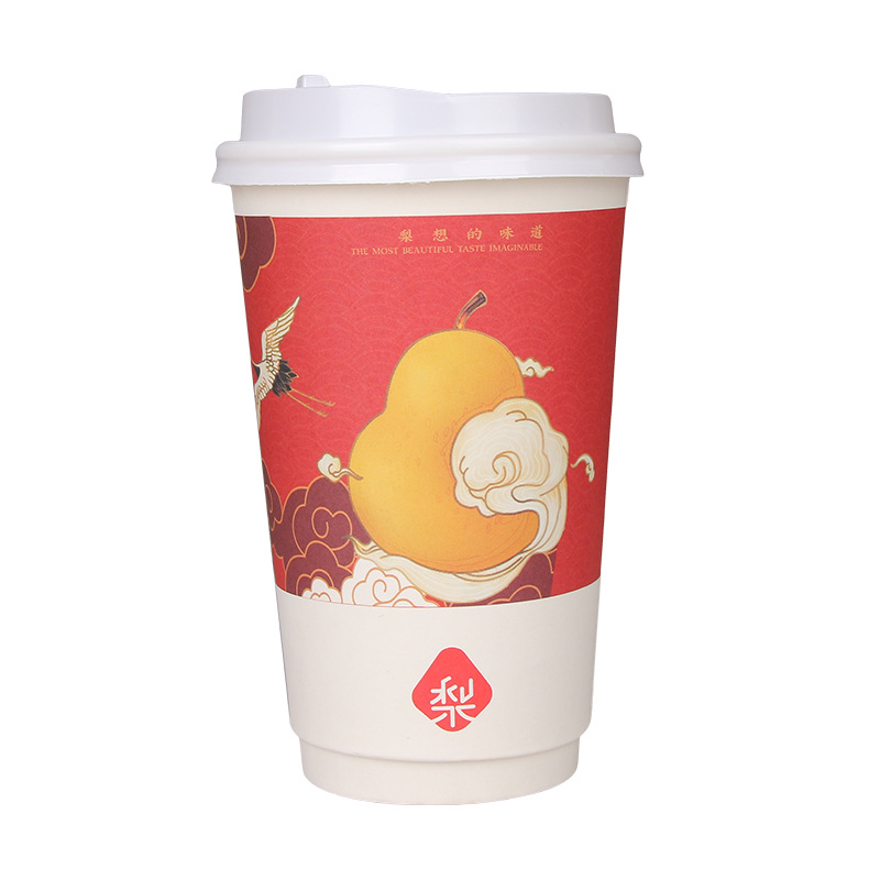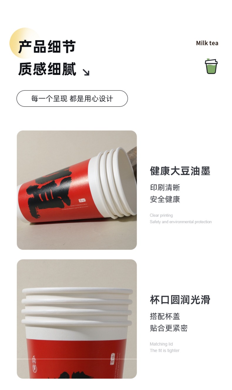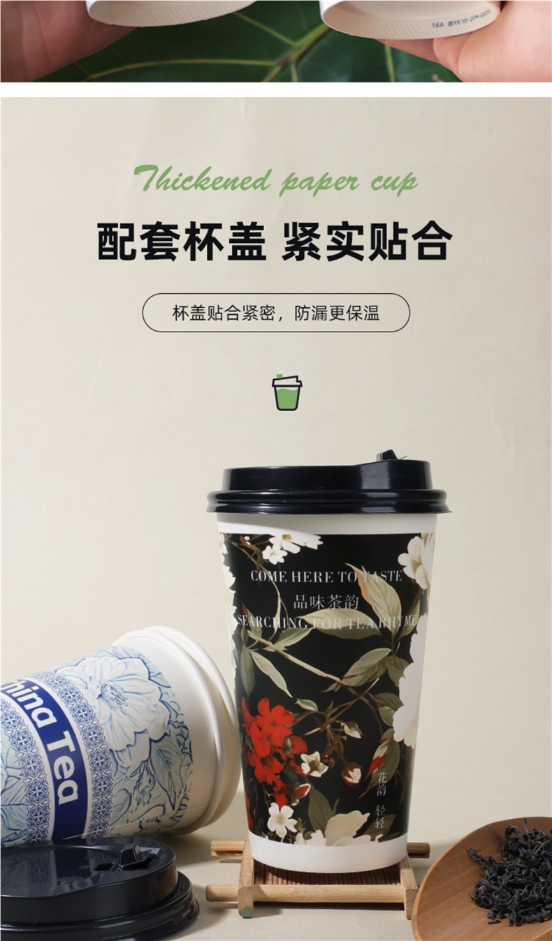 新中式奶茶杯一次性带盖子定 制冷热饮打包咖啡纸杯中国风奶茶纸