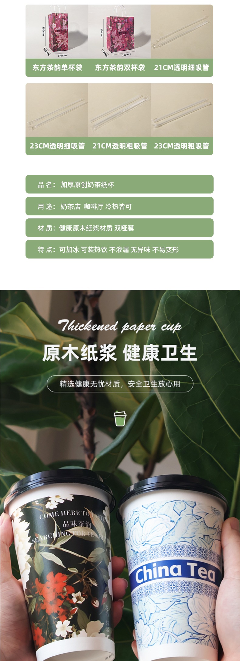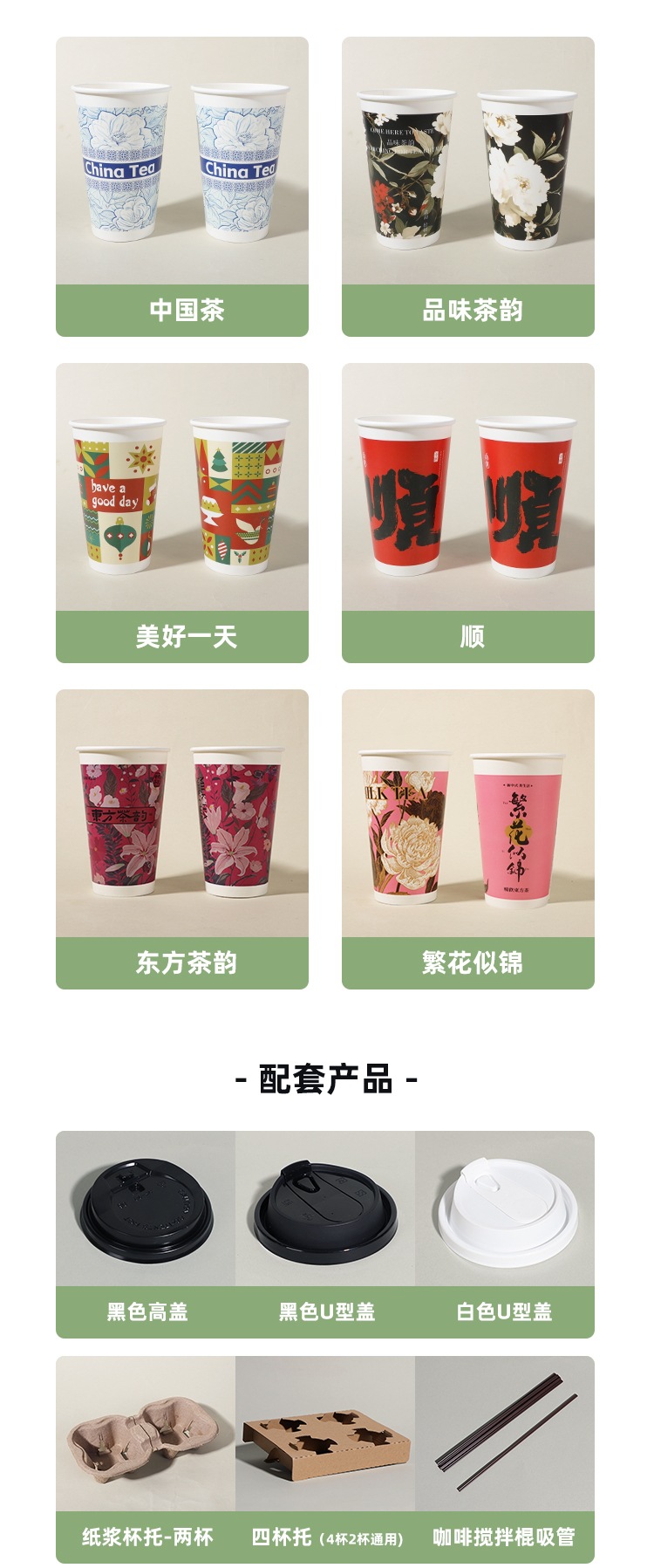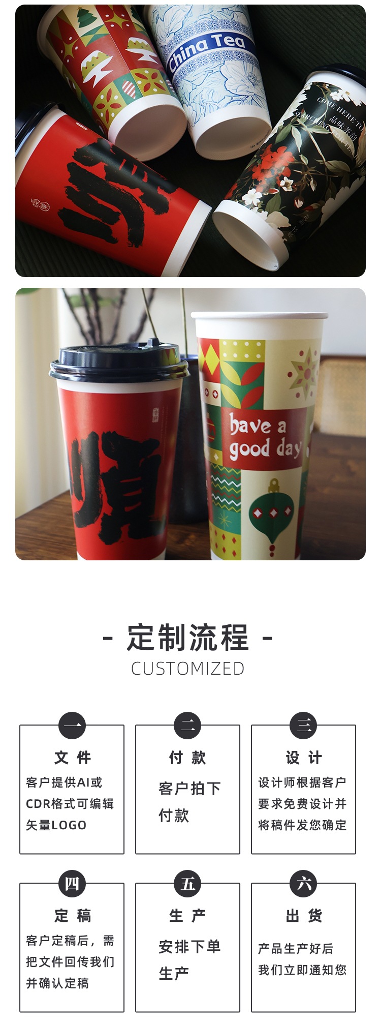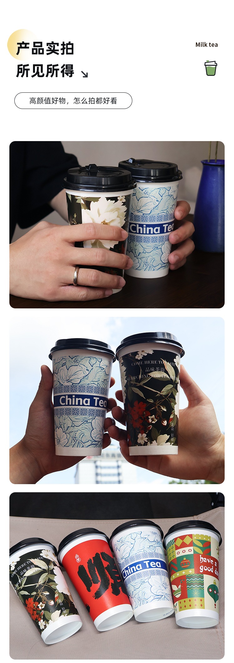 新中式奶茶杯一次性带盖子定 制冷热饮打包咖啡纸杯中国风奶茶纸