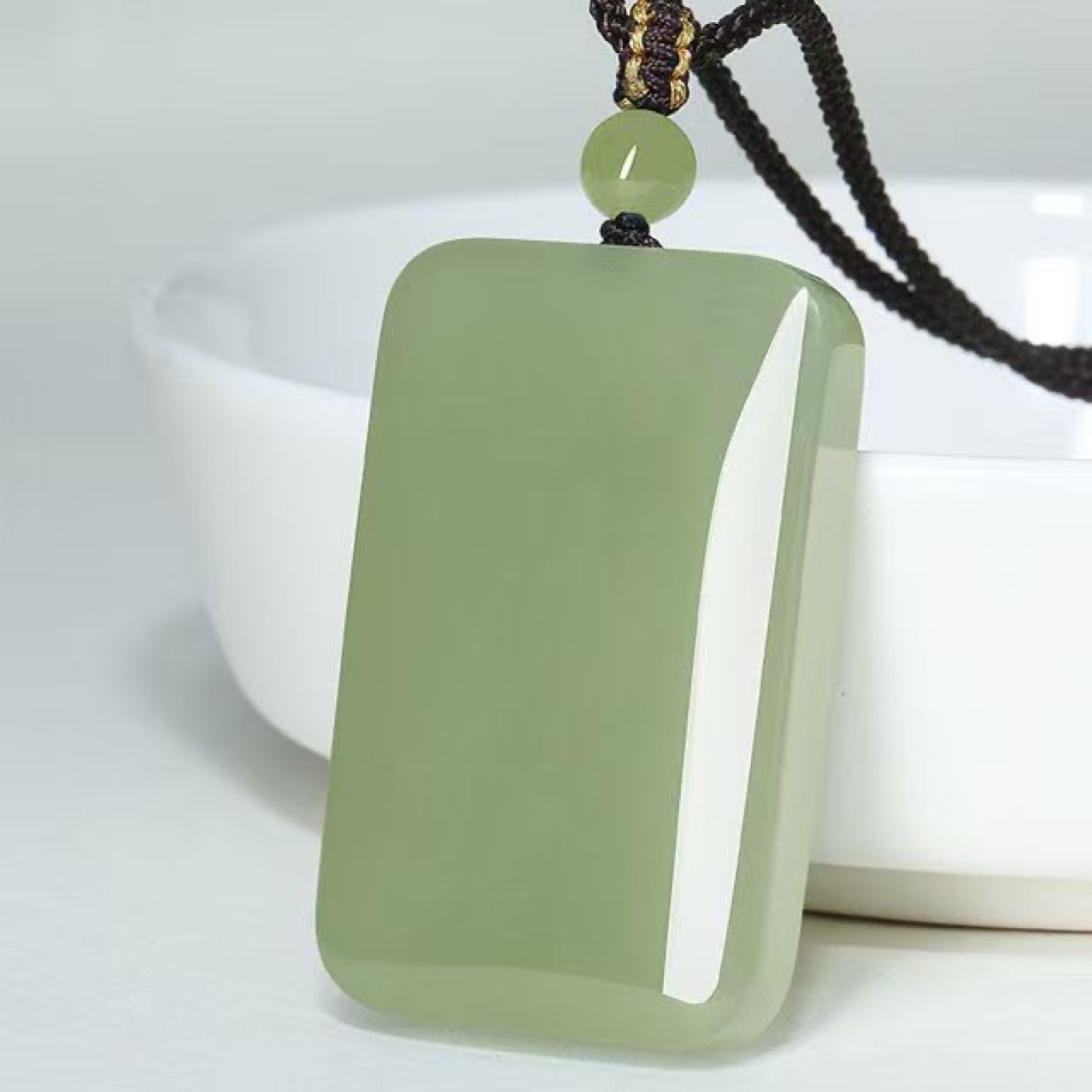 天然和田羊脂白玉色平安无事牌玉石吊坠男女项链外蒙料面包牌玉佩